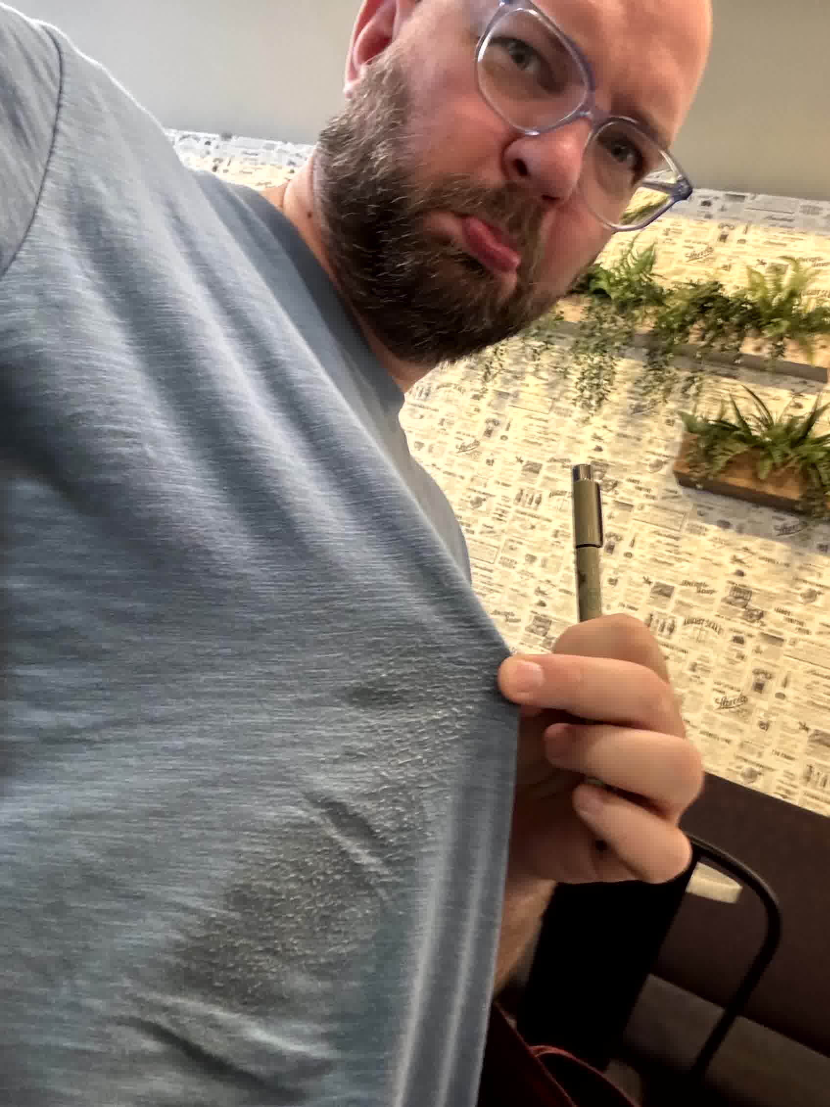 We went into Manhattan for breakfast and I spilled coffee on my shirt.