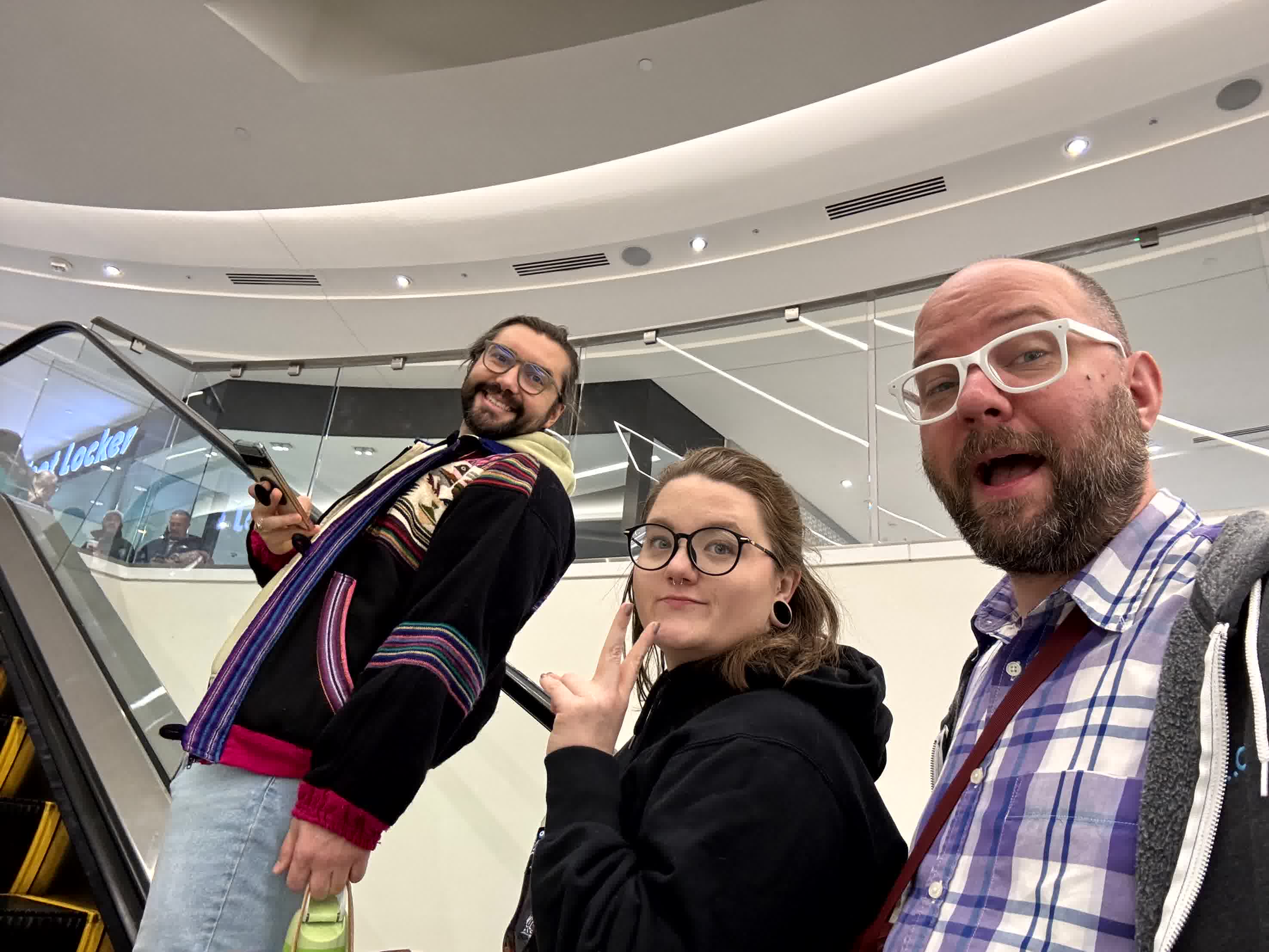 We took an escalator selfie as one does at a mall.