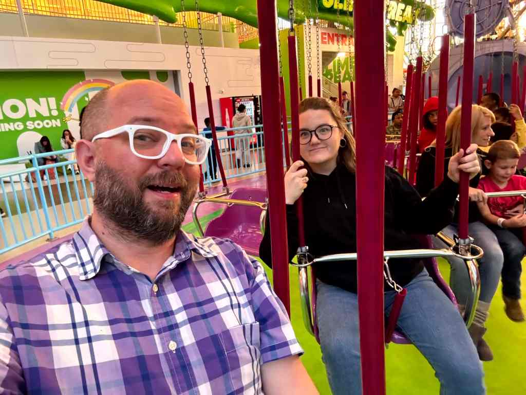 I wanted to try to move my swing around, but Lauri gave me a quick “stop” and after the ride told me that this was a disallowed activity and that I just didn’t hear the announcement because I wasn’t paying attention.