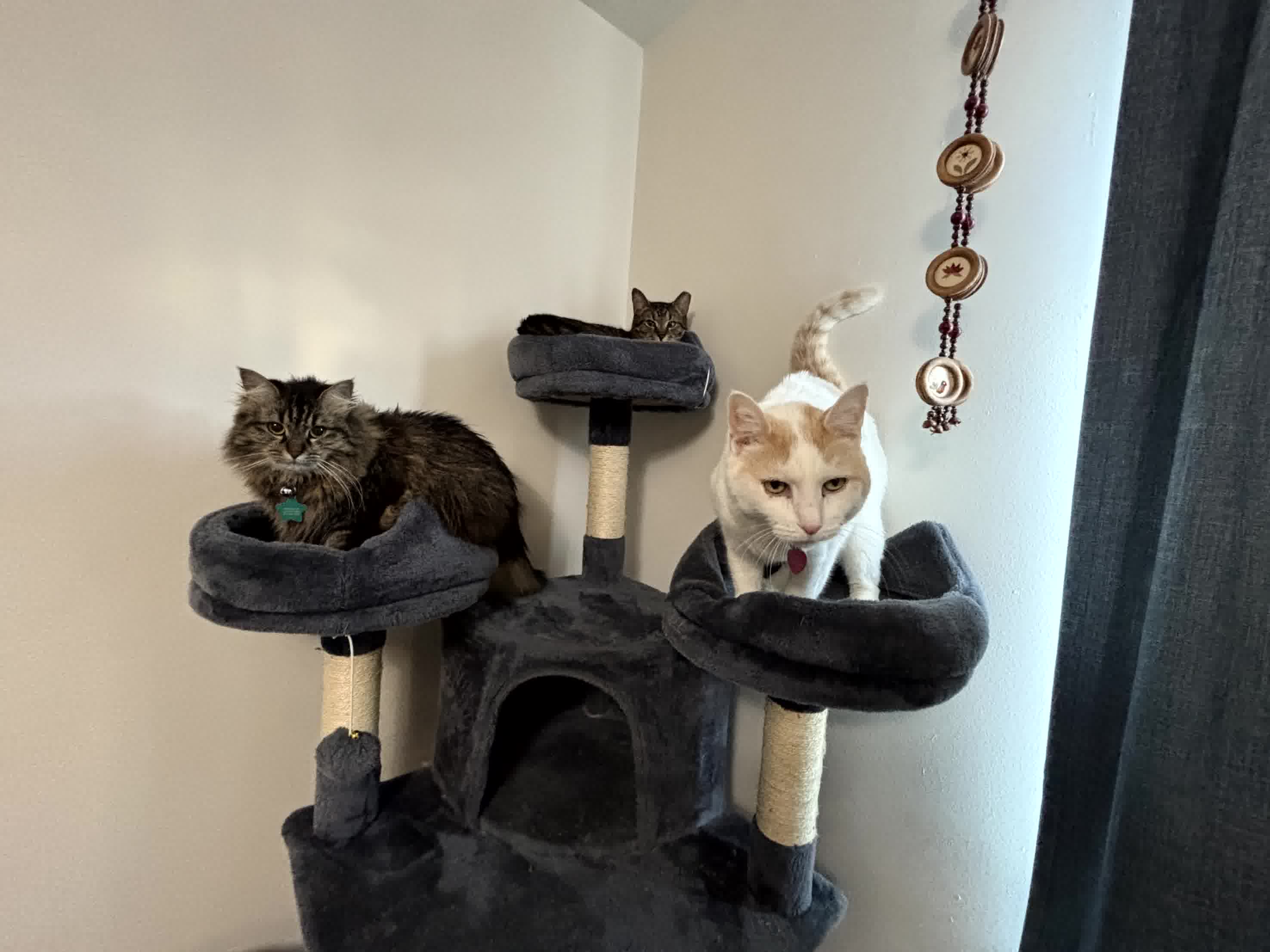 From left to right Keanu, Penny & Remus say “Hi.”