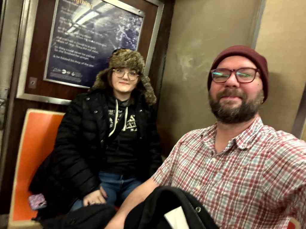 I just hope no one tries to stand in front of us. There’s room, but I would really prefer to sit.