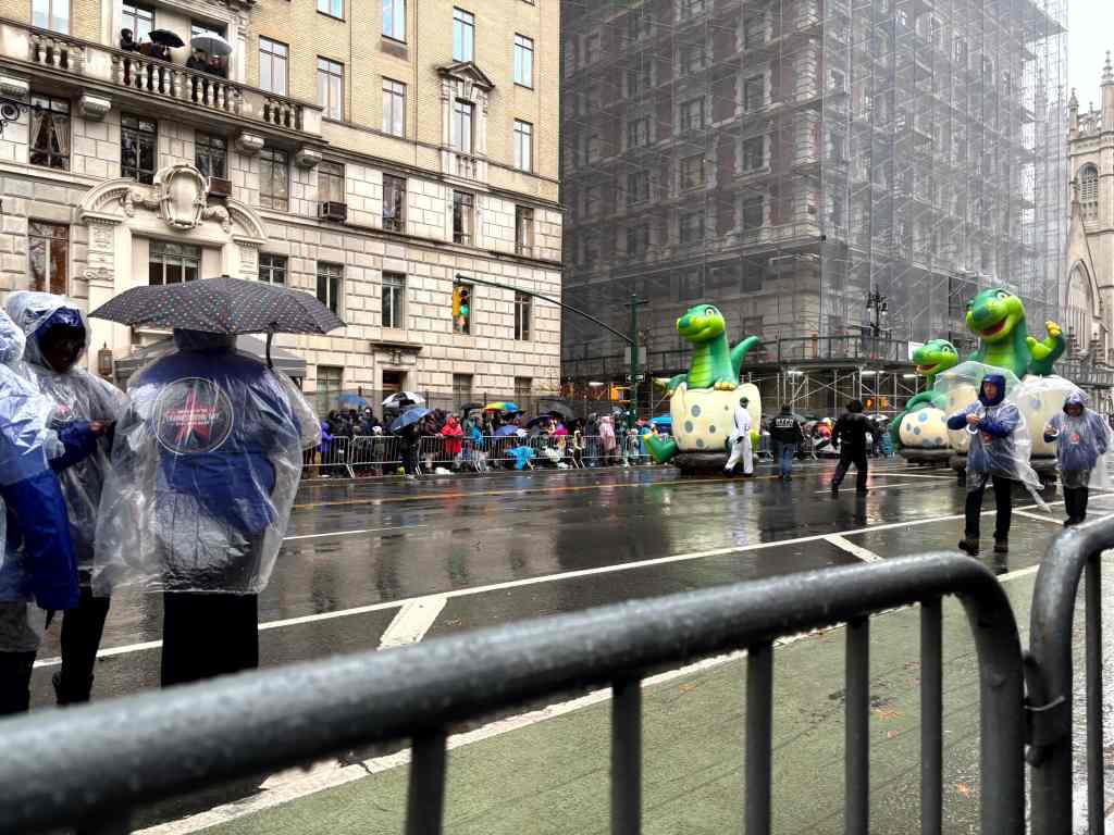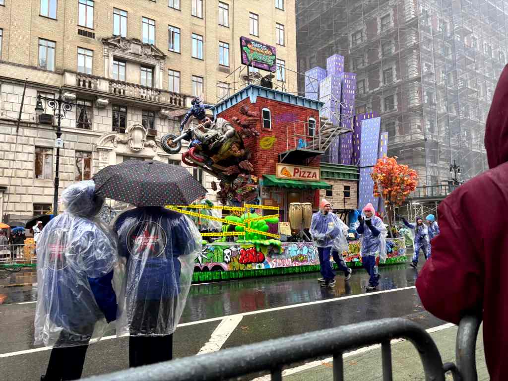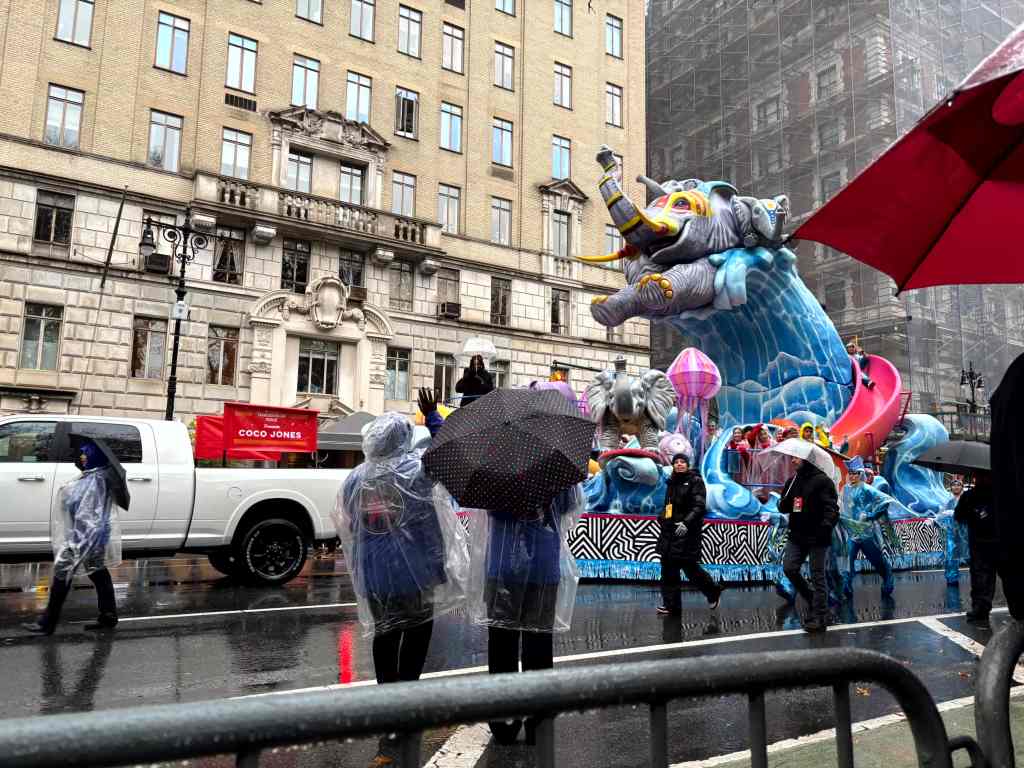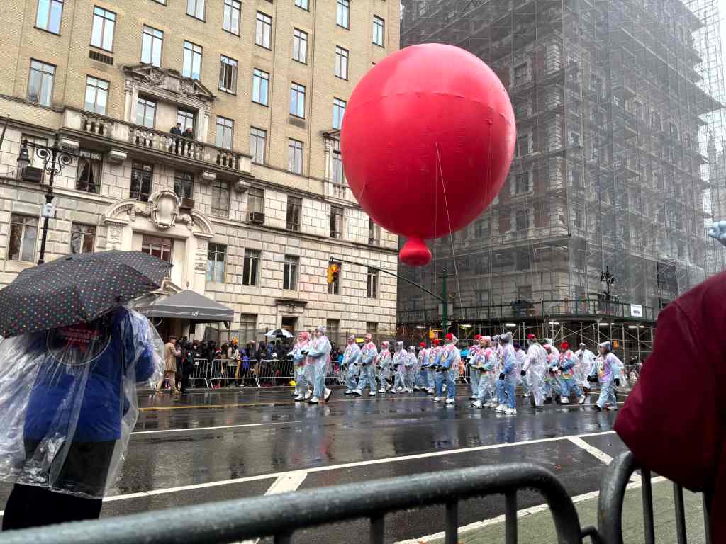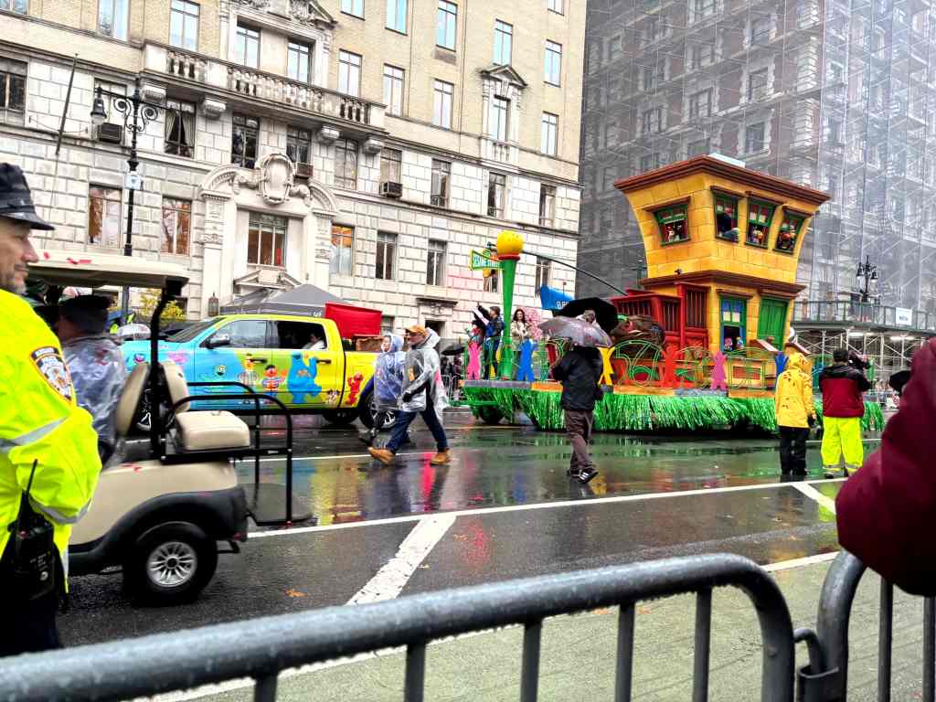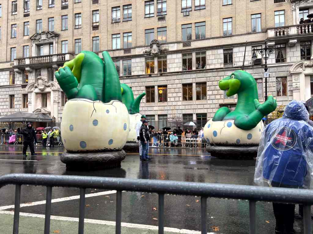 We have sort-of a sneak peak at upcoming floats as they line up down the road waiting for their turn to begin their trek through Manhattan.
