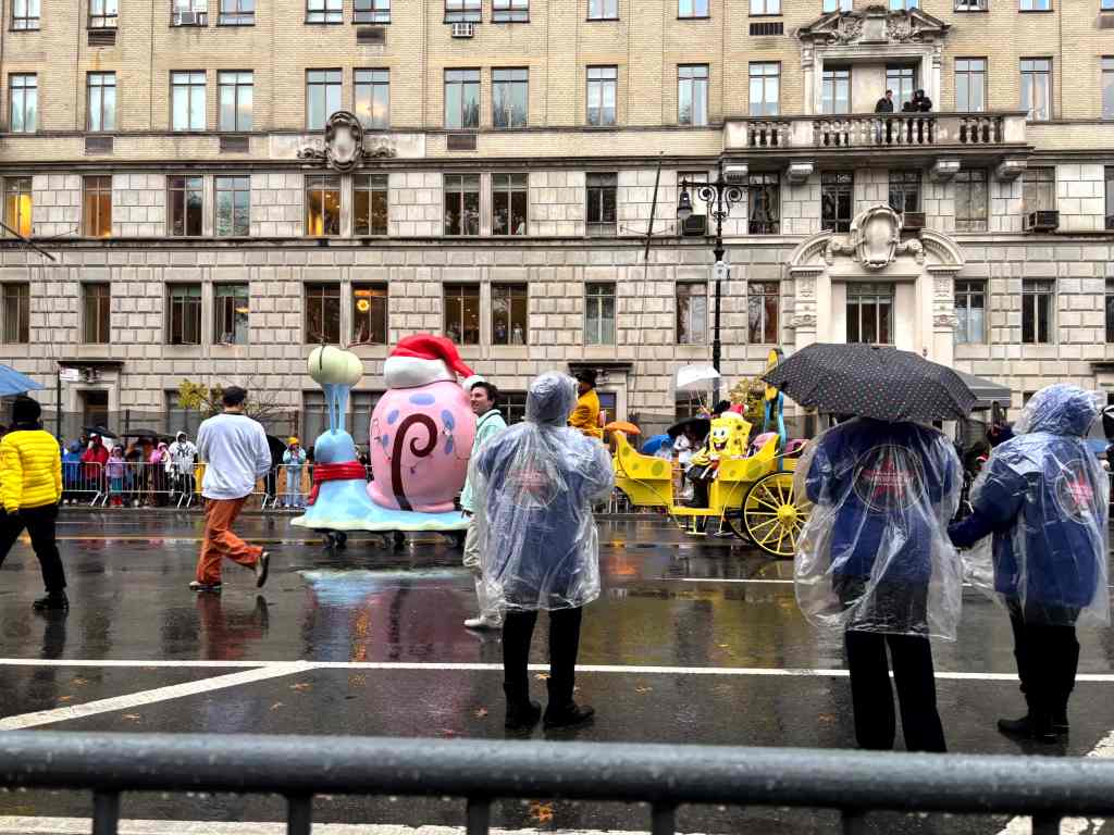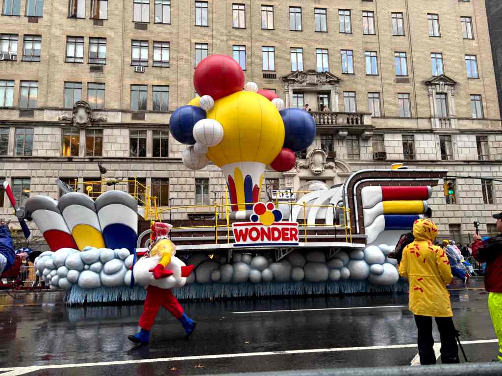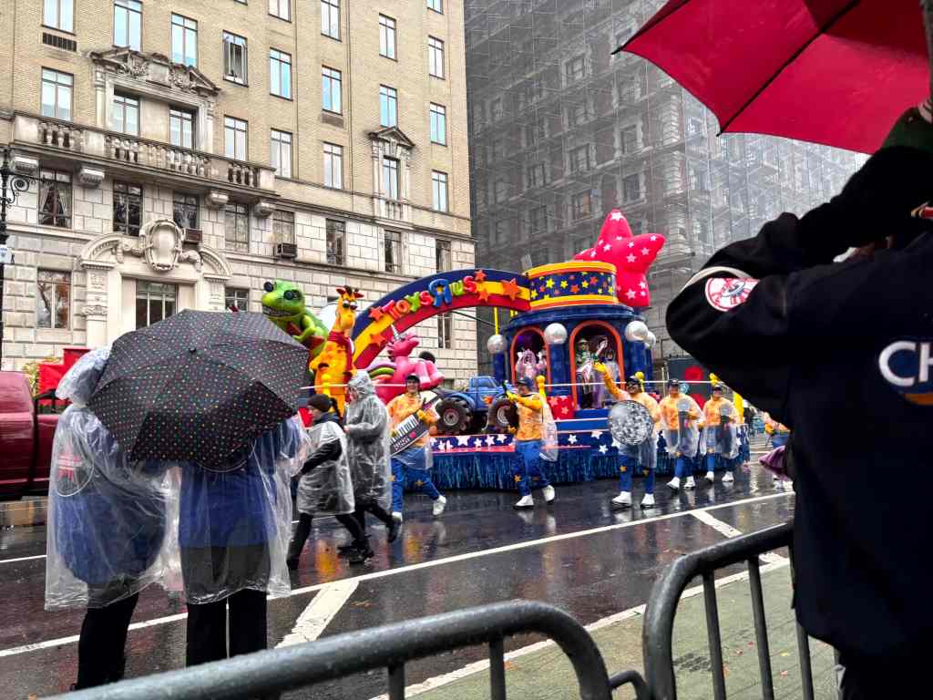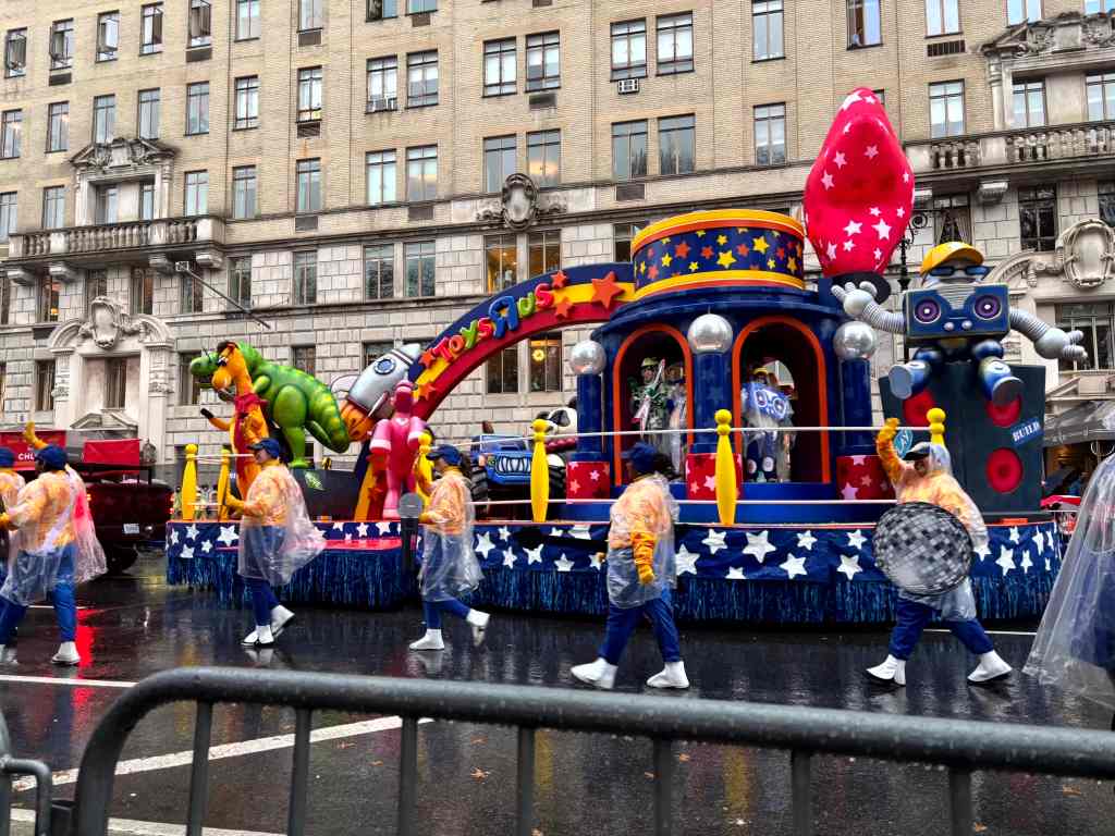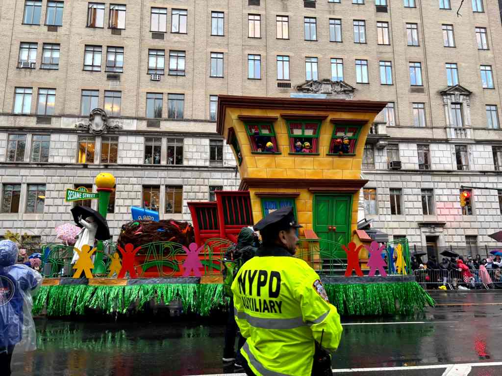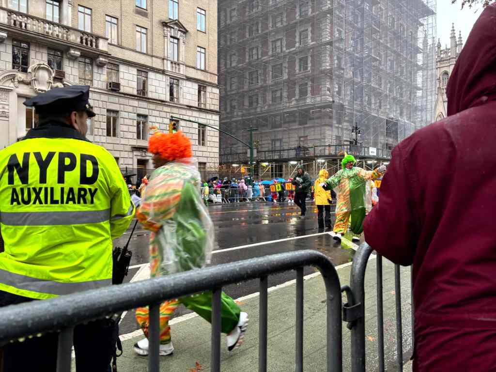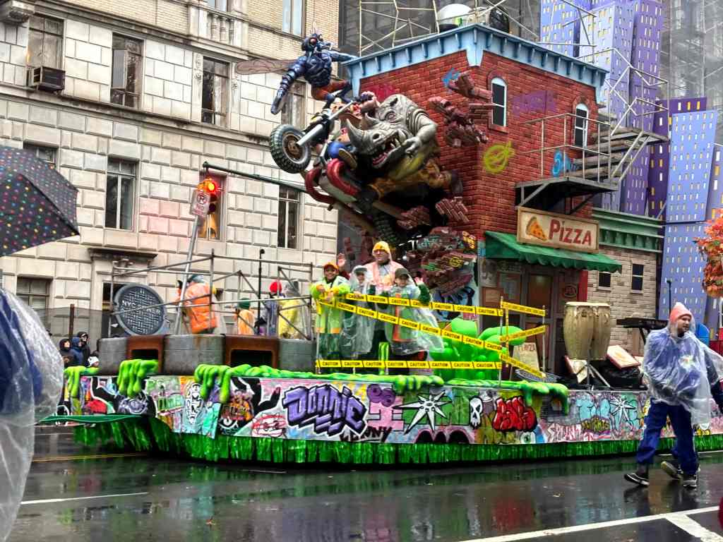 We have sort-of a sneak peak at upcoming floats as they line up down the road waiting for their turn to begin their trek through Manhattan.
