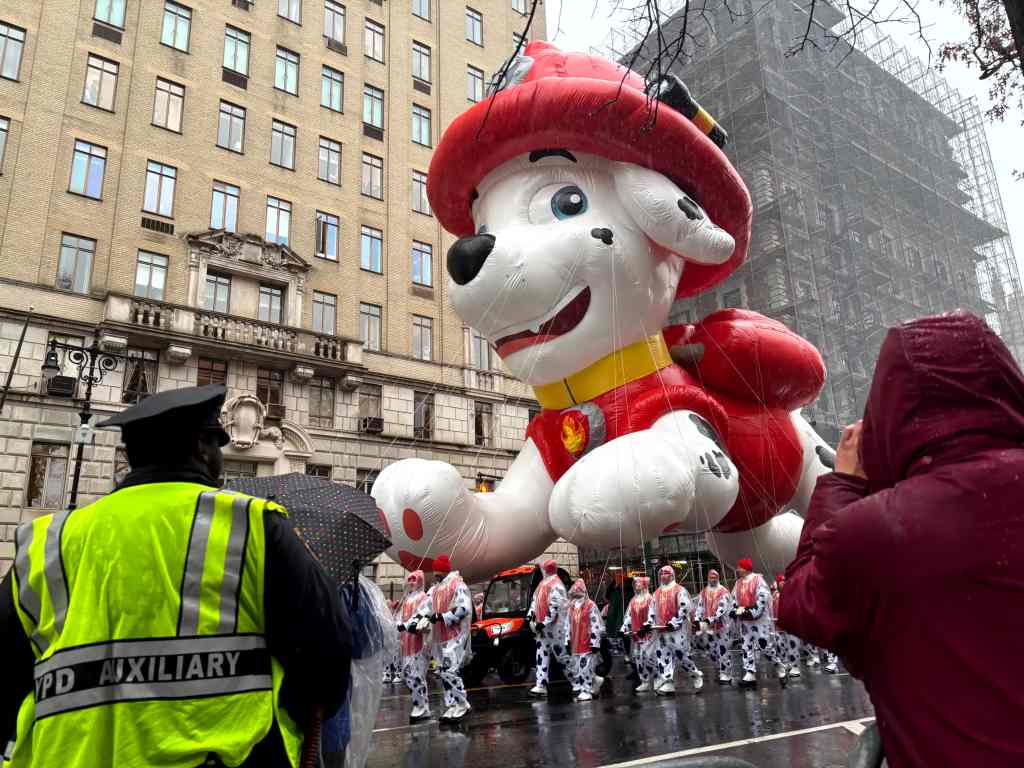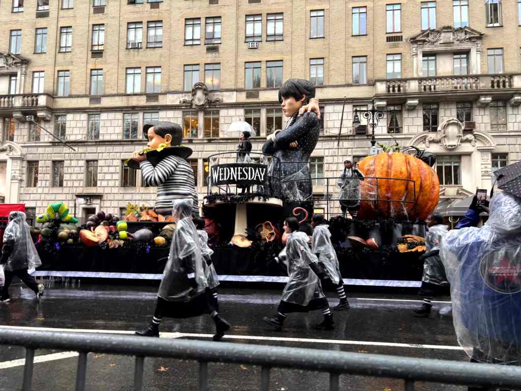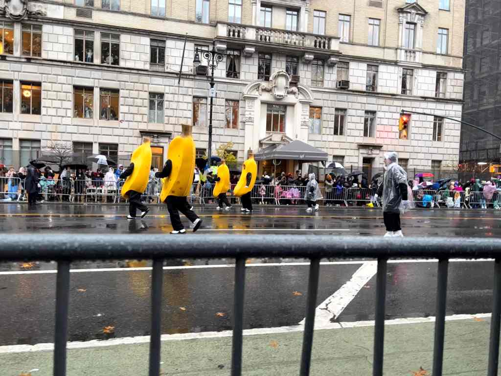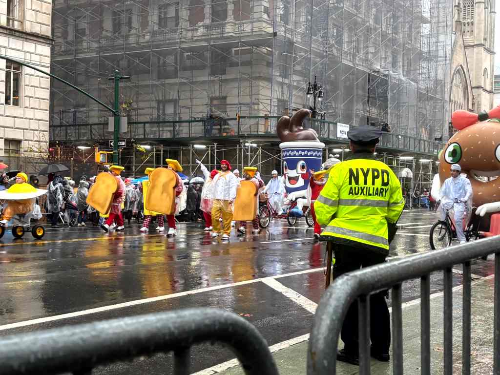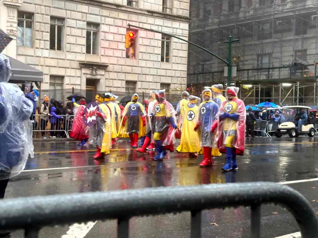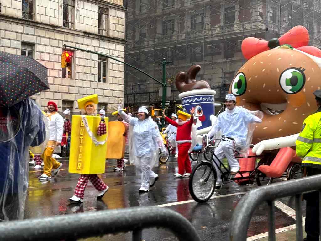 We have sort-of a sneak peak at upcoming floats as they line up down the road waiting for their turn to begin their trek through Manhattan.