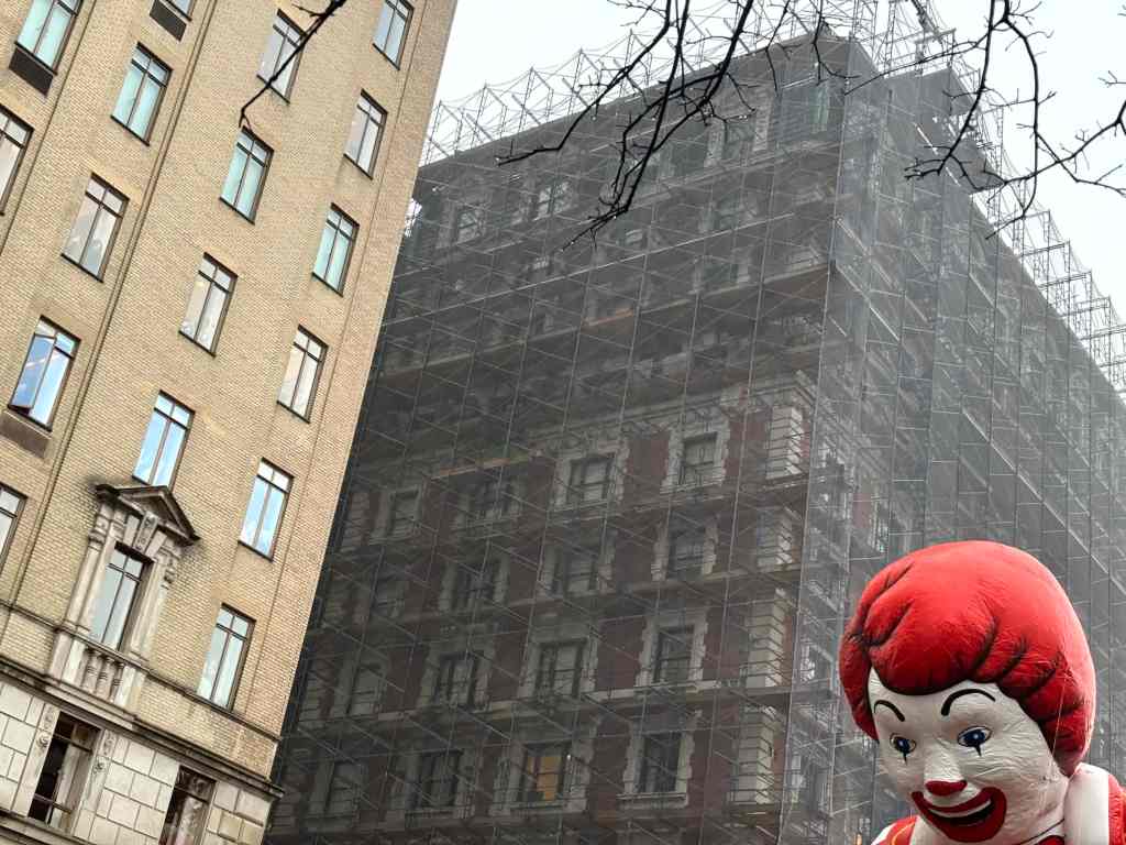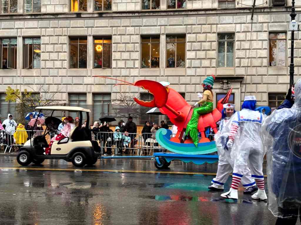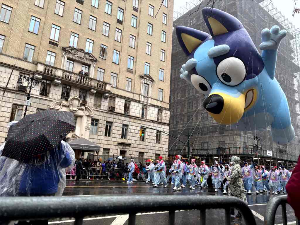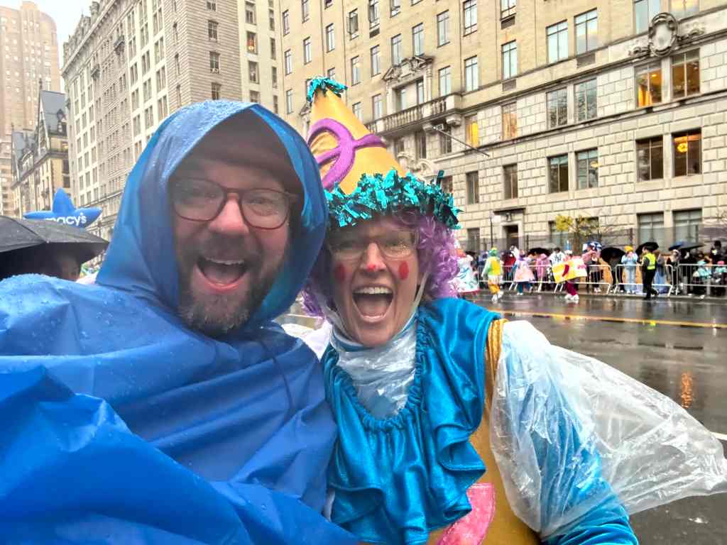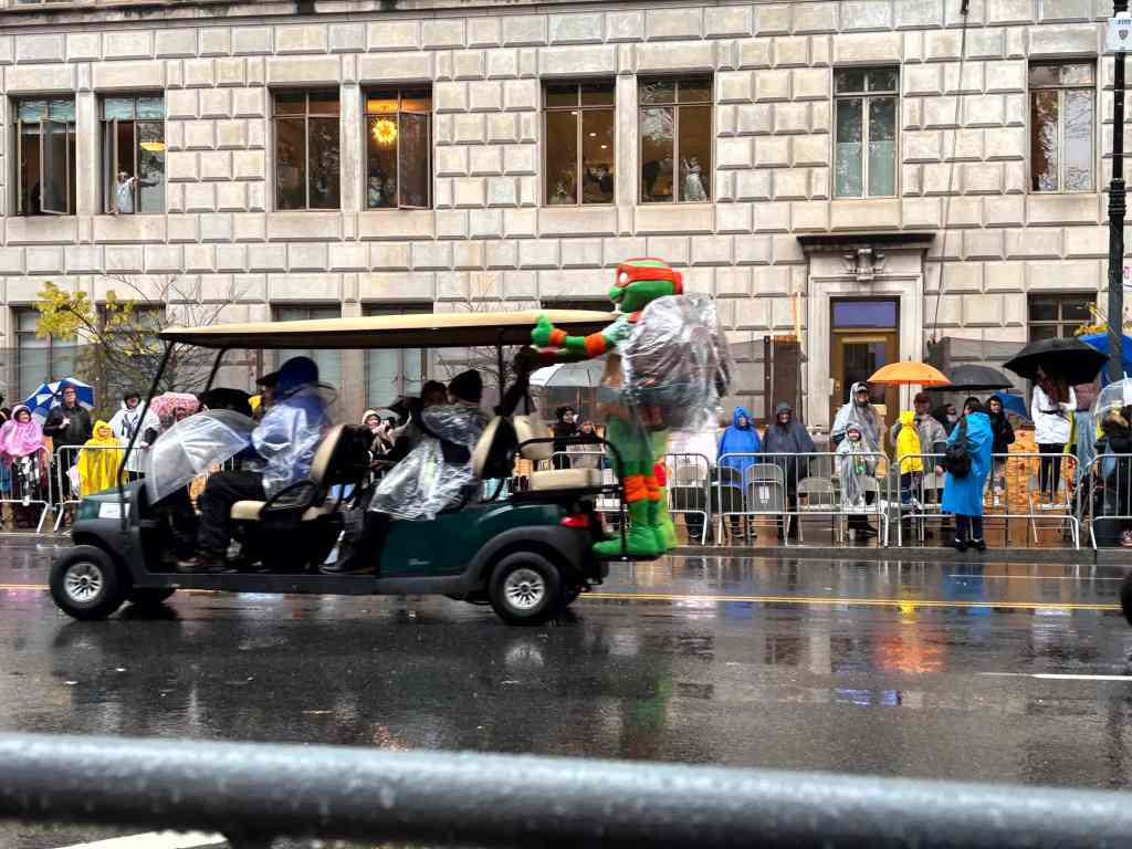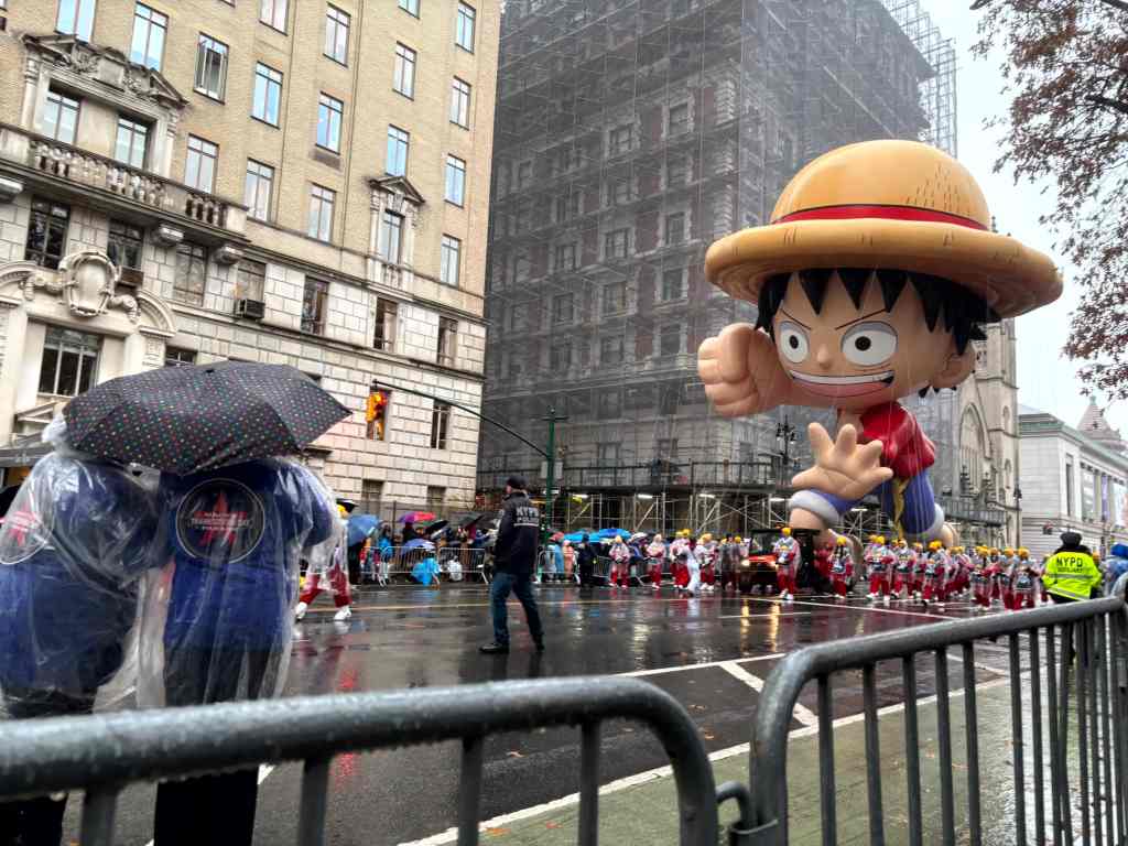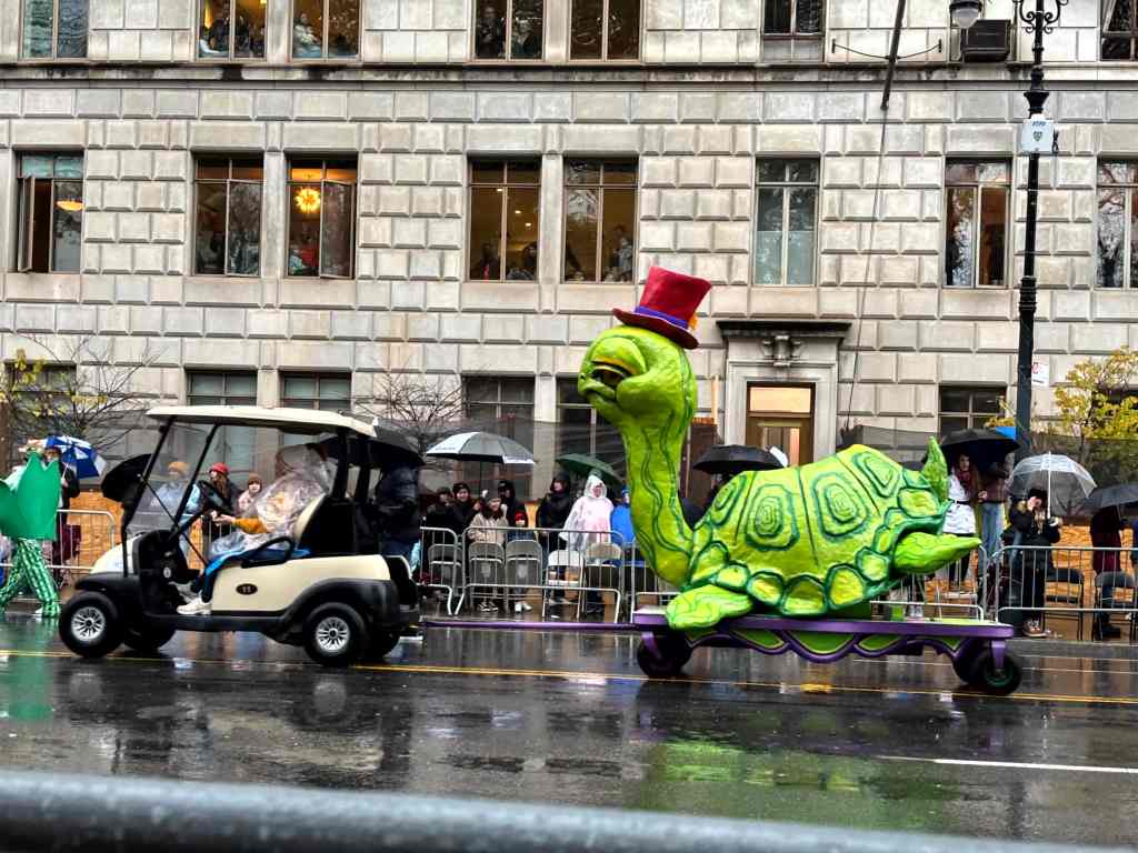 We have sort-of a sneak peak at upcoming floats as they line up down the road waiting for their turn to begin their trek through Manhattan.