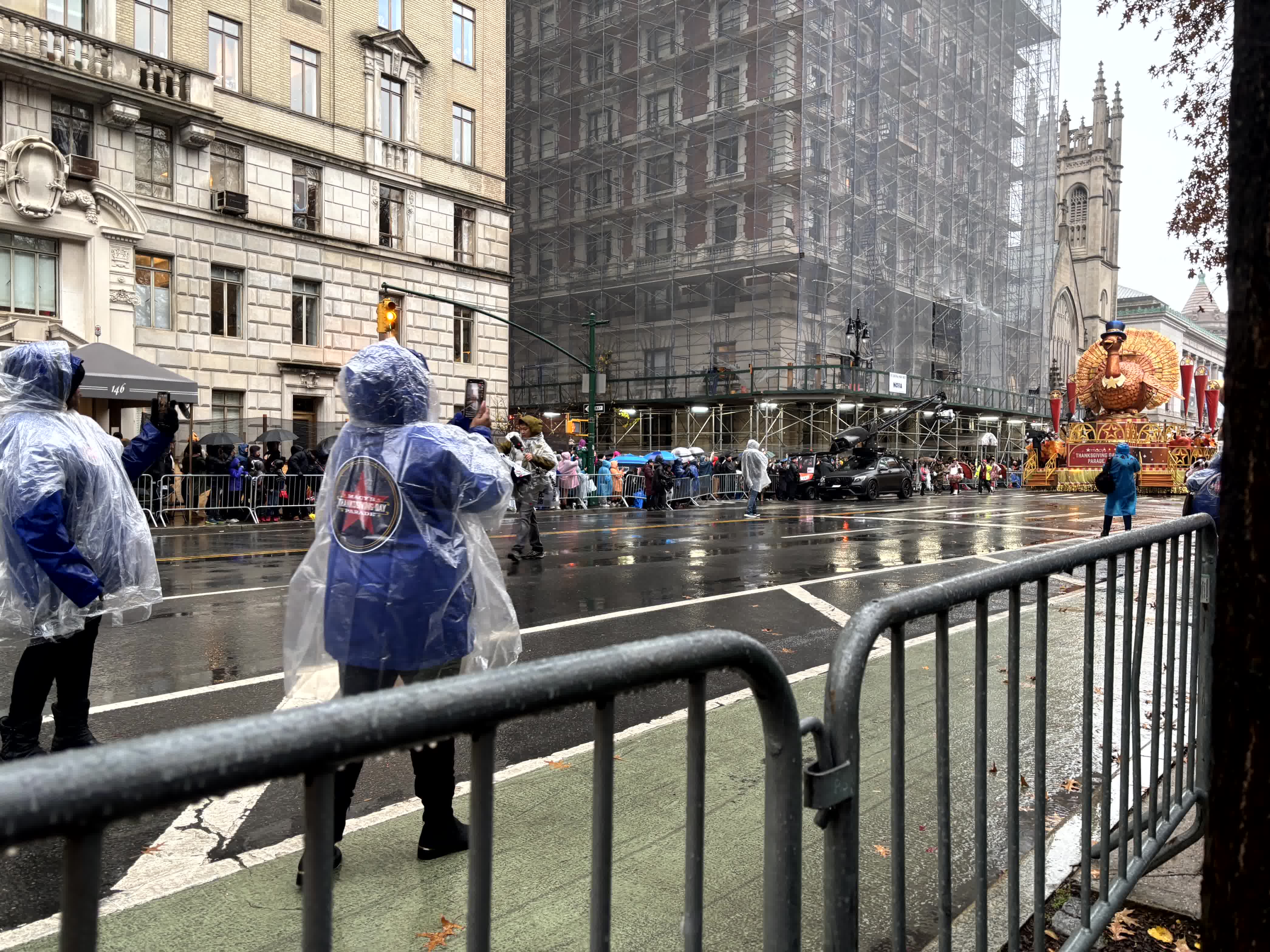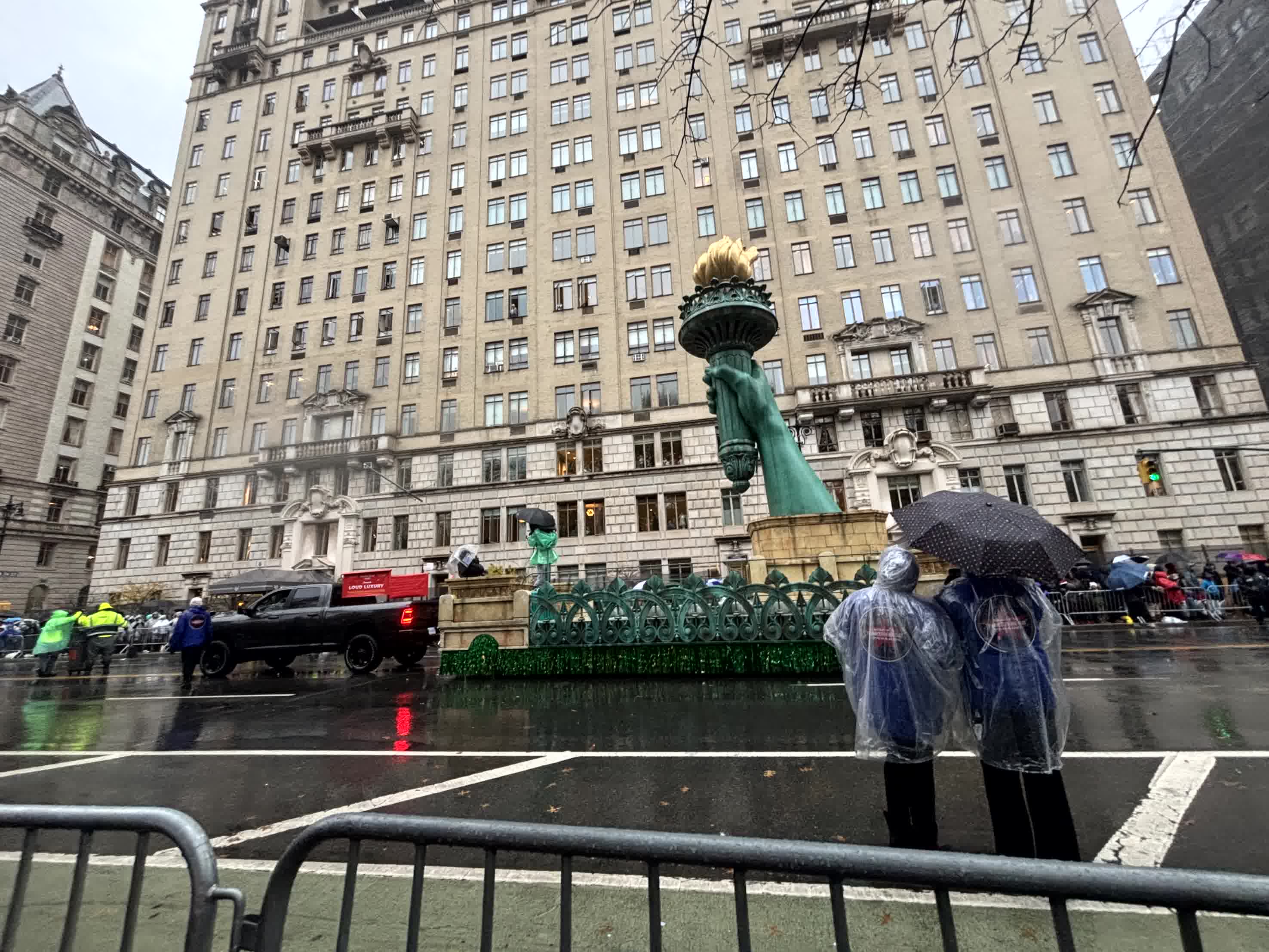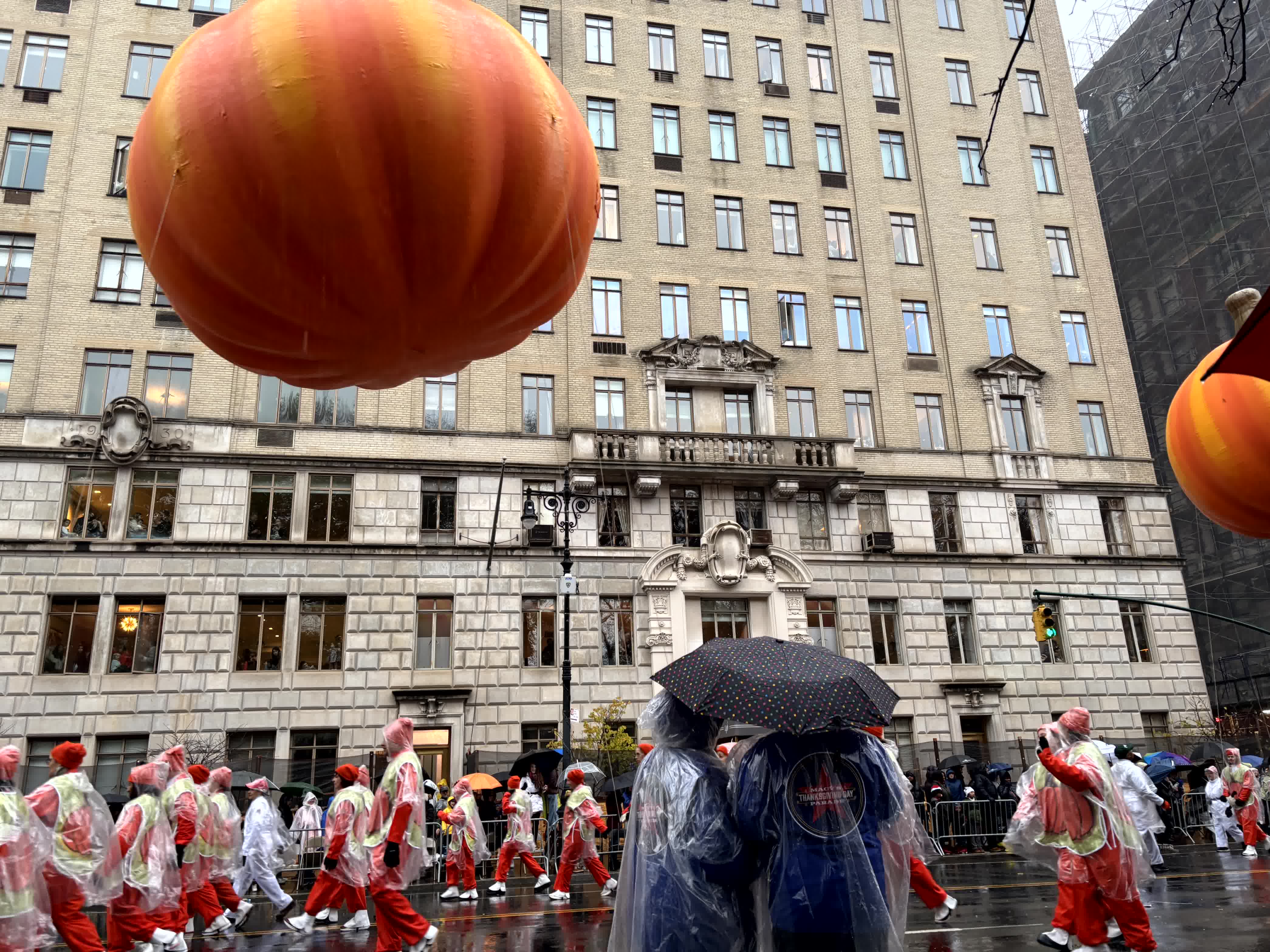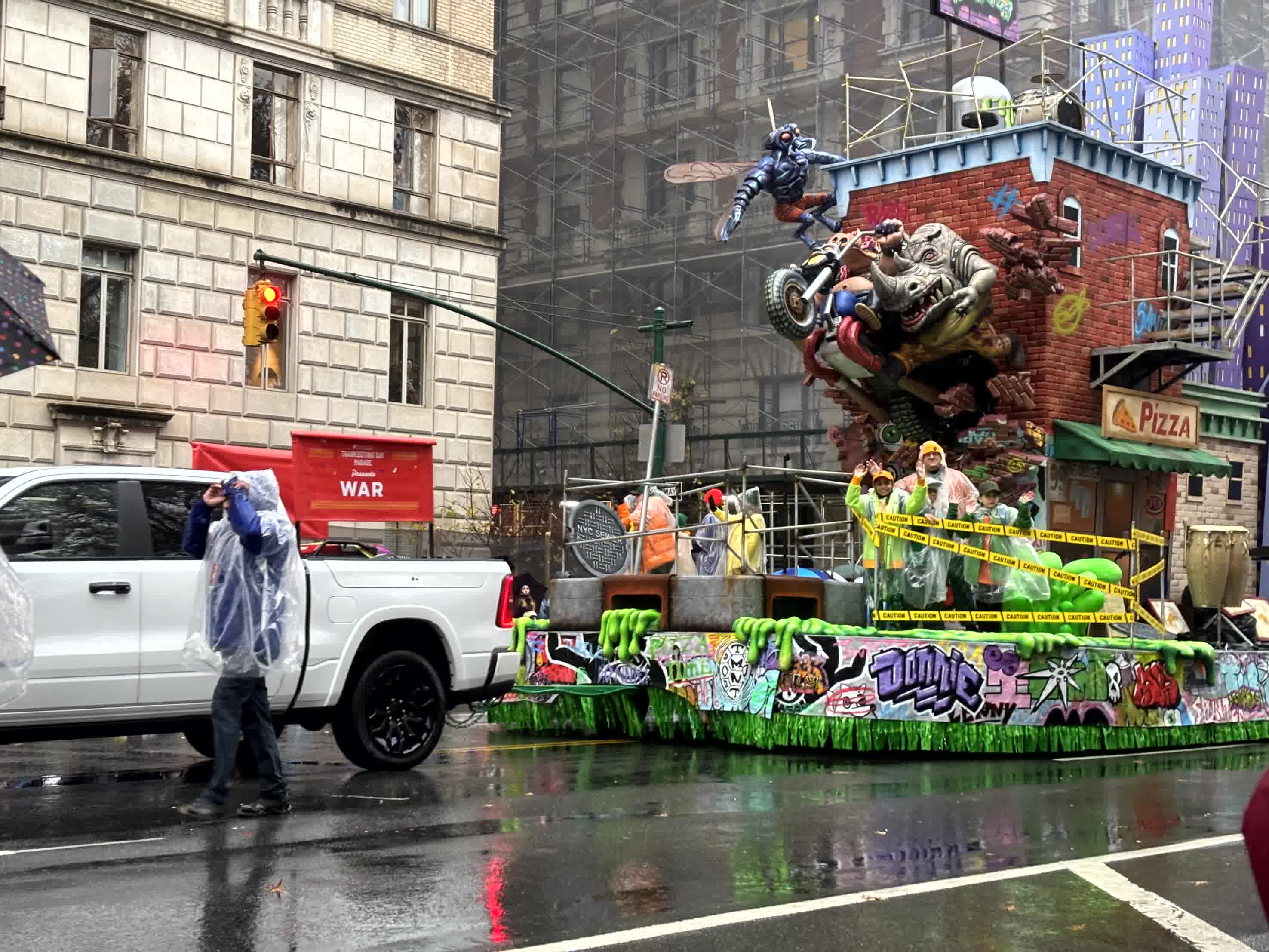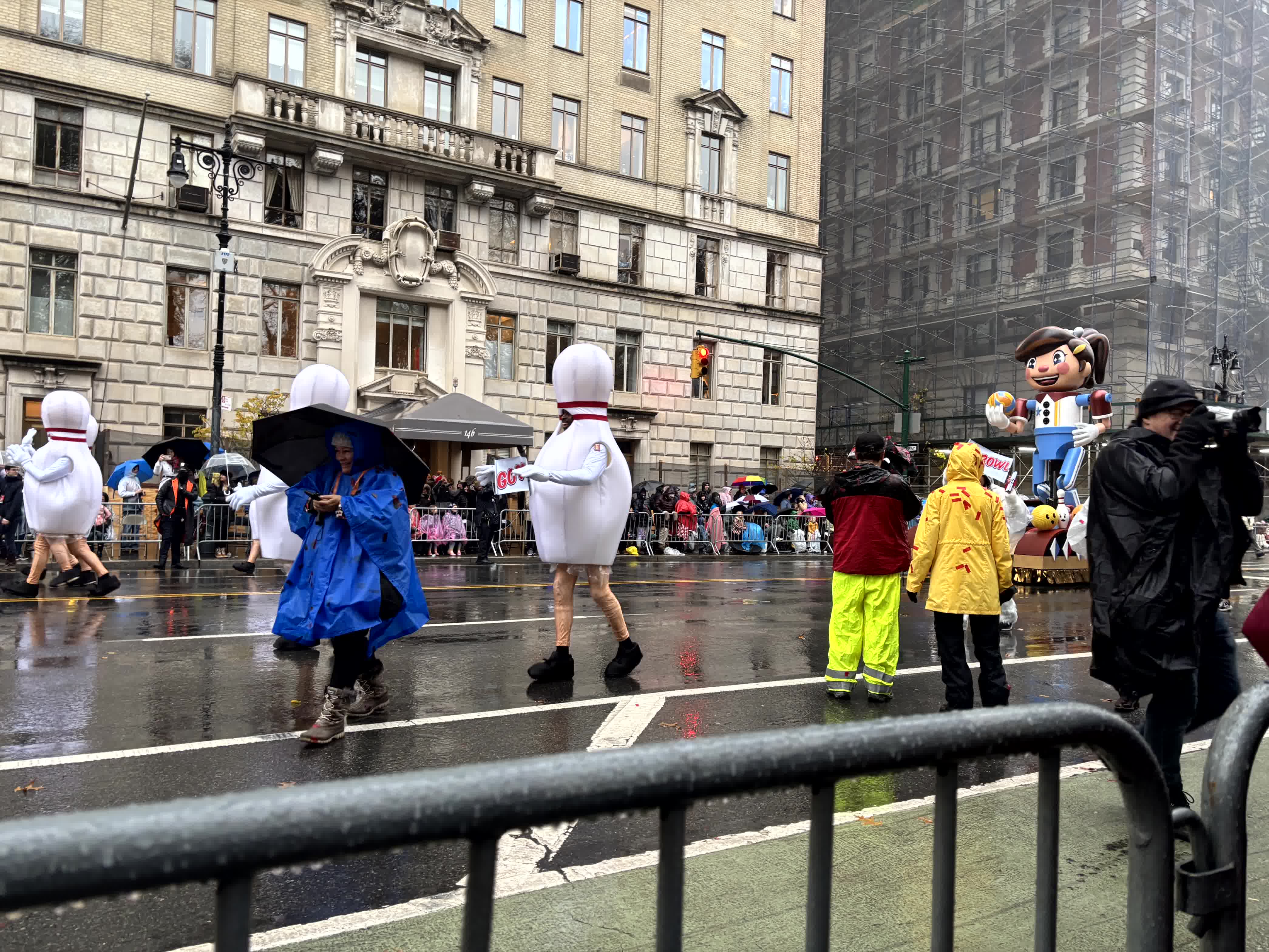 We have sort-of a sneak peak at upcoming floats as they line up down the road waiting for their turn to begin their trek through Manhattan.