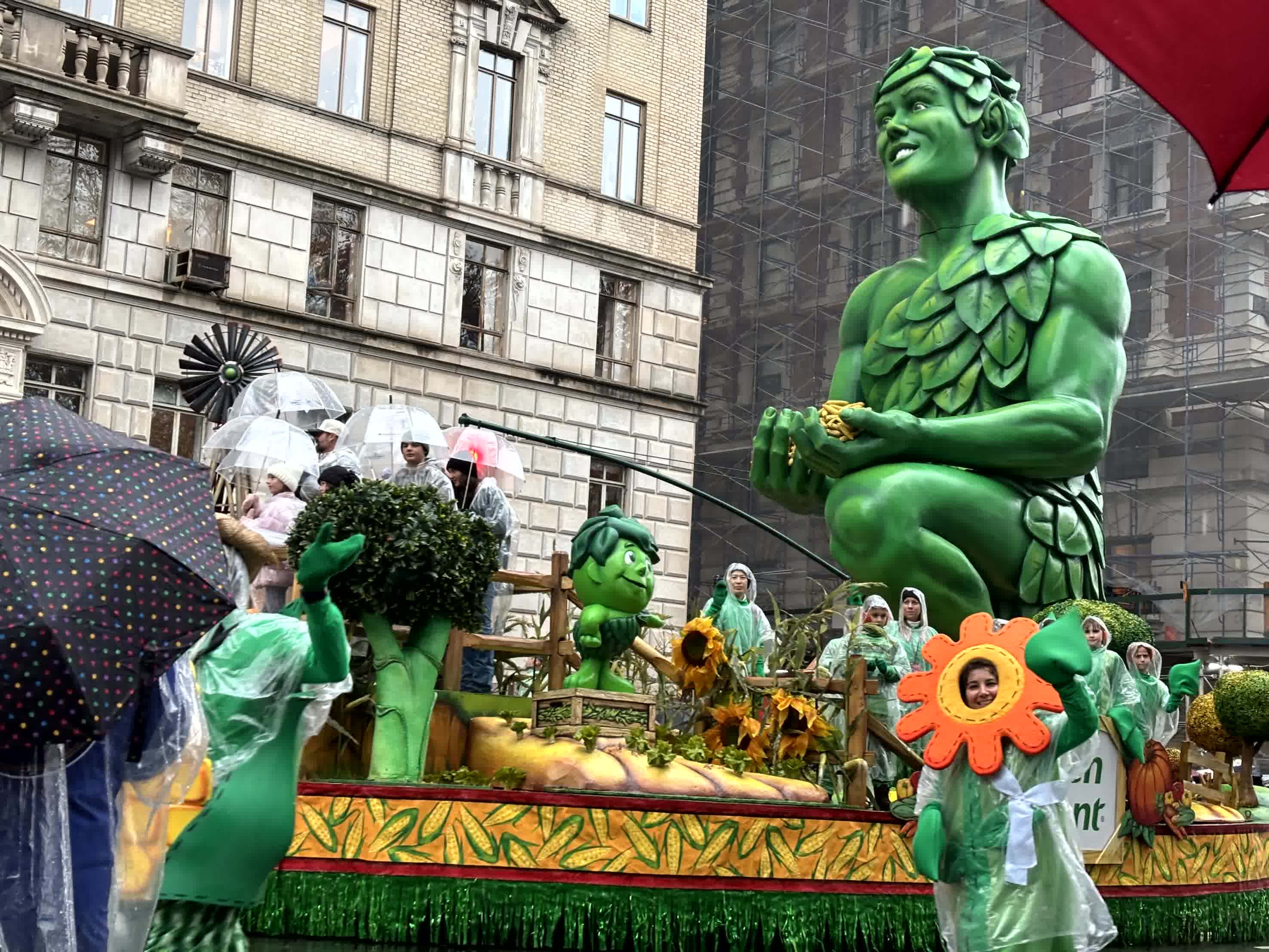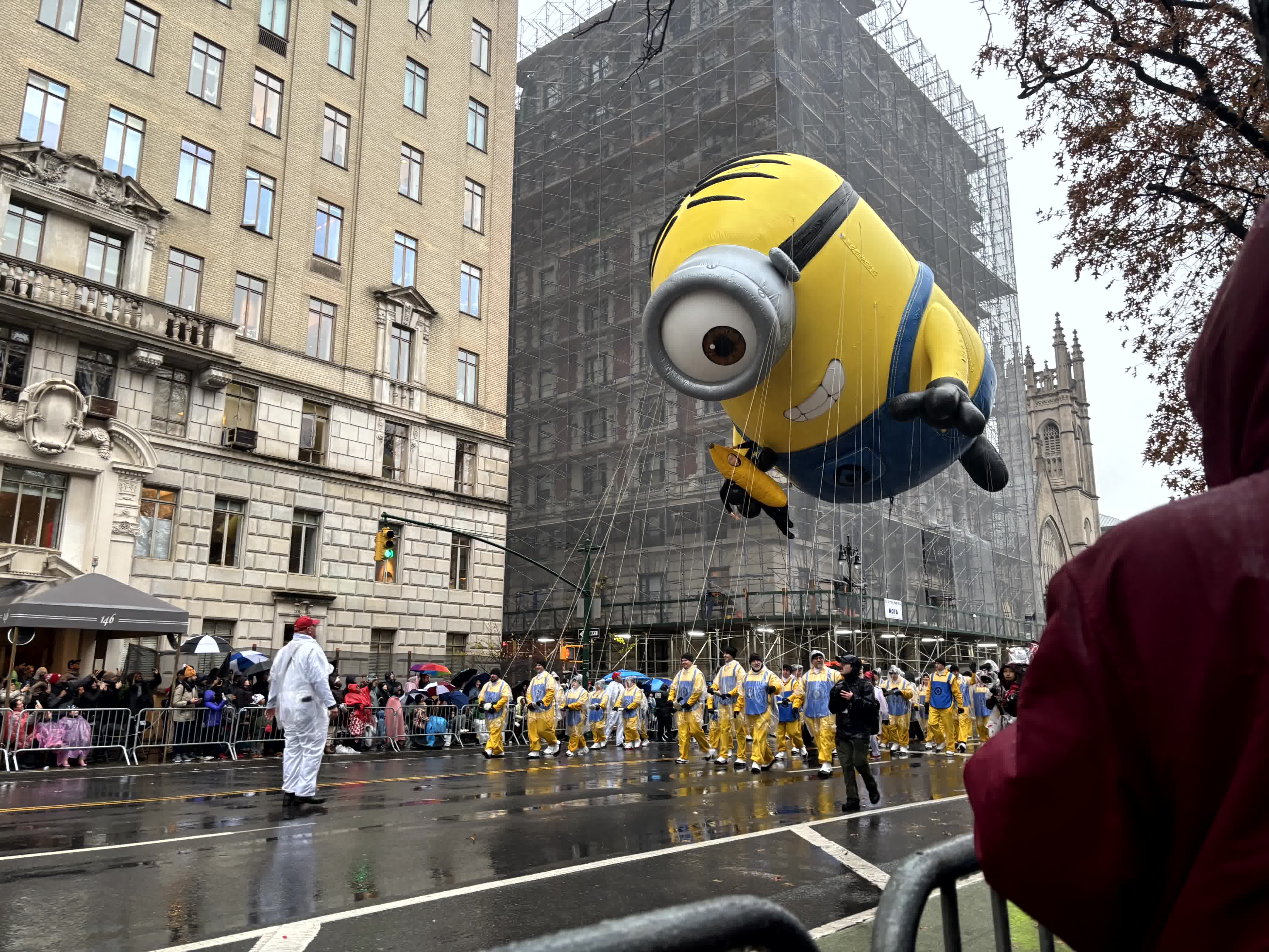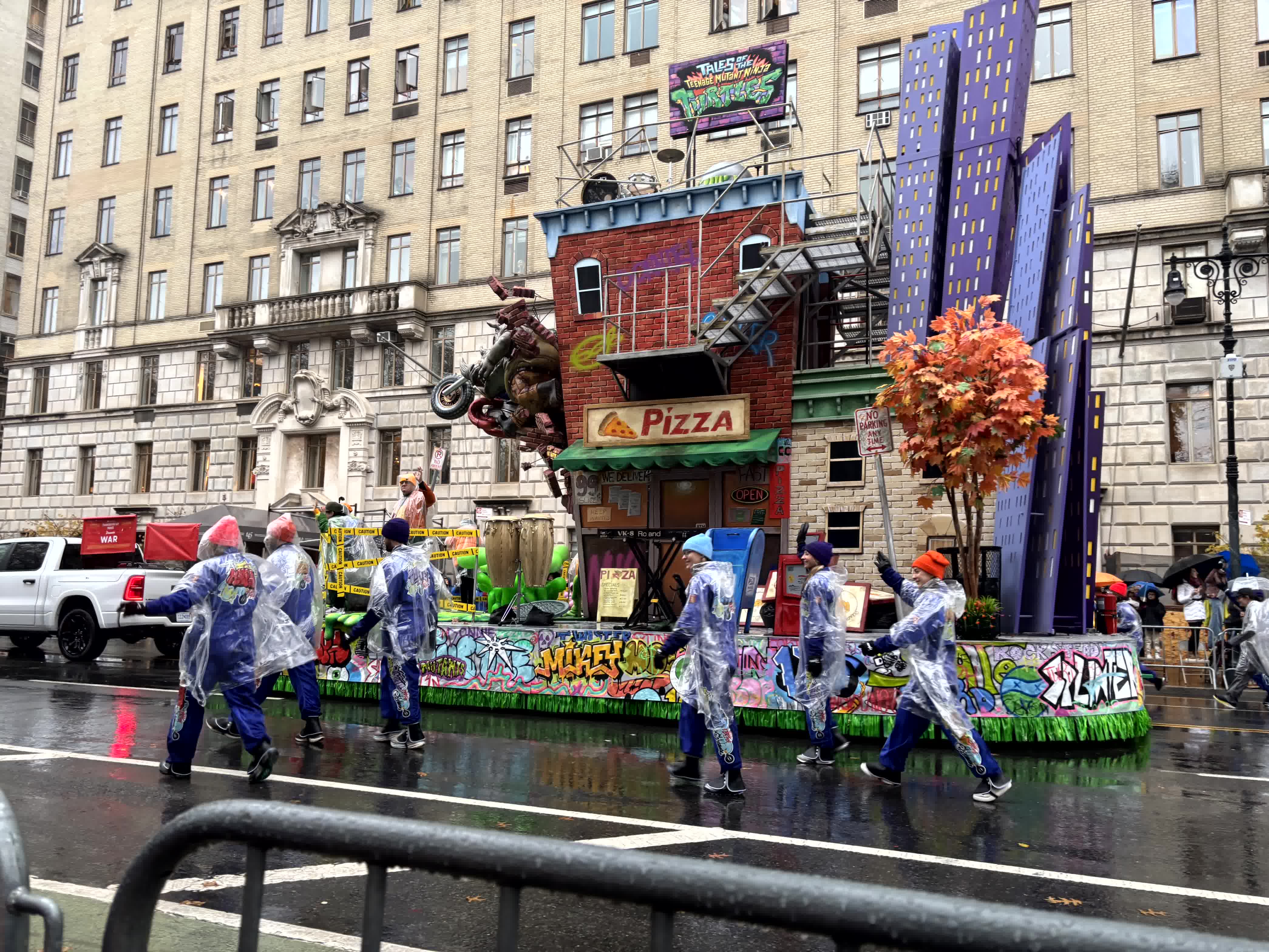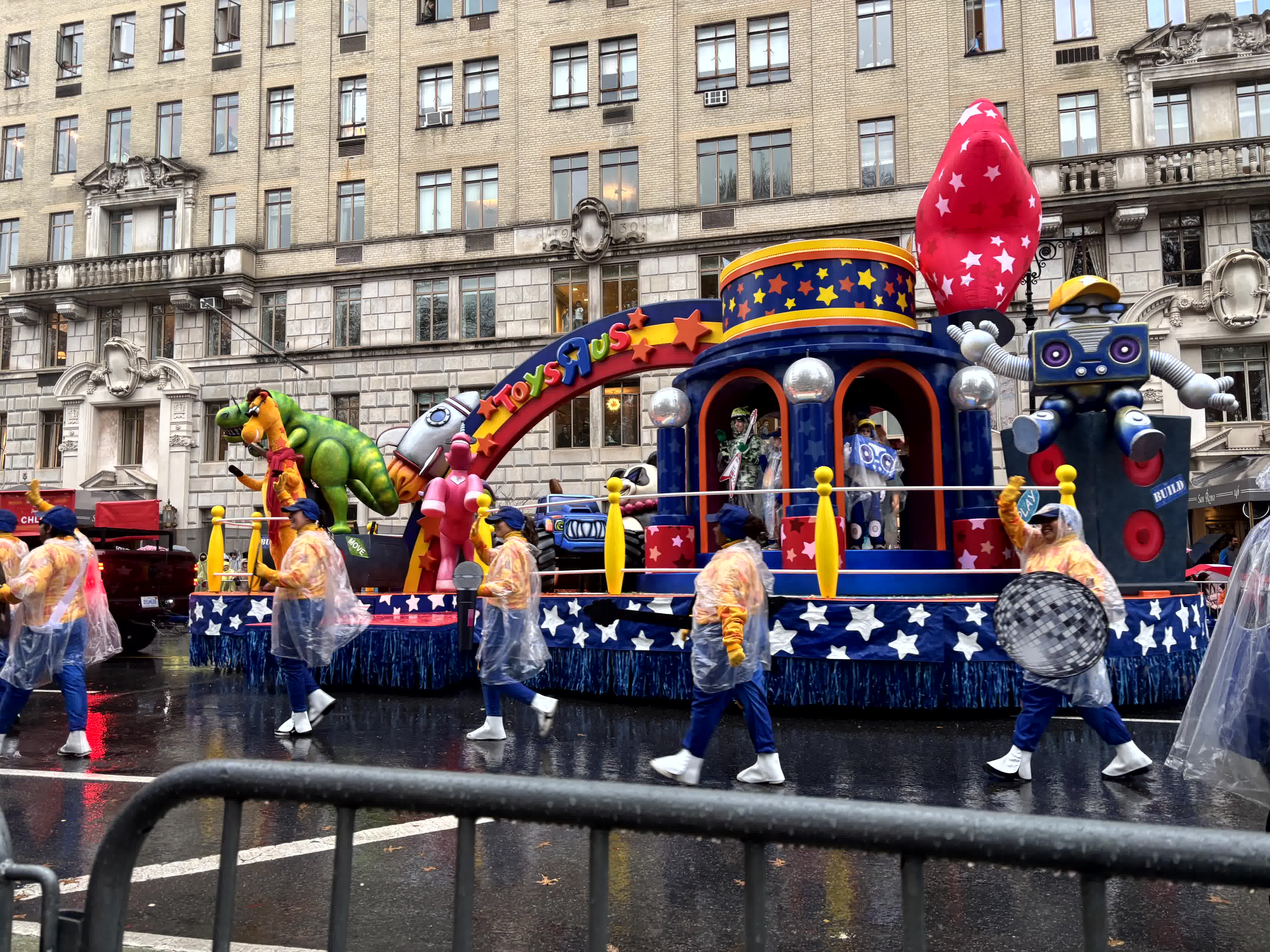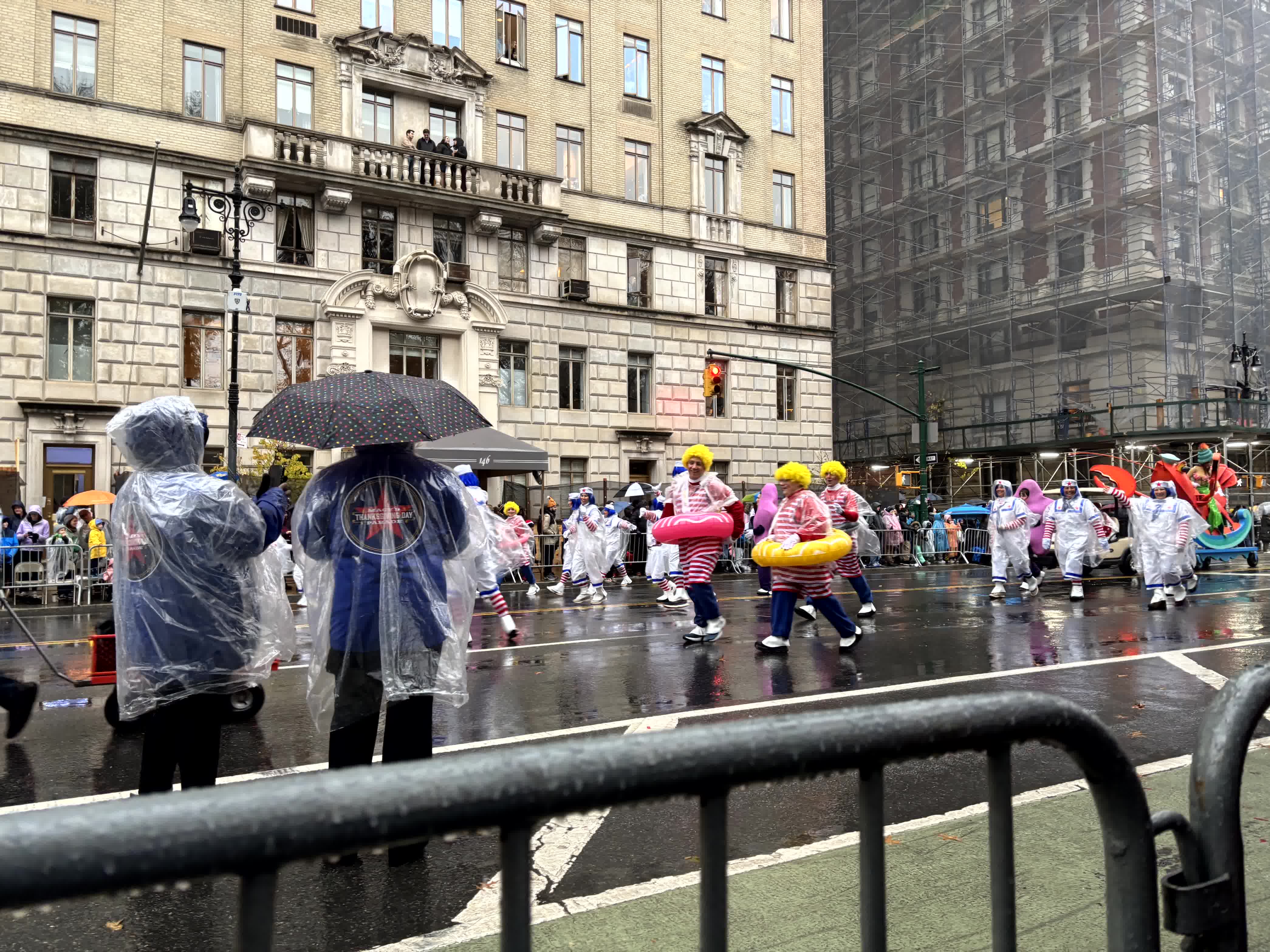 We have sort-of a sneak peak at upcoming floats as they line up down the road waiting for their turn to begin their trek through Manhattan.