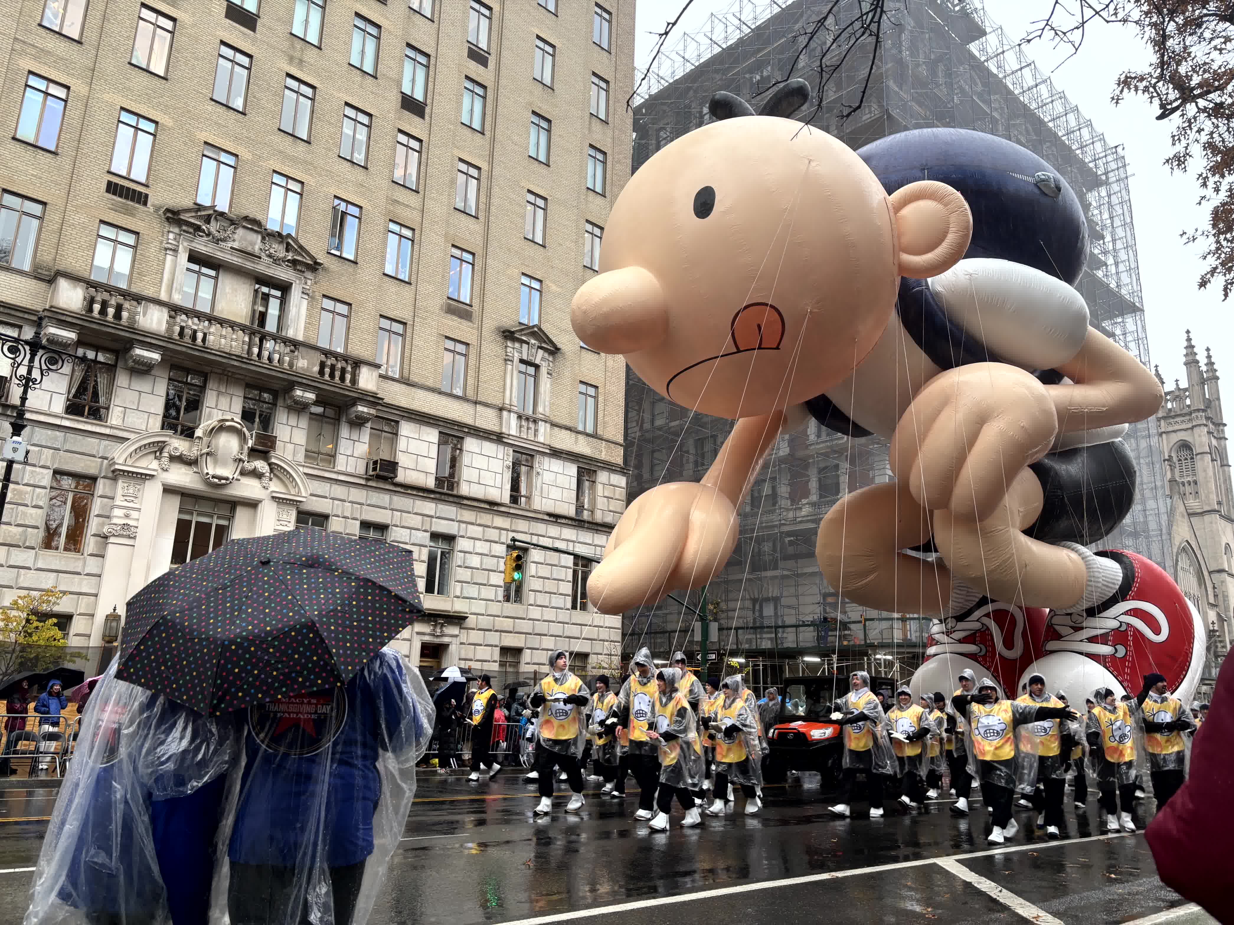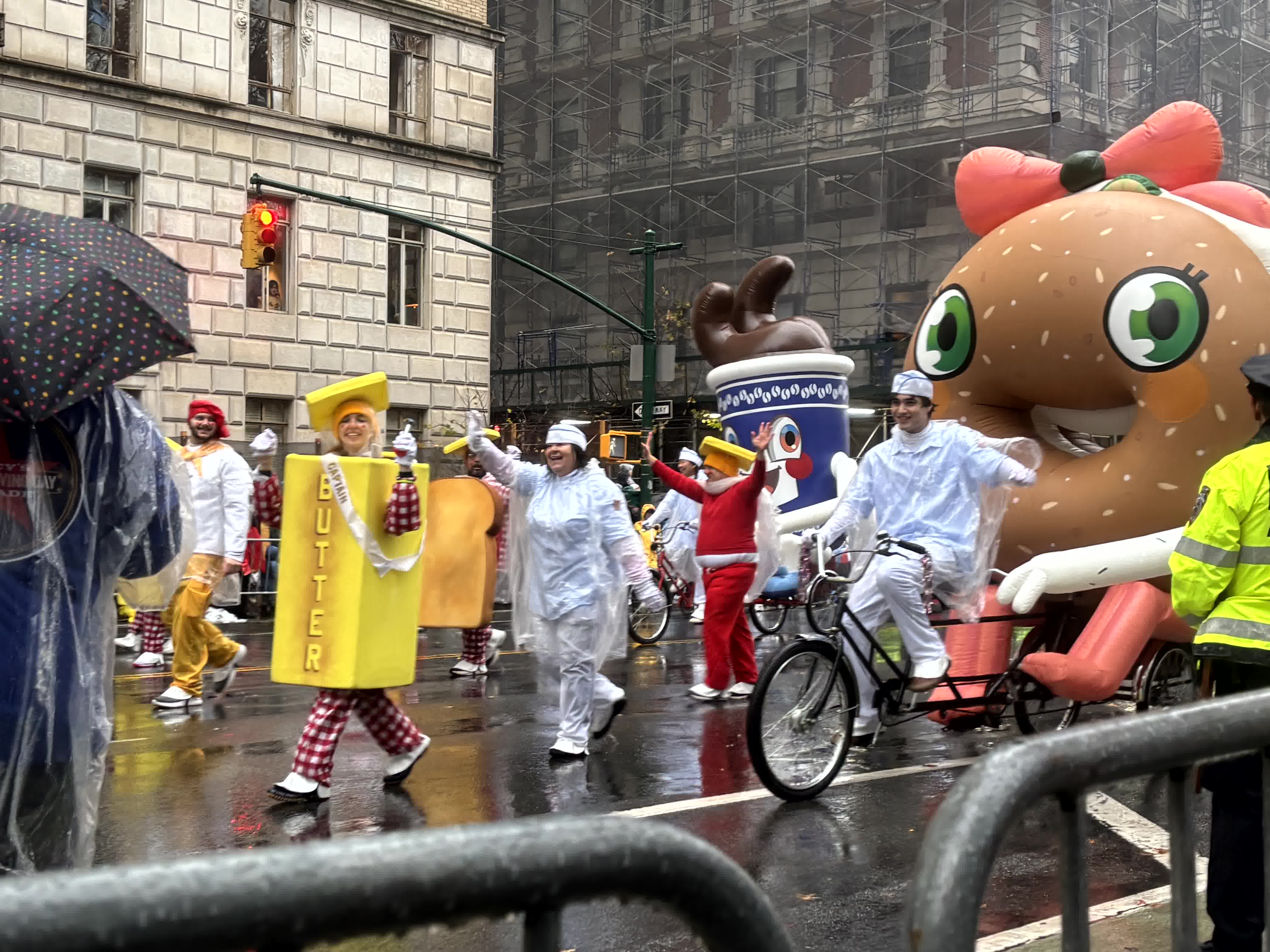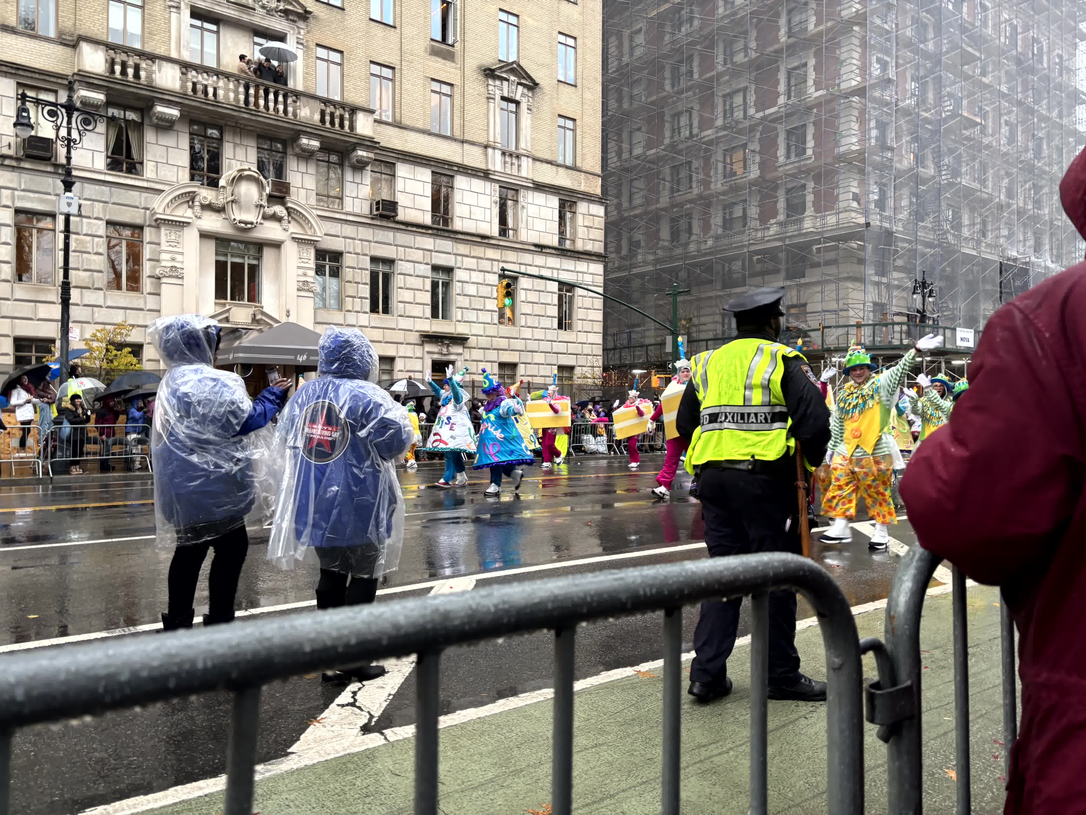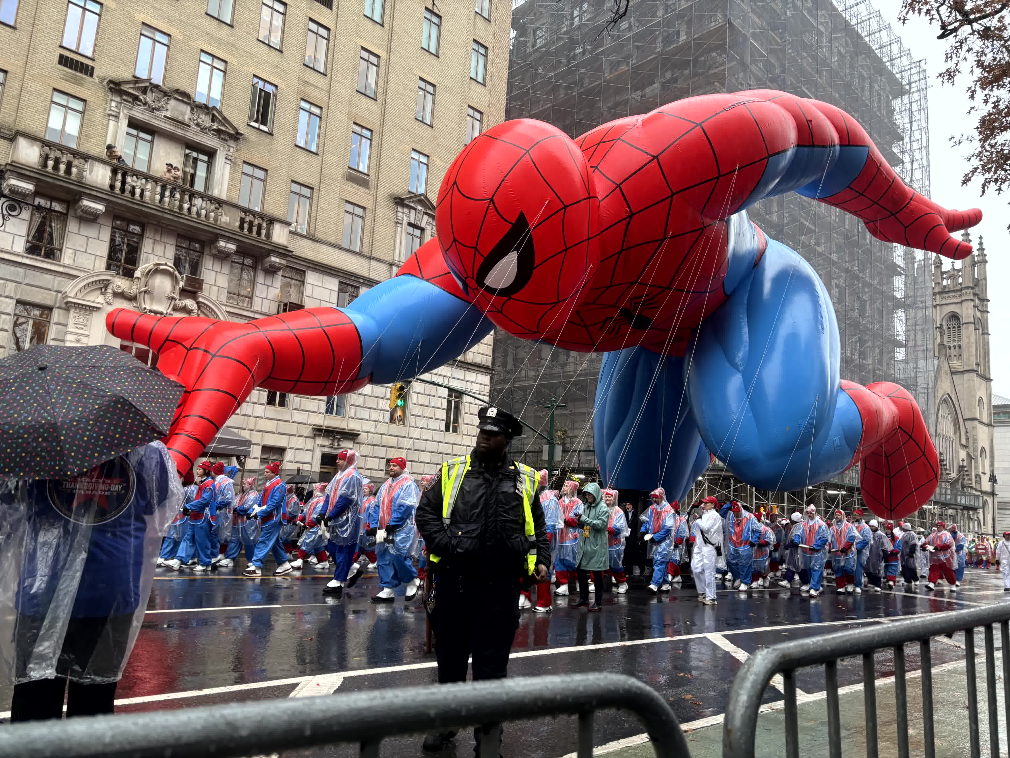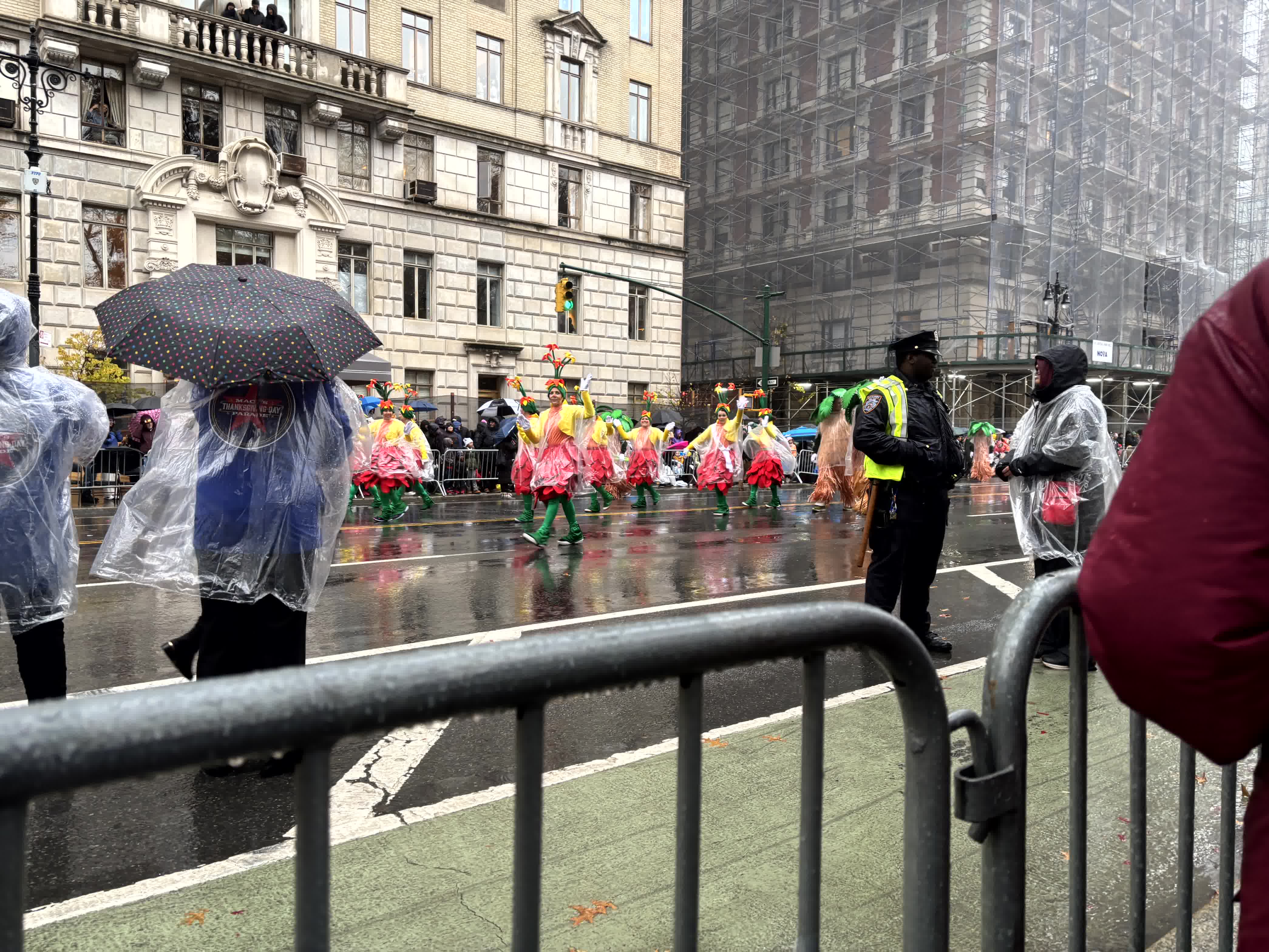 We have sort-of a sneak peak at upcoming floats as they line up down the road waiting for their turn to begin their trek through Manhattan.
