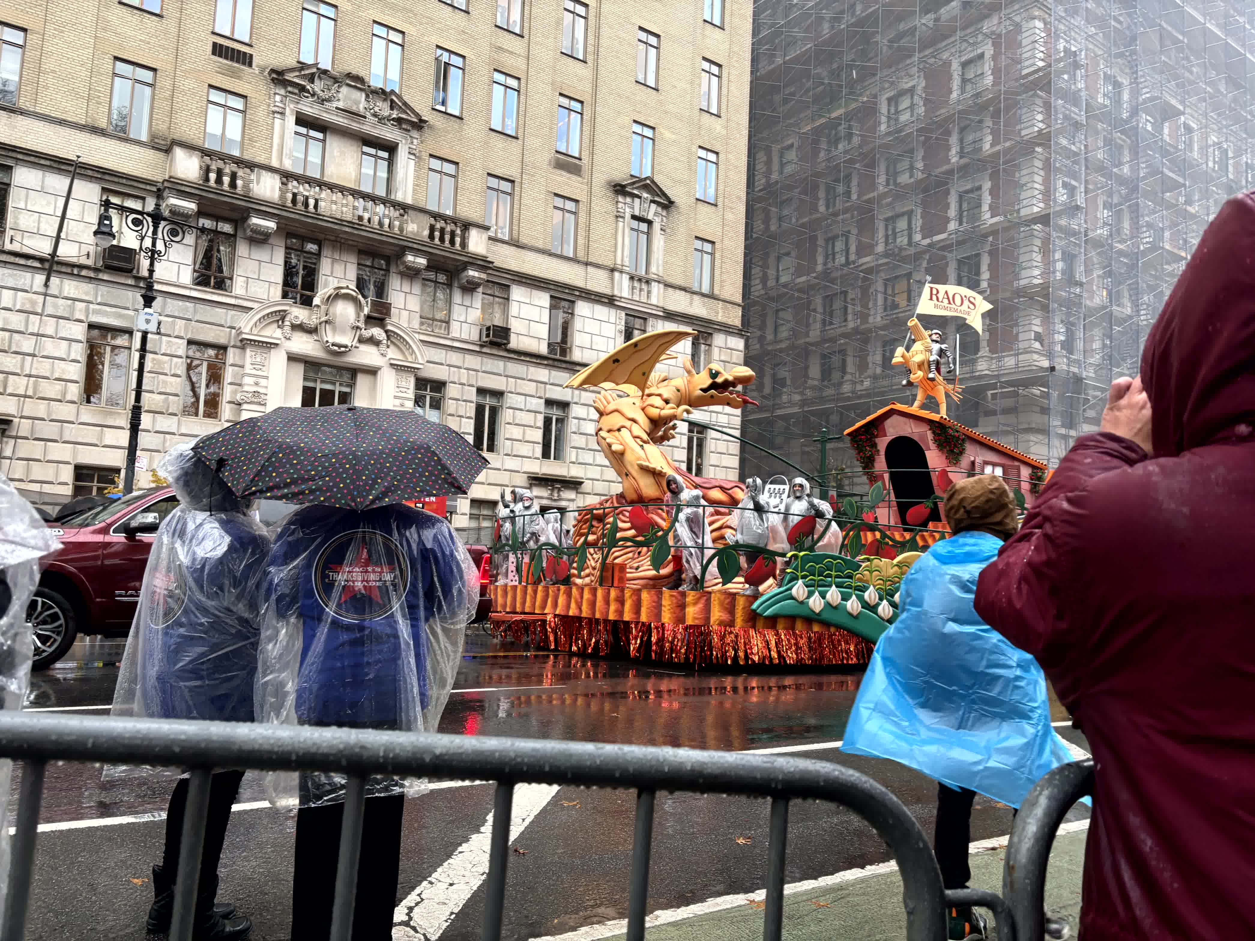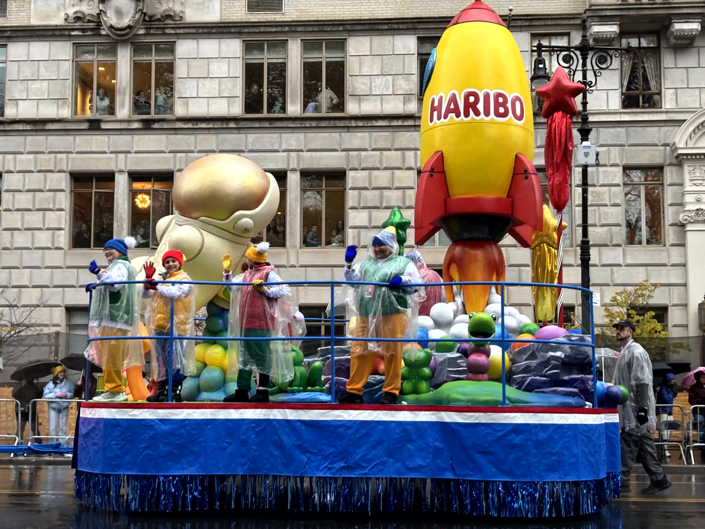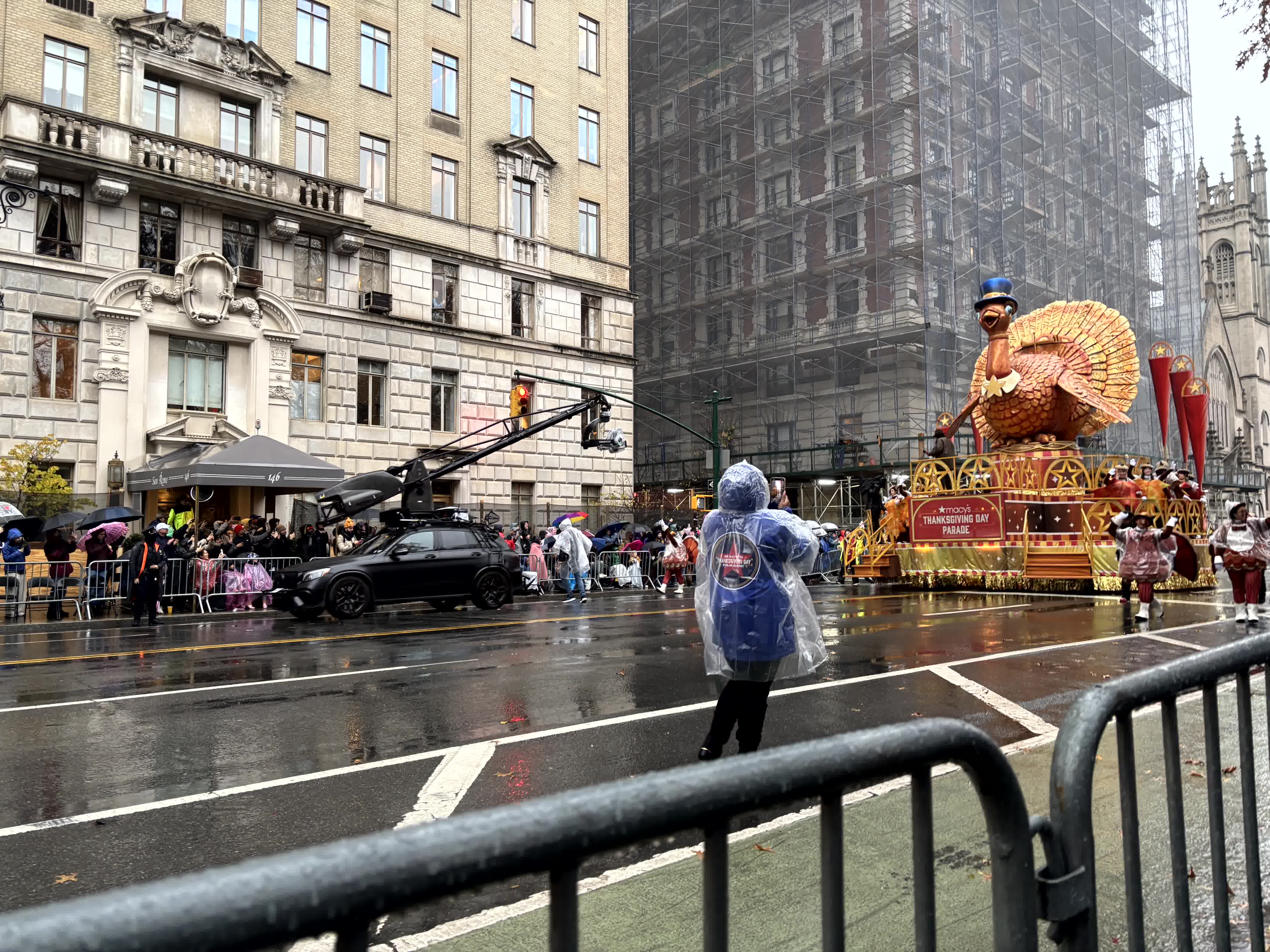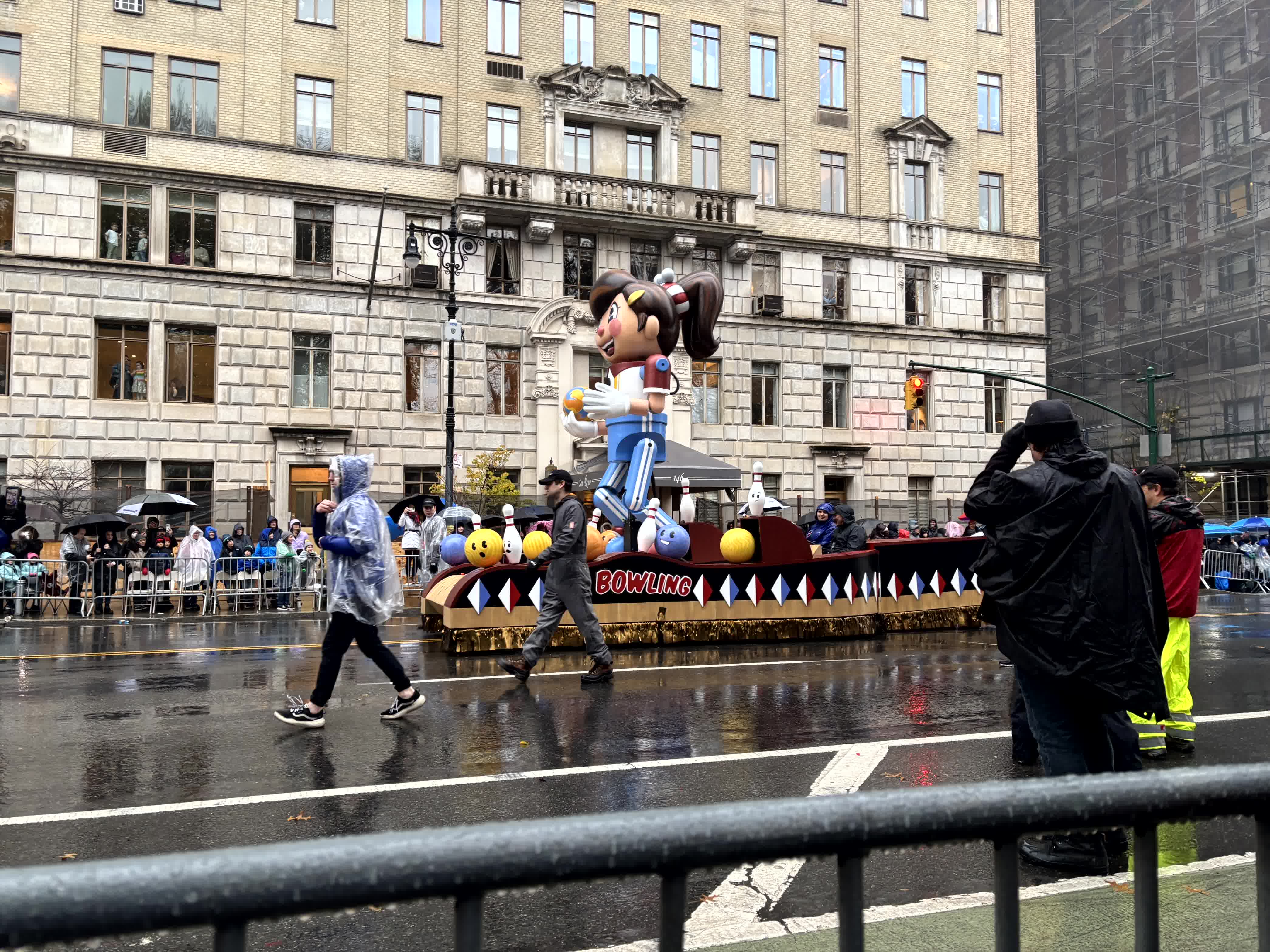 We have sort-of a sneak peak at upcoming floats as they line up down the road waiting for their turn to begin their trek through Manhattan.
