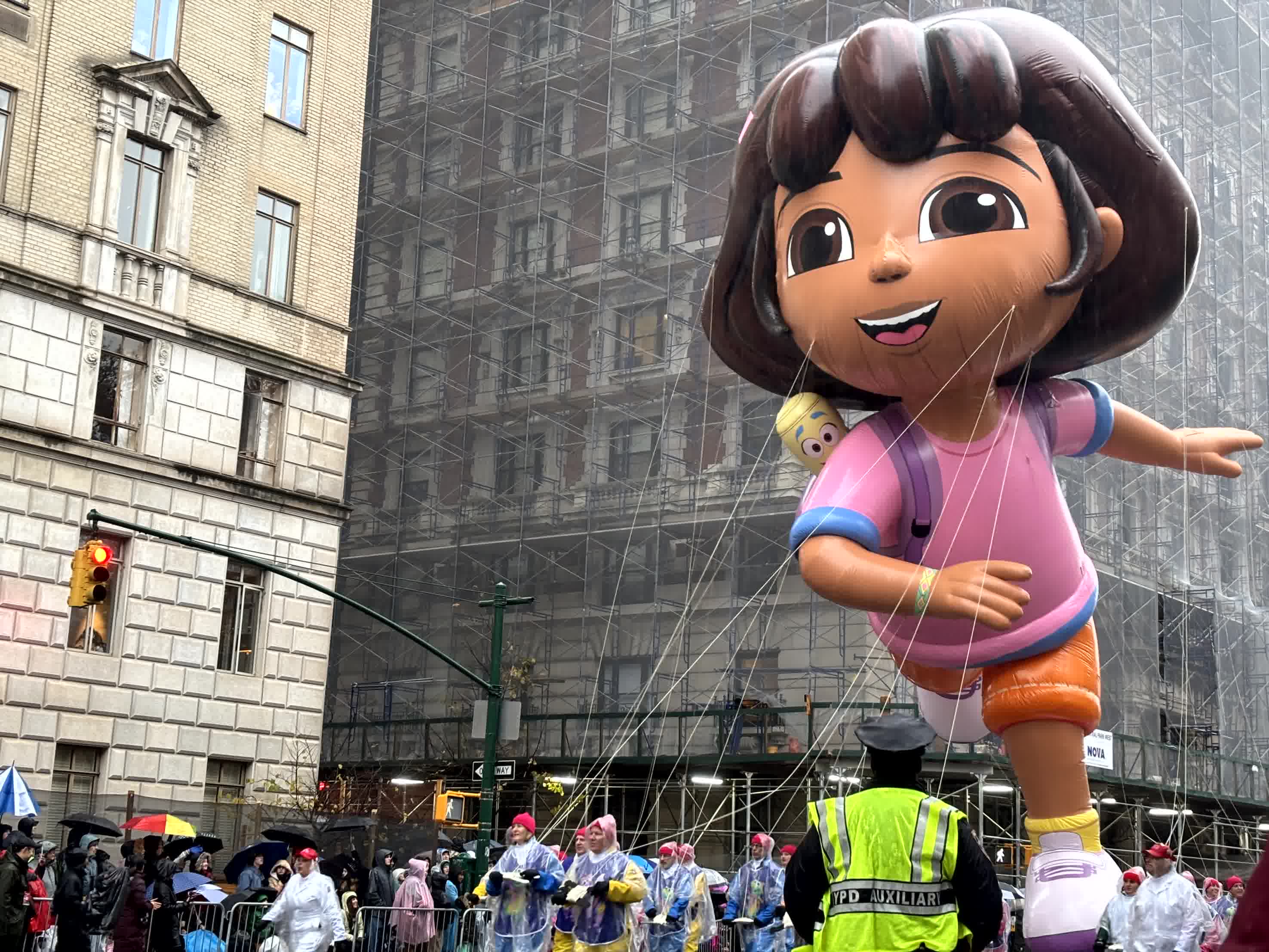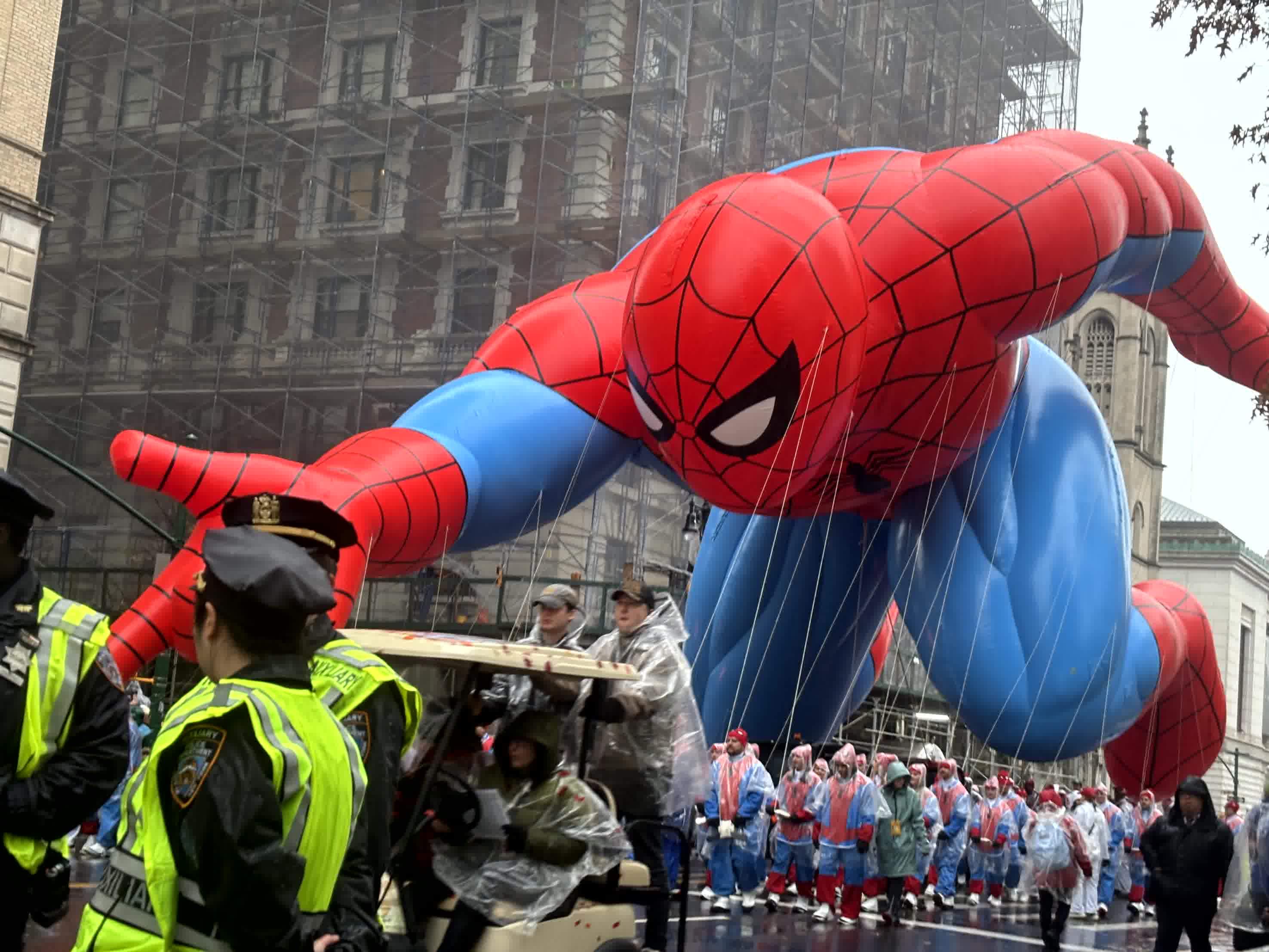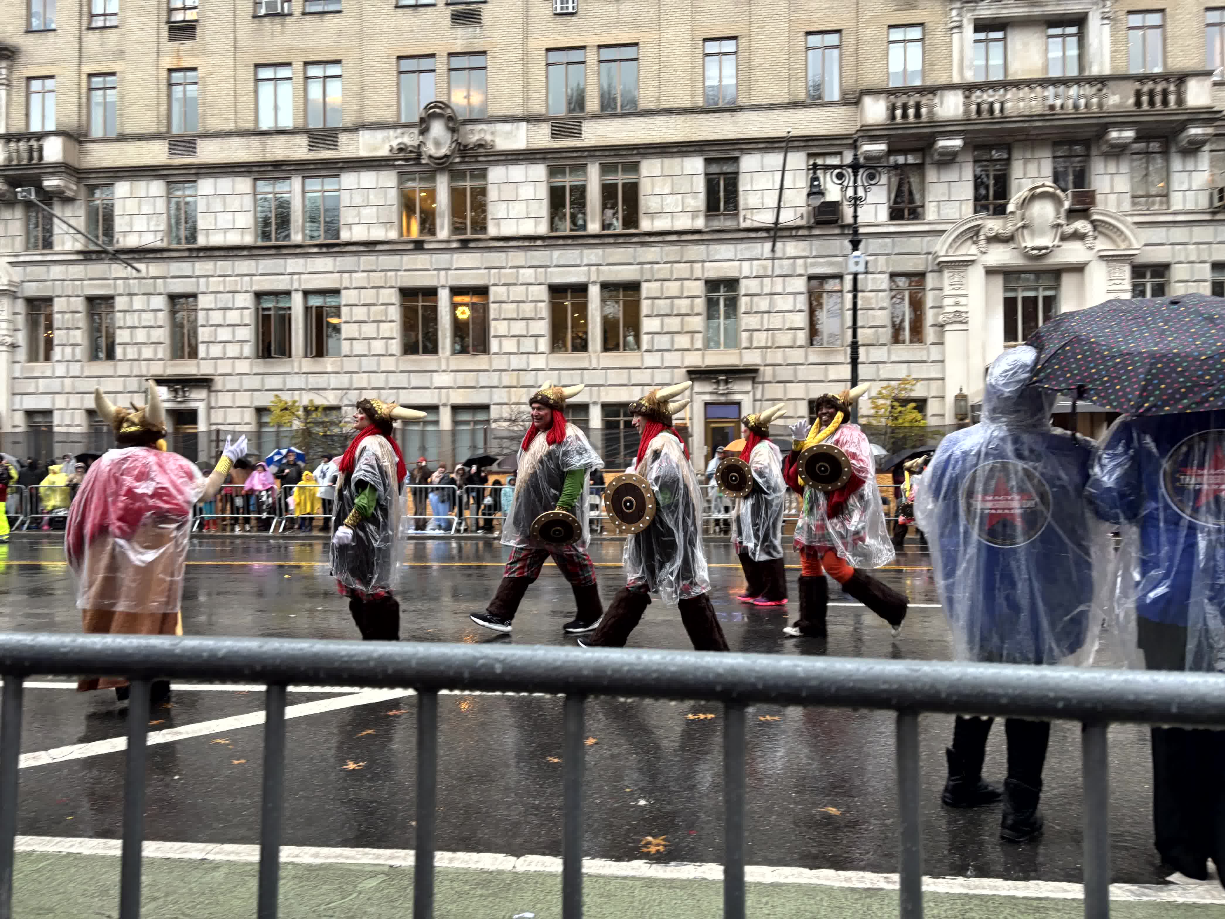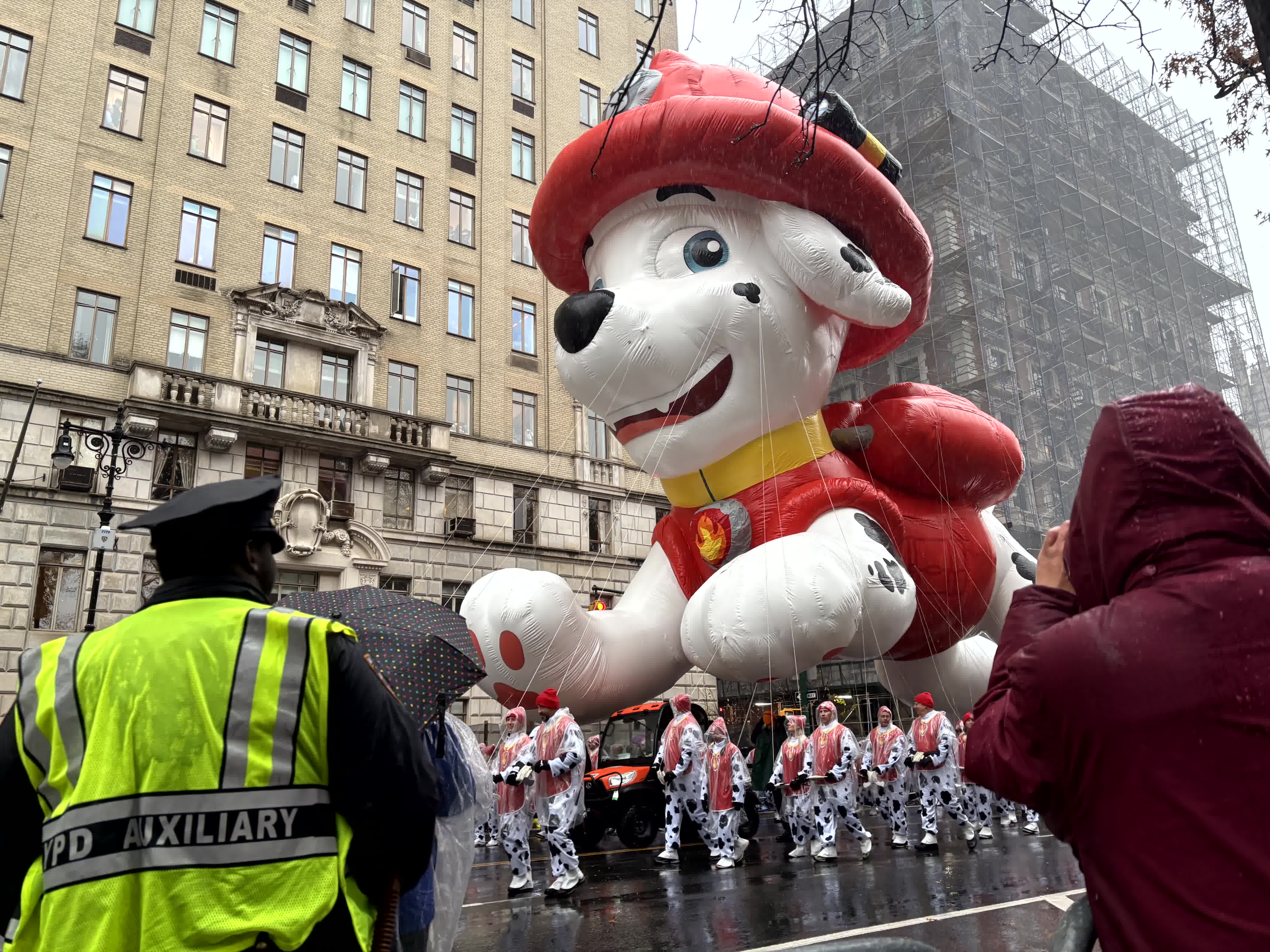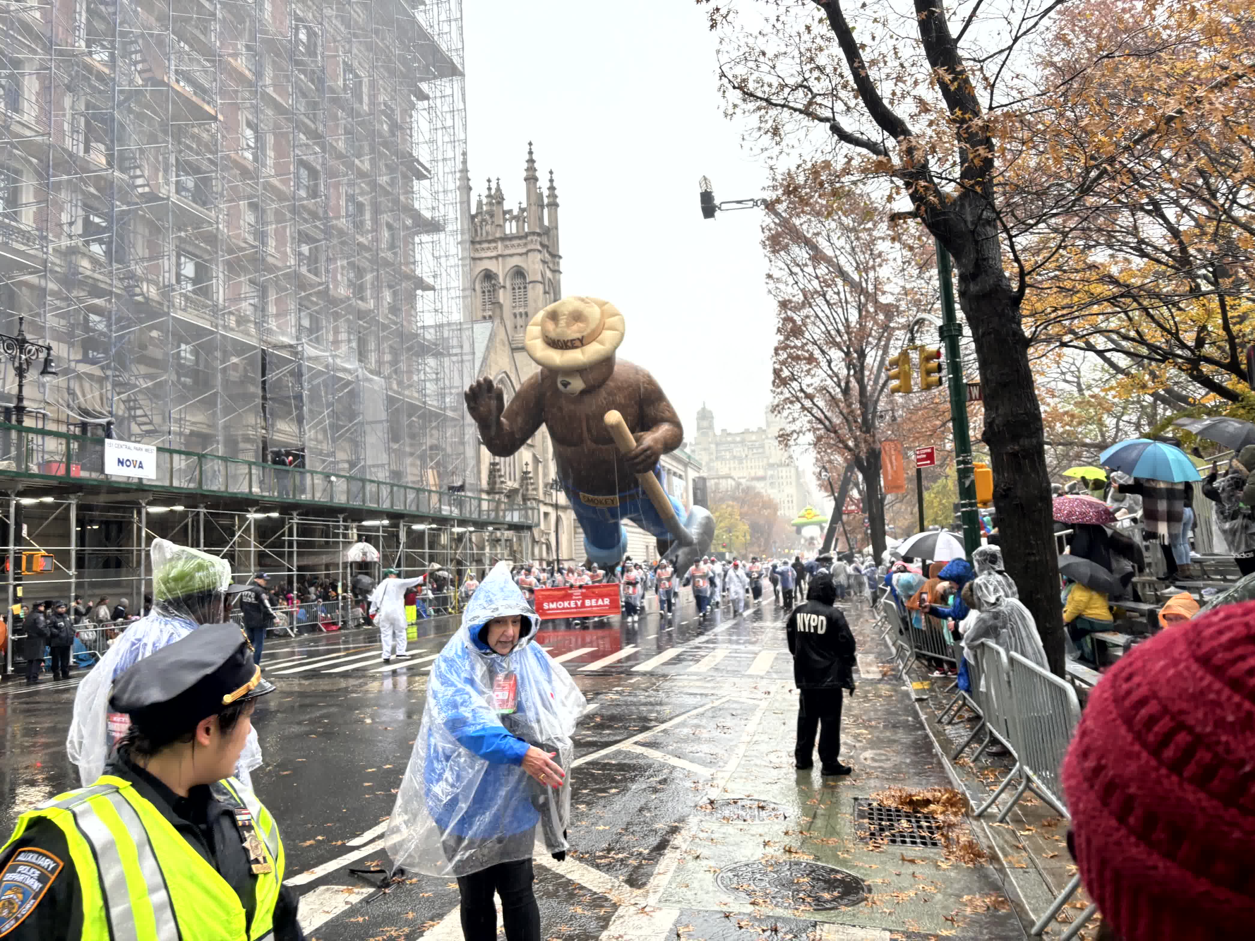 We have sort-of a sneak peak at upcoming floats as they line up down the road waiting for their turn to begin their trek through Manhattan.