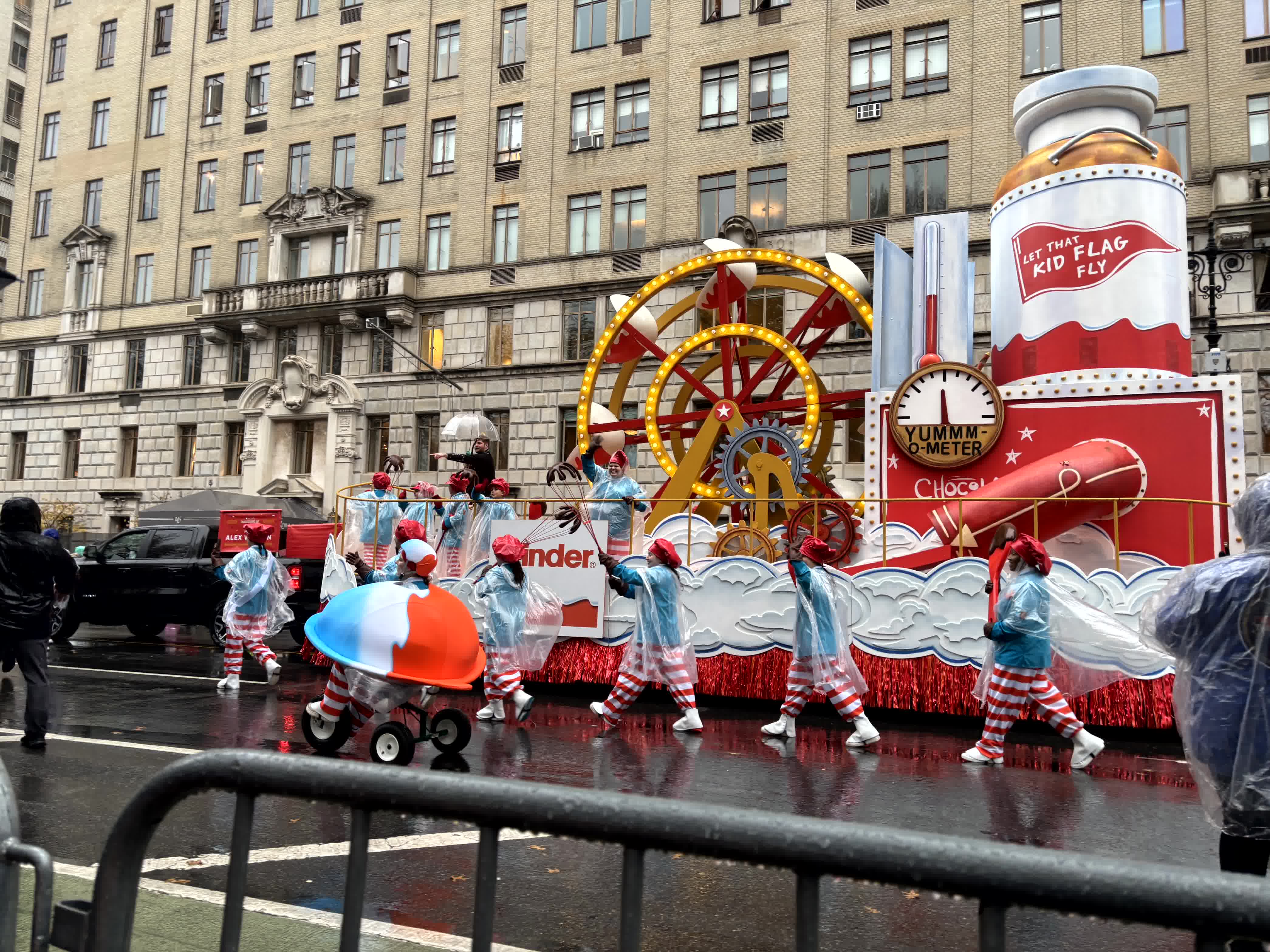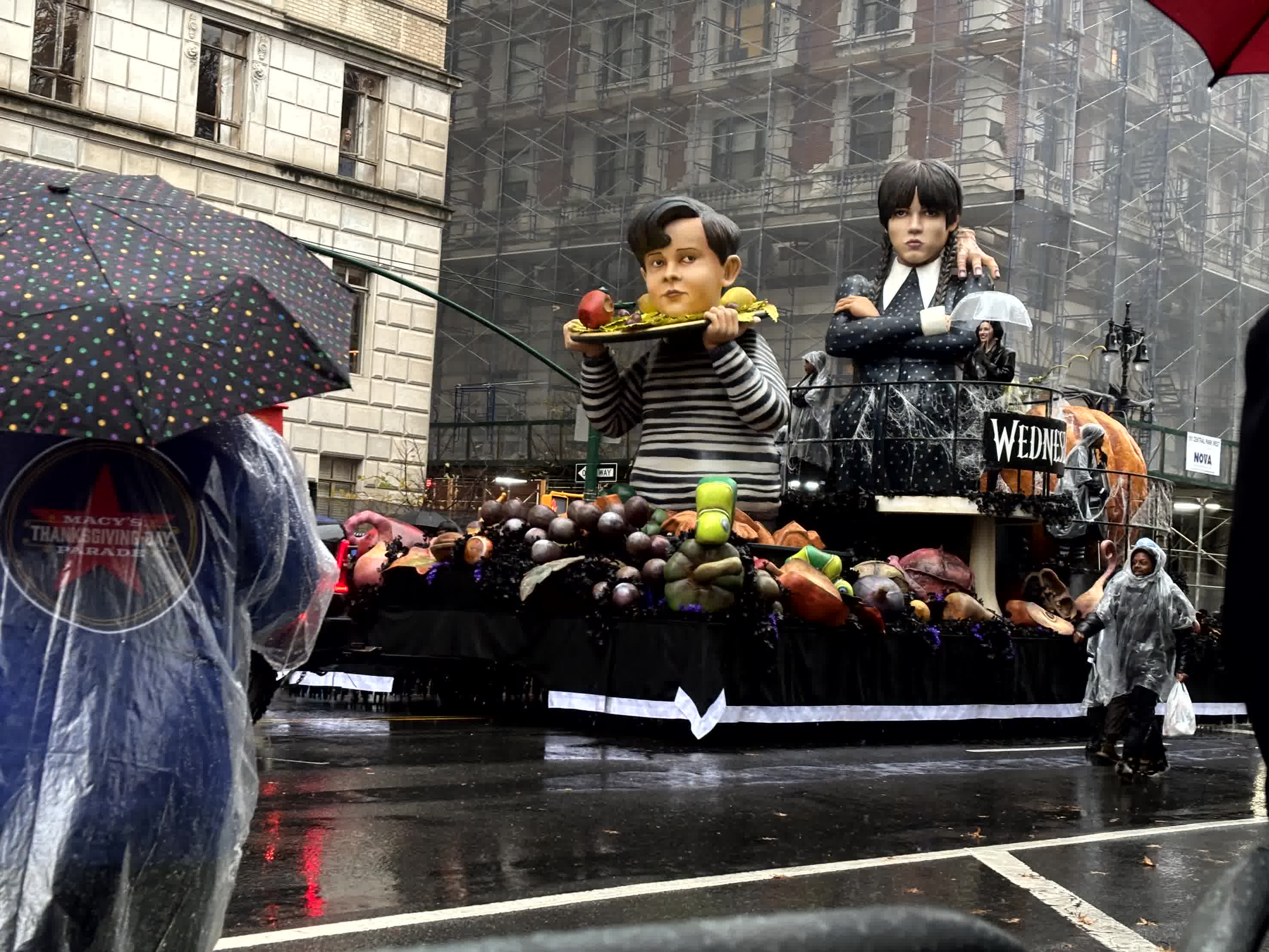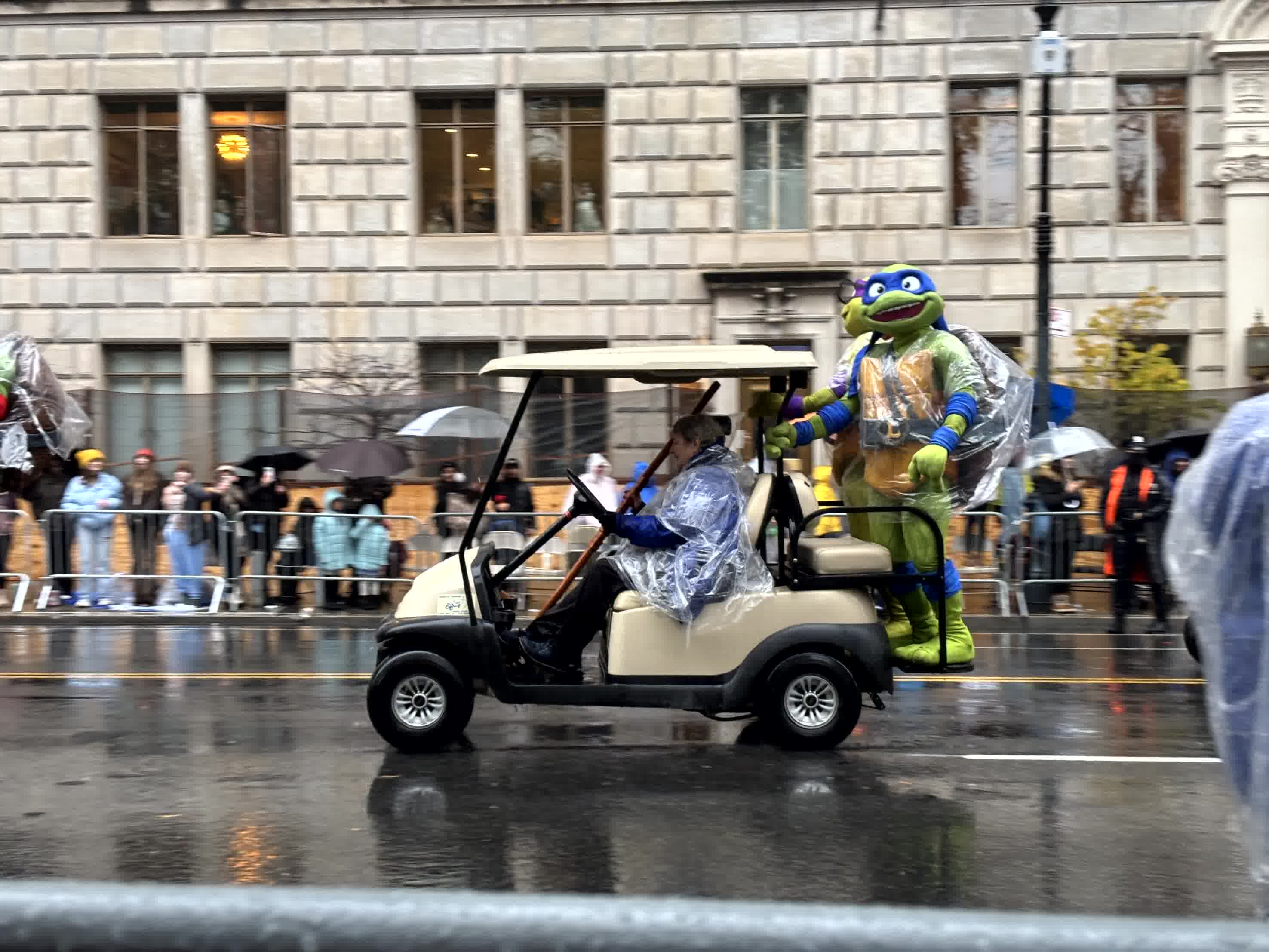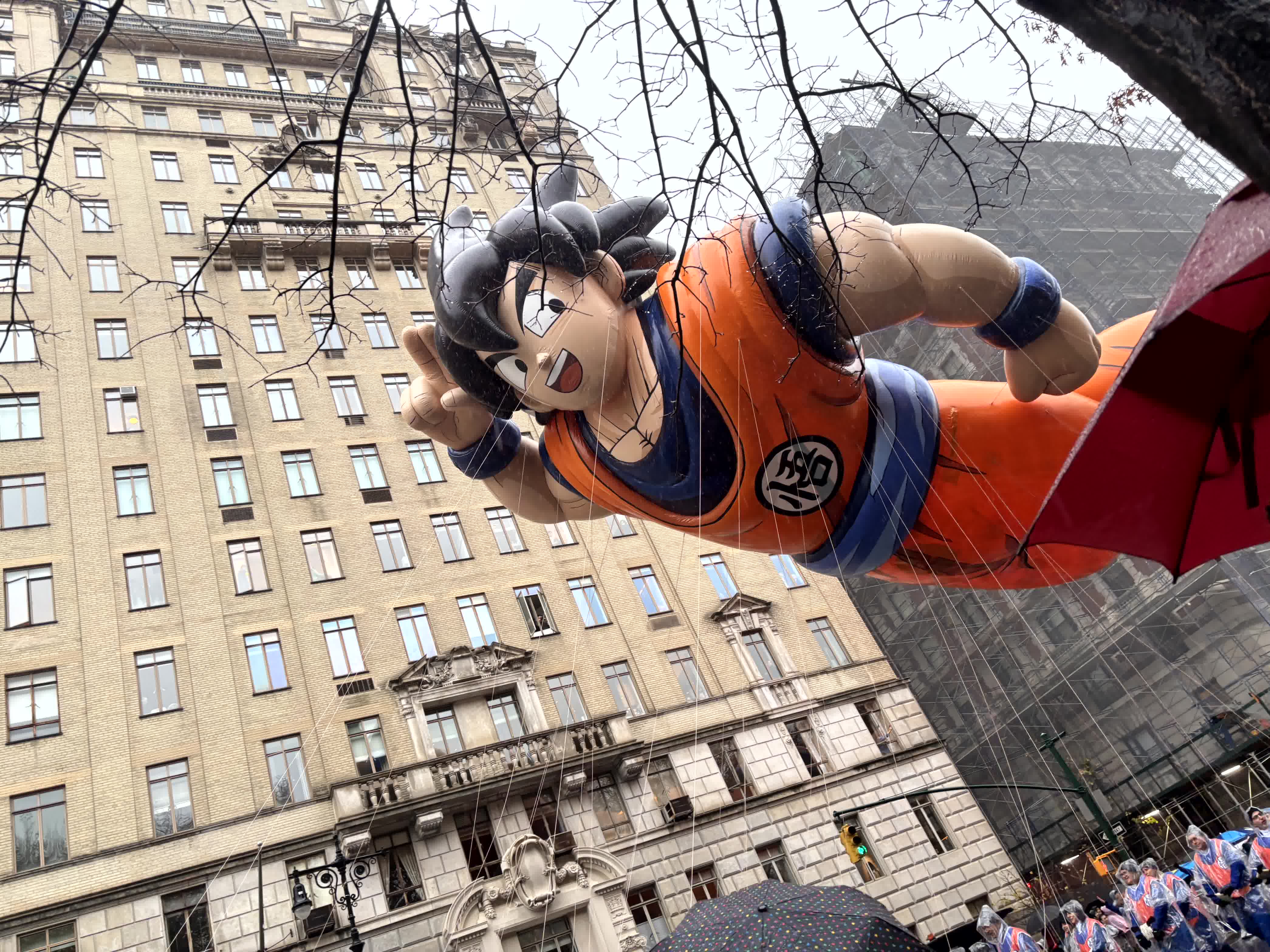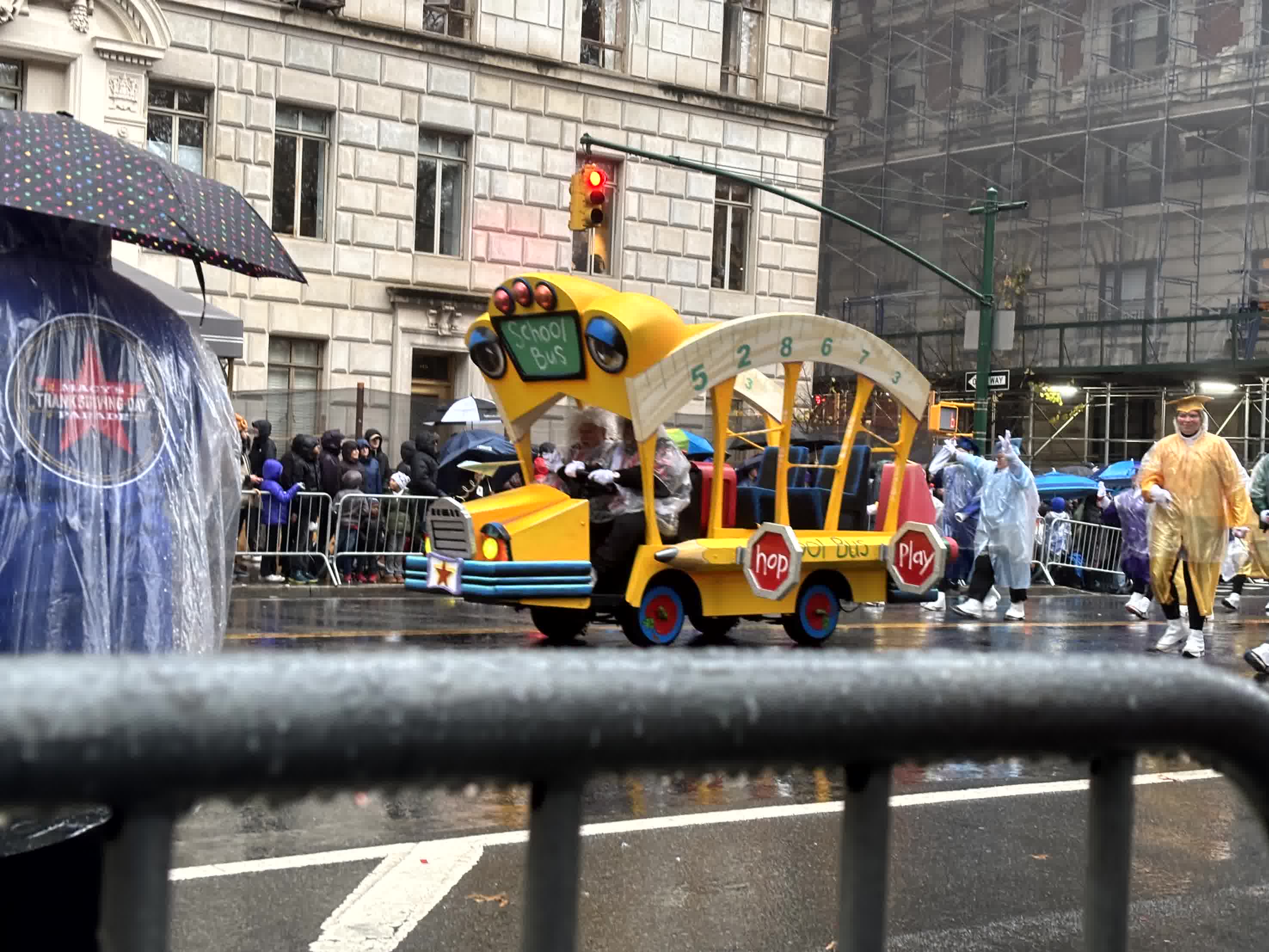 We have sort-of a sneak peak at upcoming floats as they line up down the road waiting for their turn to begin their trek through Manhattan.