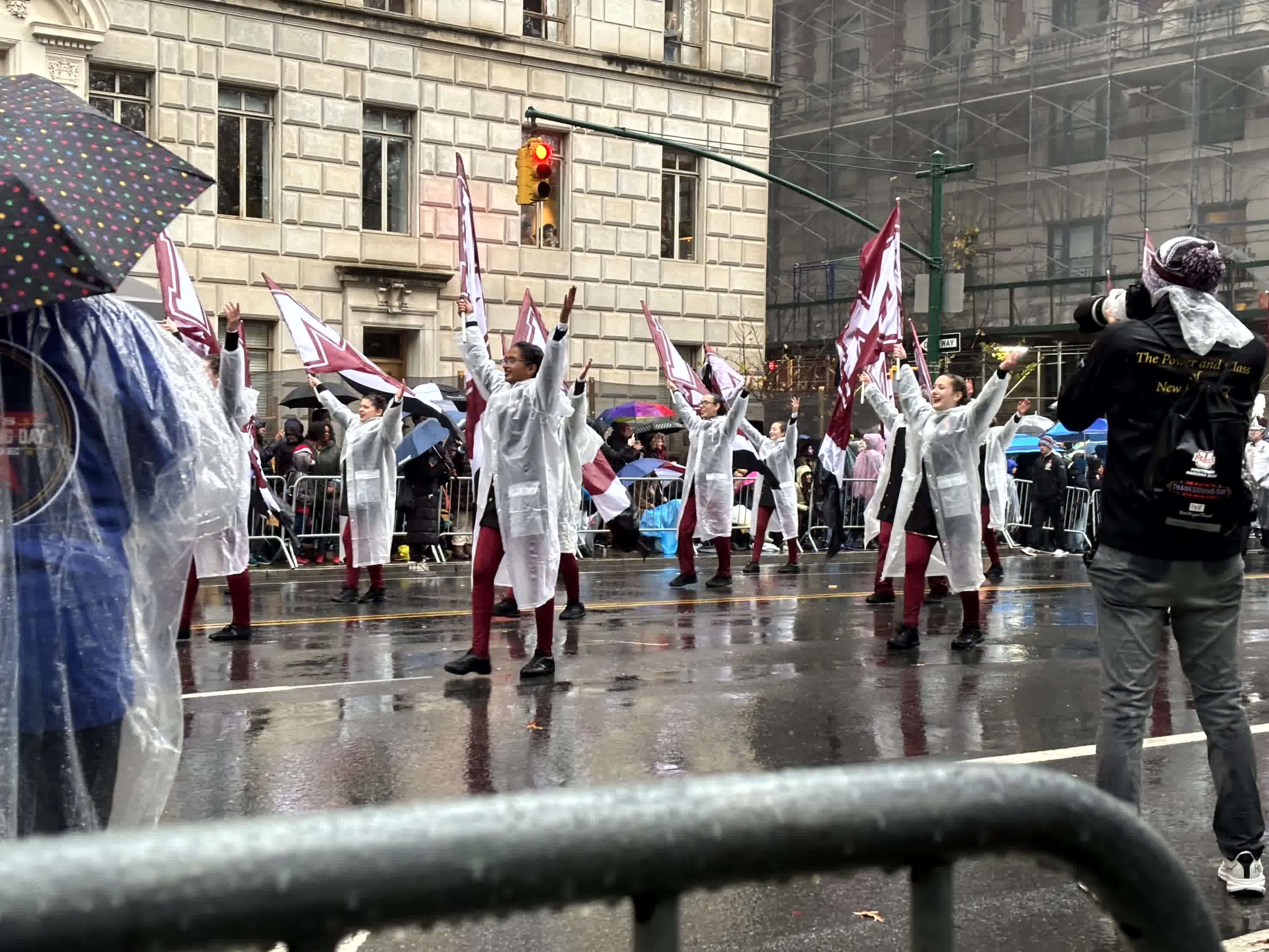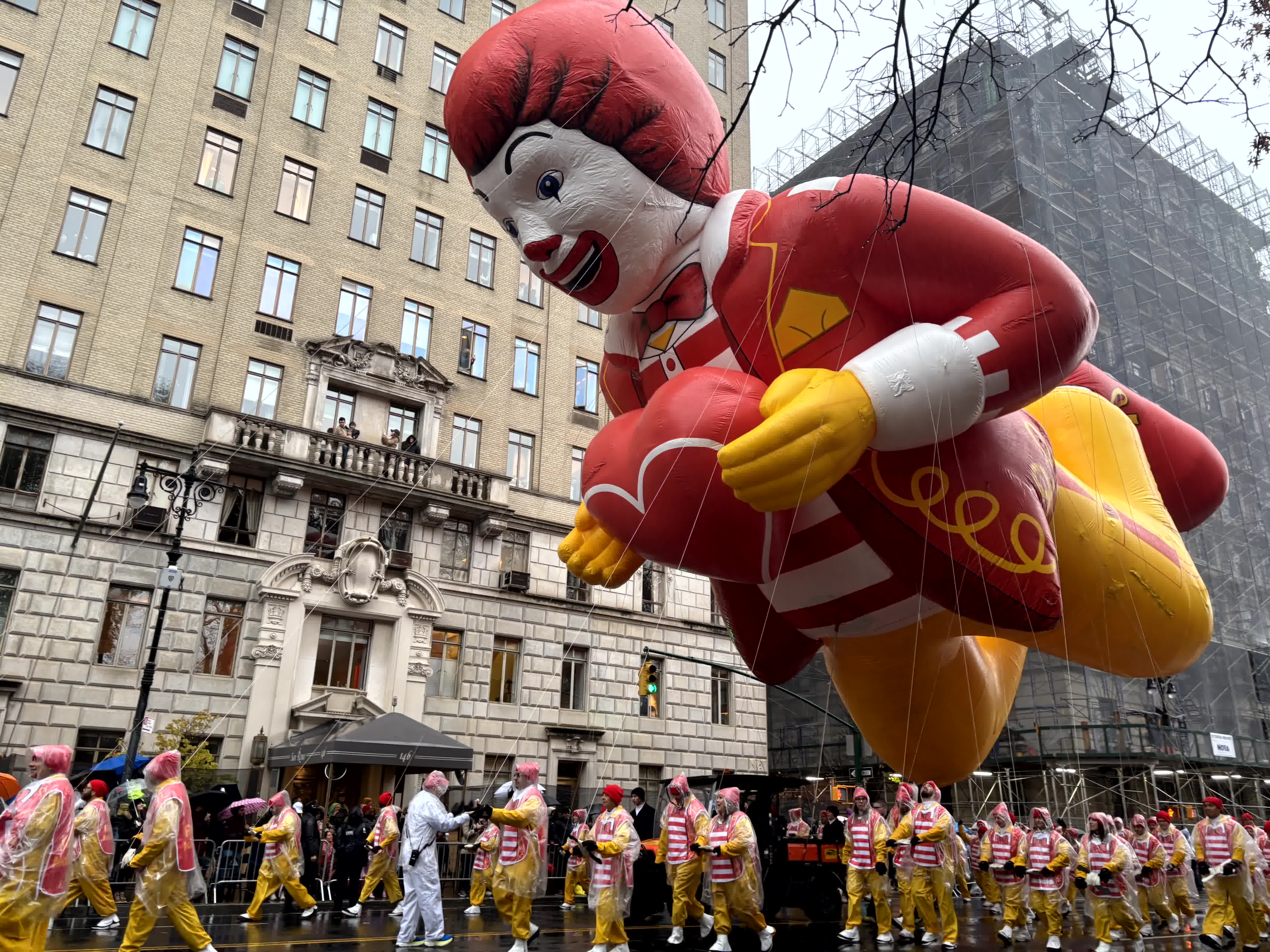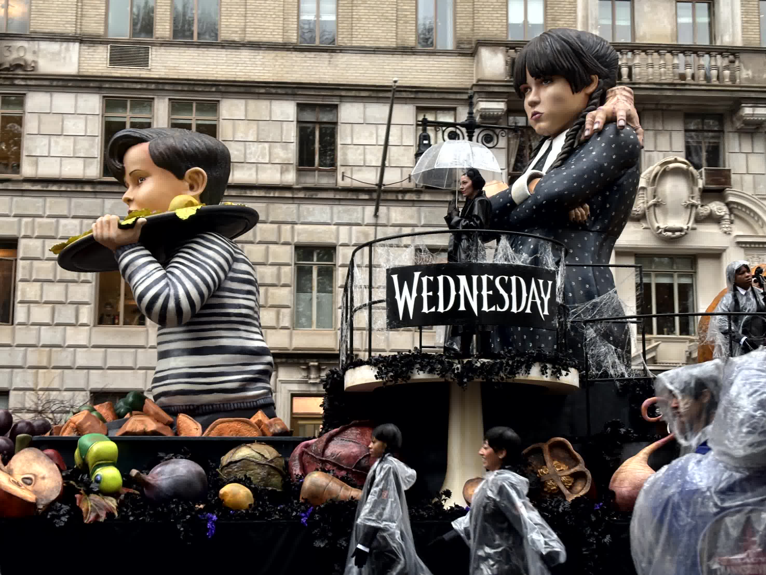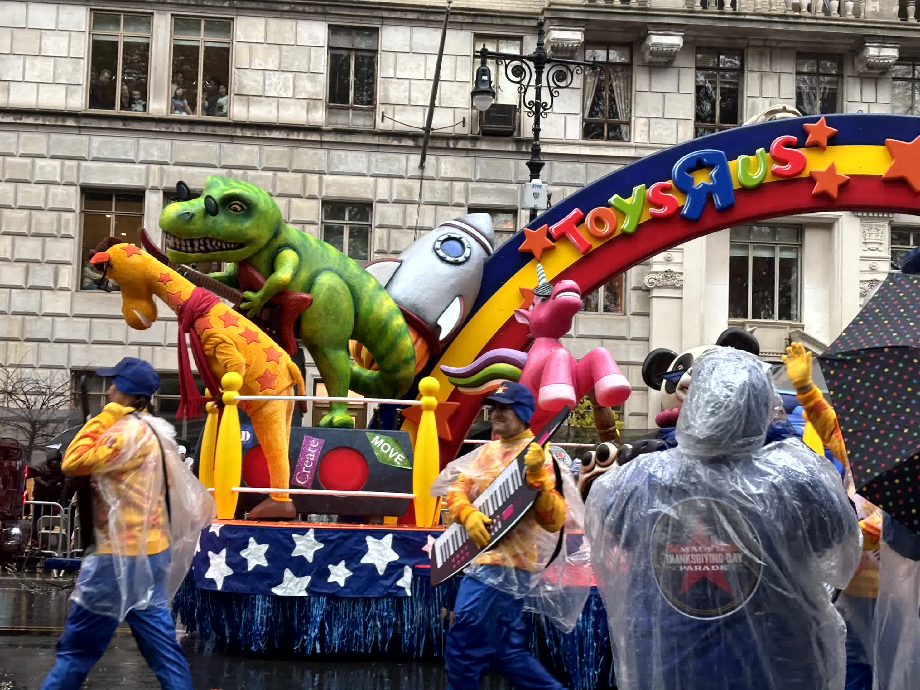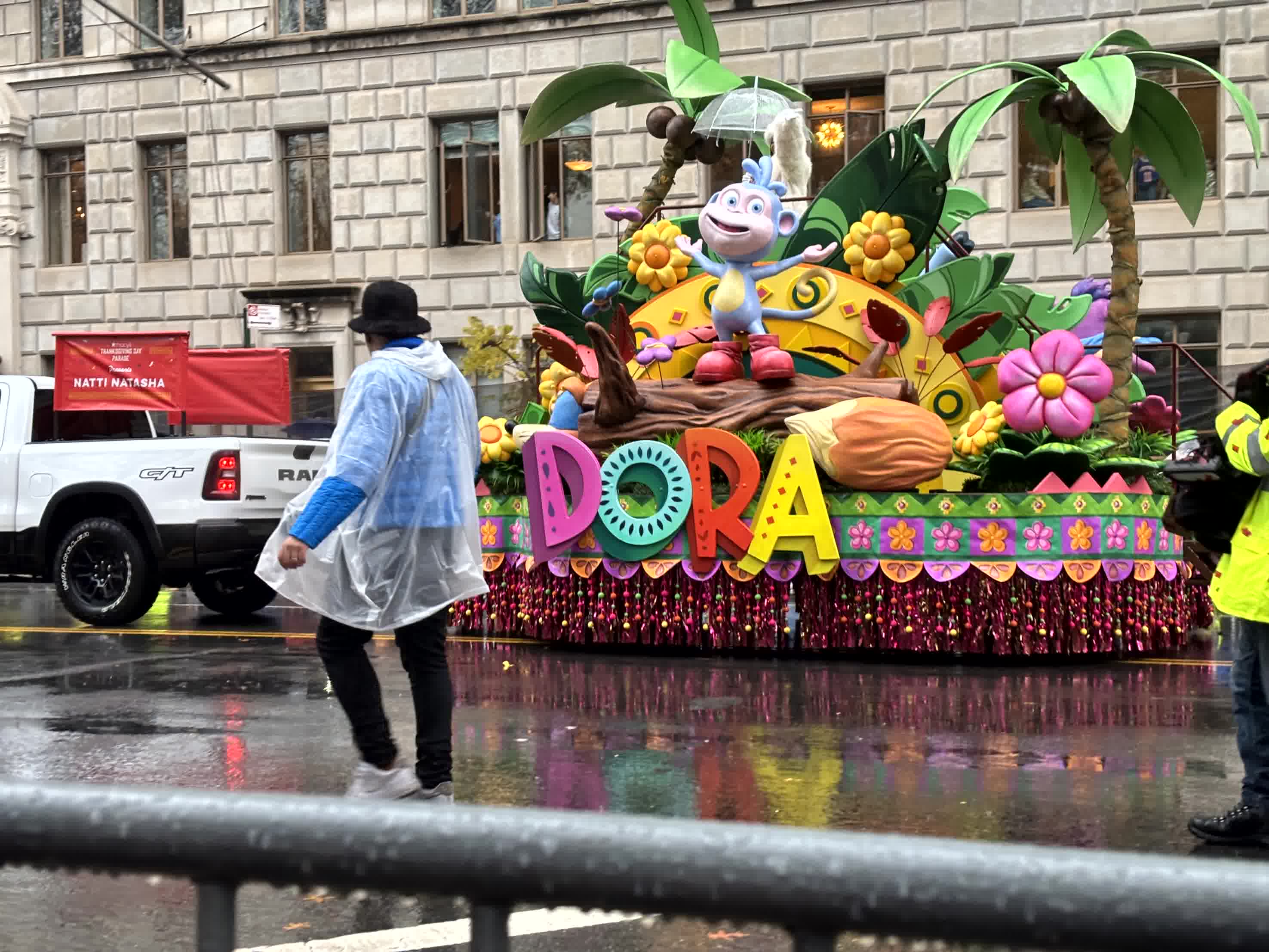 We have sort-of a sneak peak at upcoming floats as they line up down the road waiting for their turn to begin their trek through Manhattan.