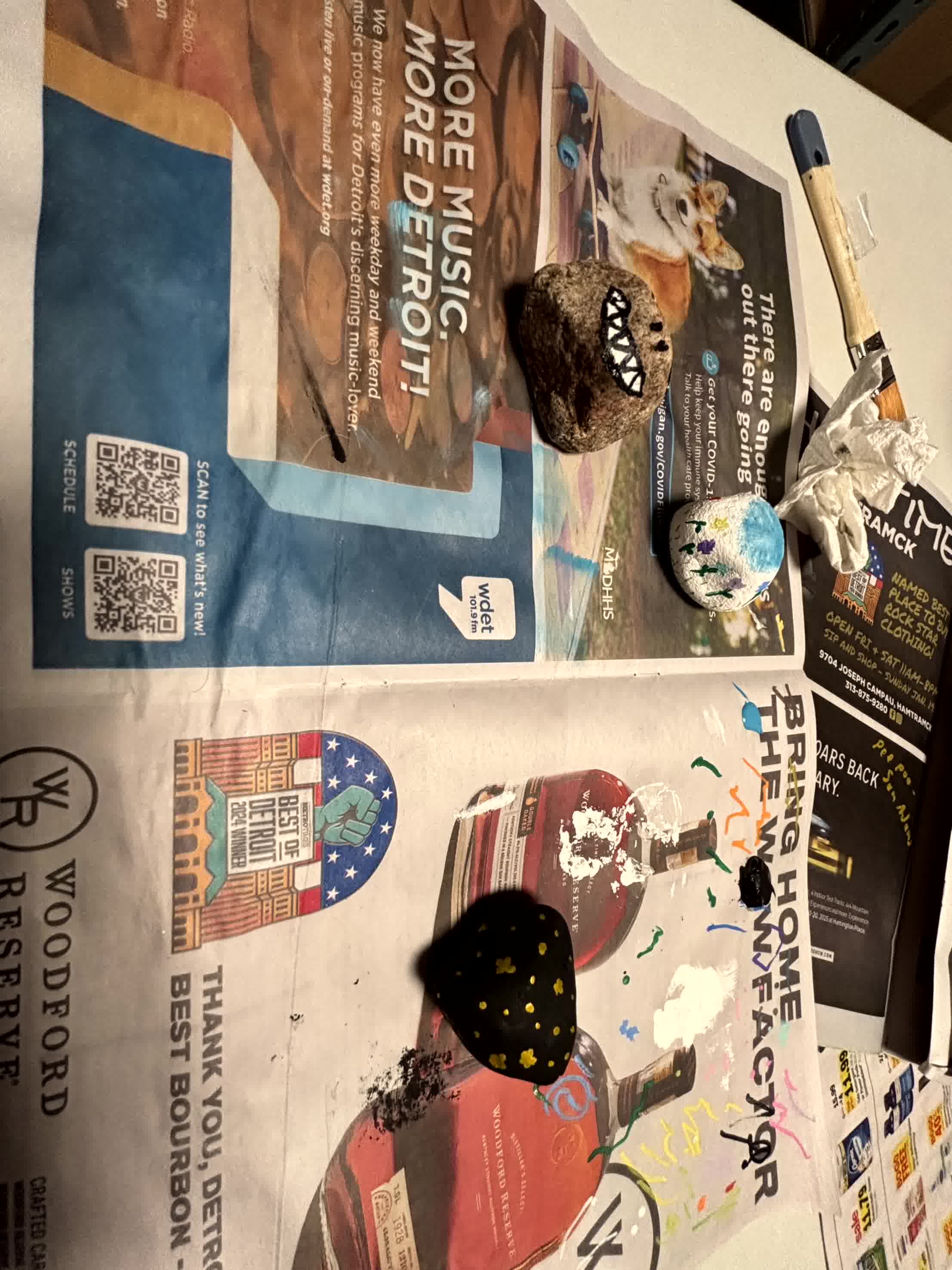 Levi from the future, here to tell you that one of the painted rocks is still where we left it at the restaurant. (The one with the napkin rose).