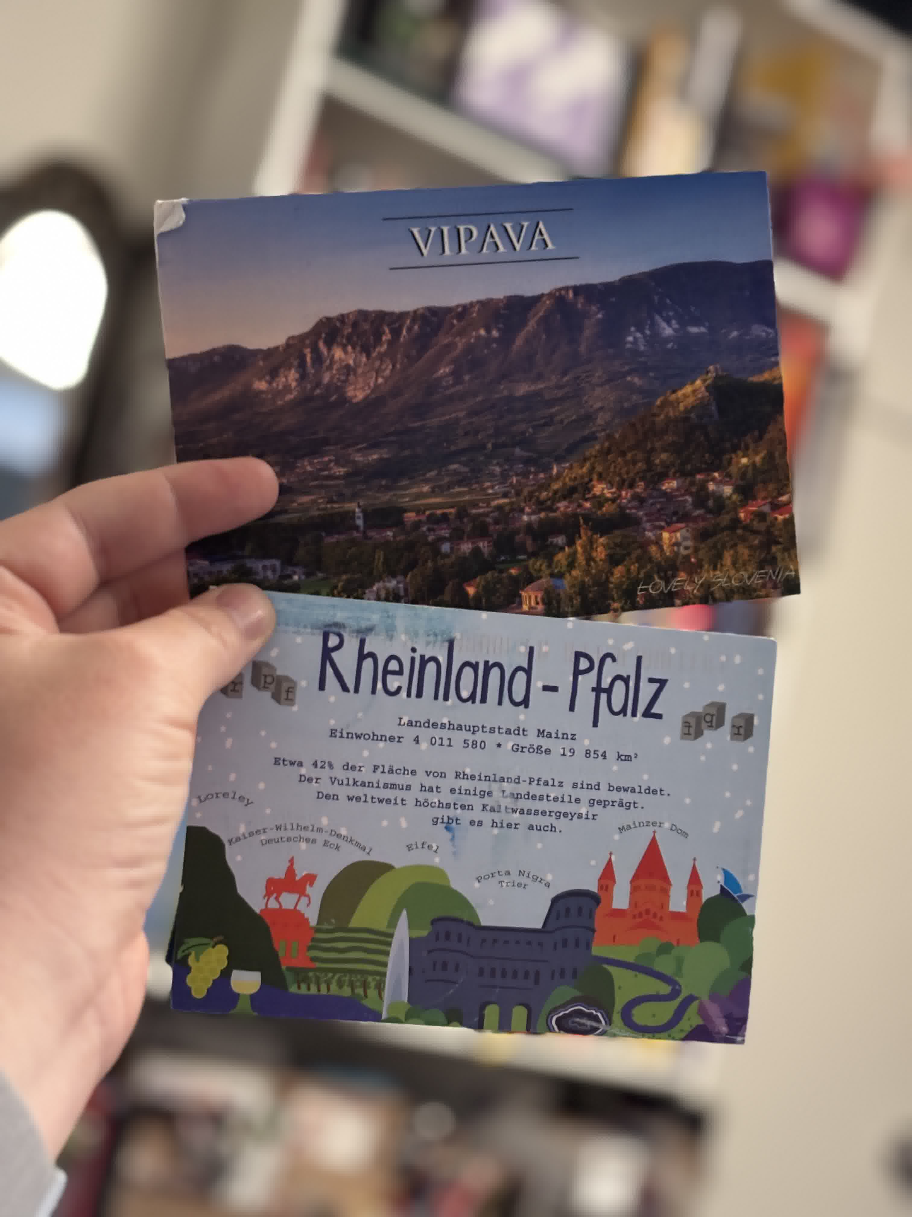 Here’s a postcard from Slovenia and a postcard from Germany that arrived today.