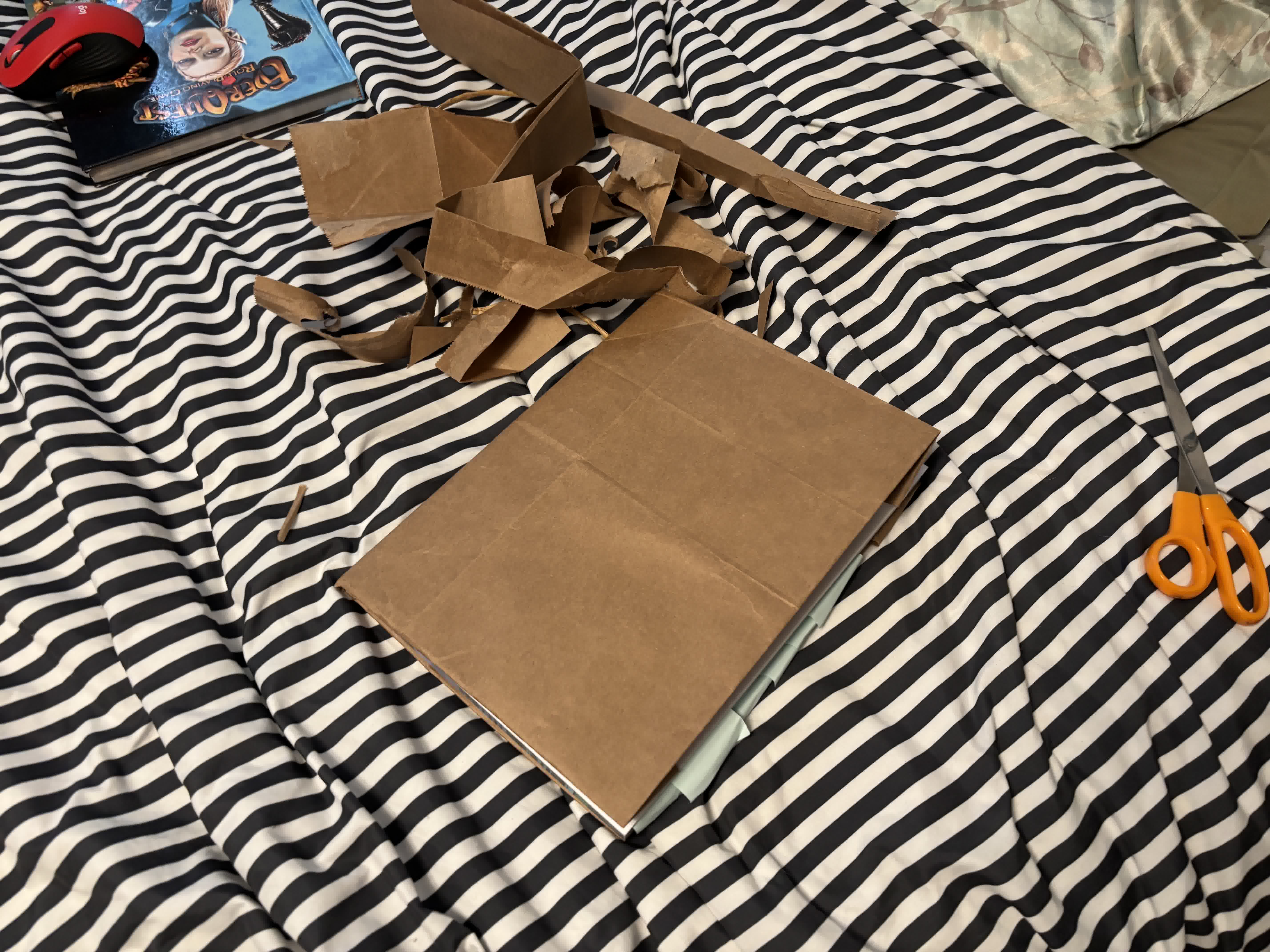 After making all of the cuts and snips to size the cover, it’s time to fold and tape the book cover together so that it will hold its form.