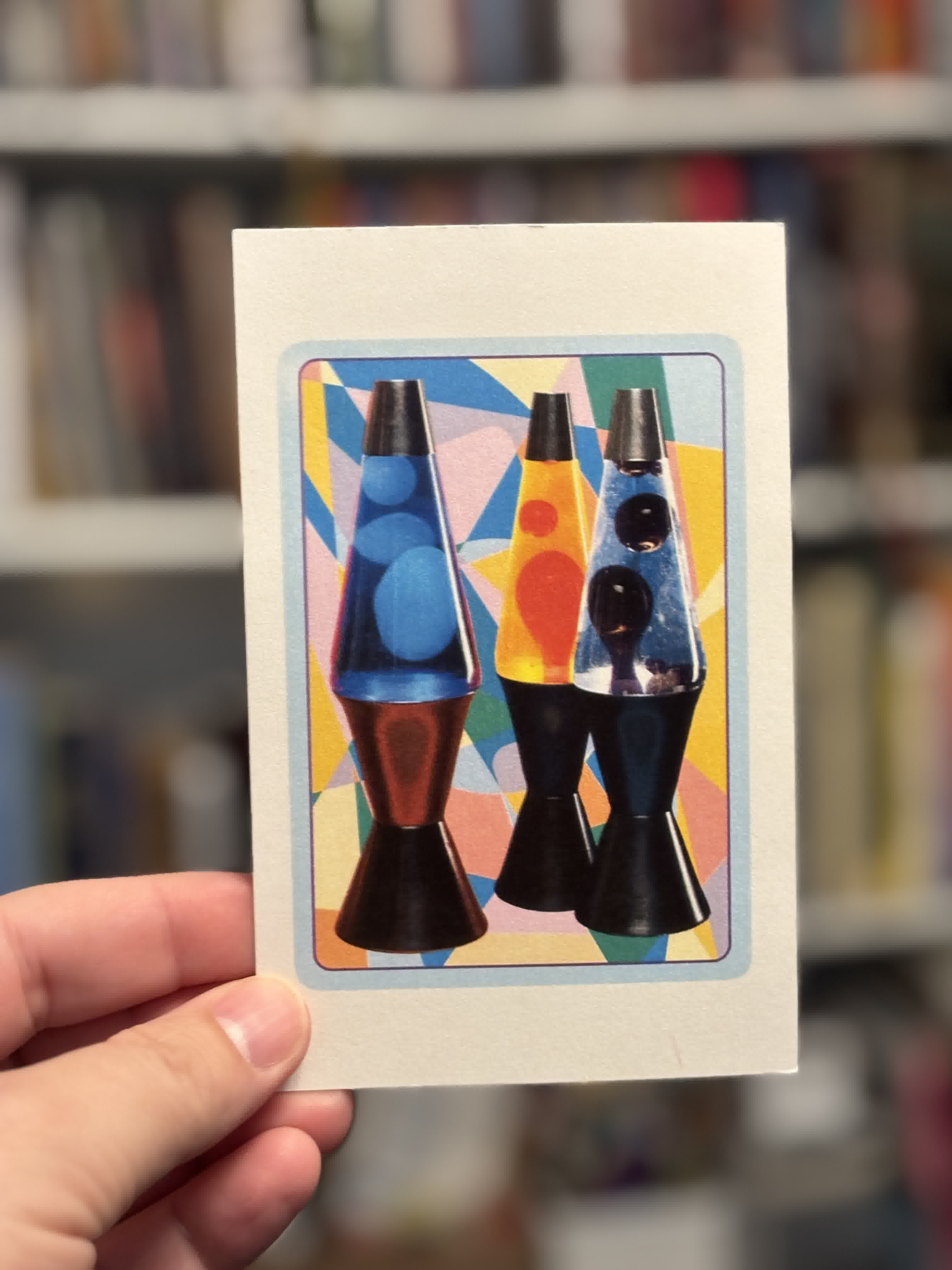 I recently returned home from a three-day camping trip and so I sent my pal Tony in Michigan a postcard about it, using this lovely lava lamp card.