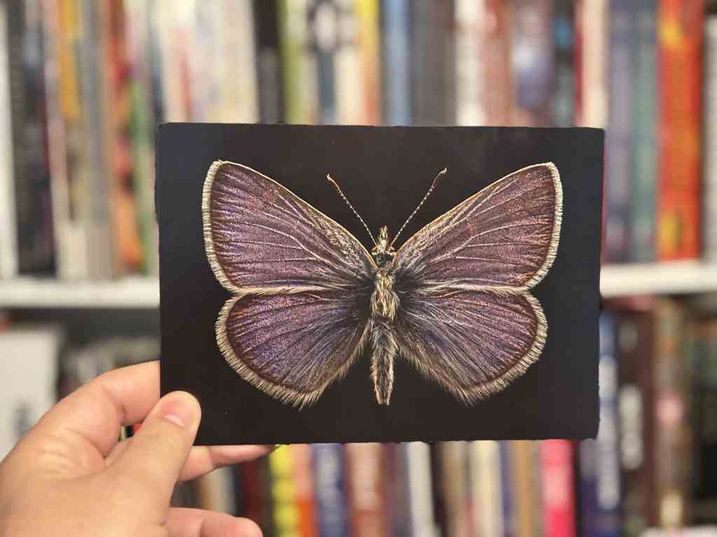It’s a little bit small. It’s flimsier than most. It’s matte on the front rather than glossy which is different than most postcards.