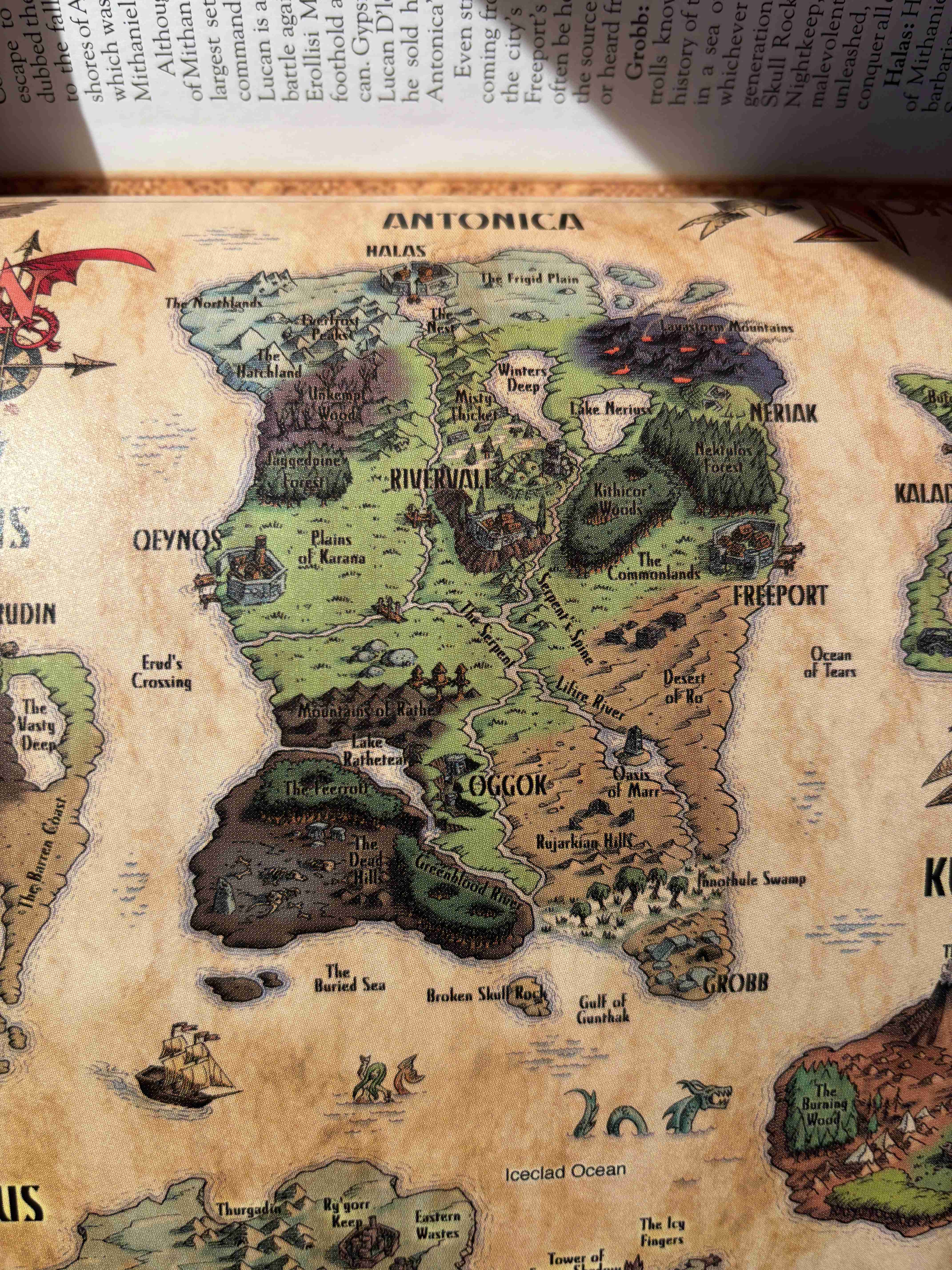 Here’s another picture of the EverQuest roleplaying game book, but this time of a map on the inside.