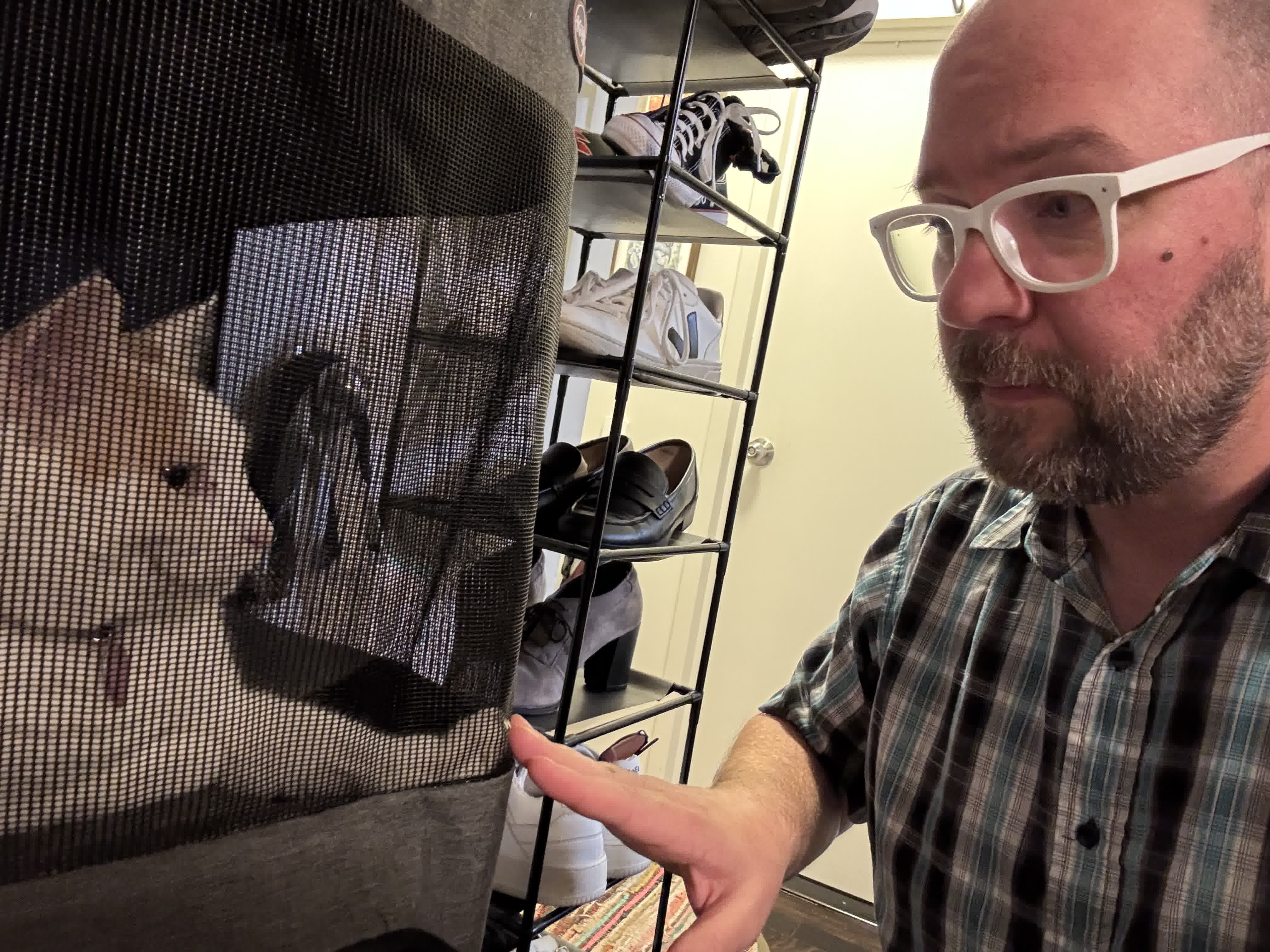 I was supposed to find Lauri’s shoes and when I couldn’t find them in the obvious place right away I took these pictures to show that they were in a weird place that I couldn’t be expected to find them in.