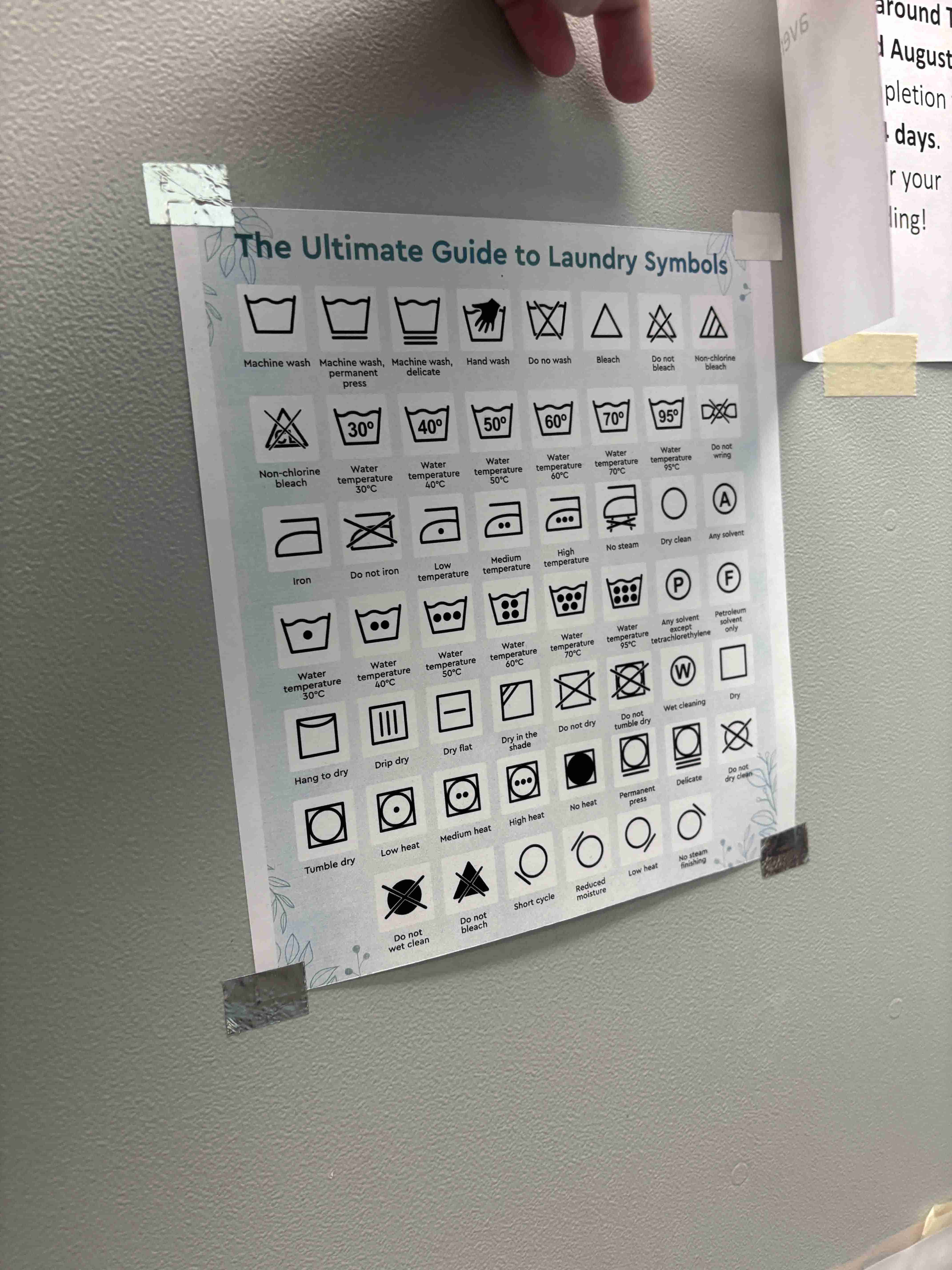 While at our laundromat I noticed they have a diagram of the various clothing washing icons.