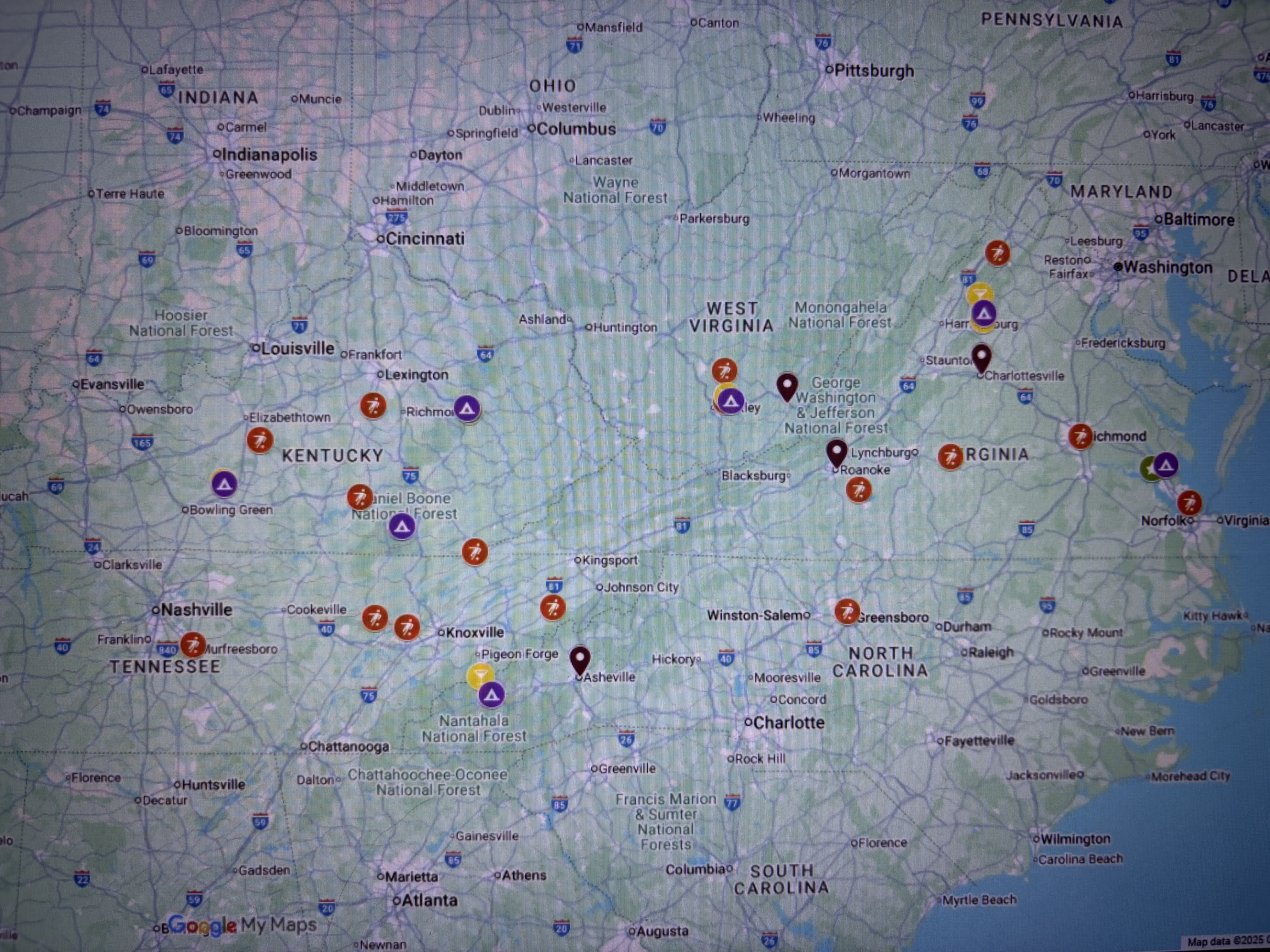 I am currently planning a road trip across Virginia, West Virginia, Kentucky, Tennessee and North Carolina.