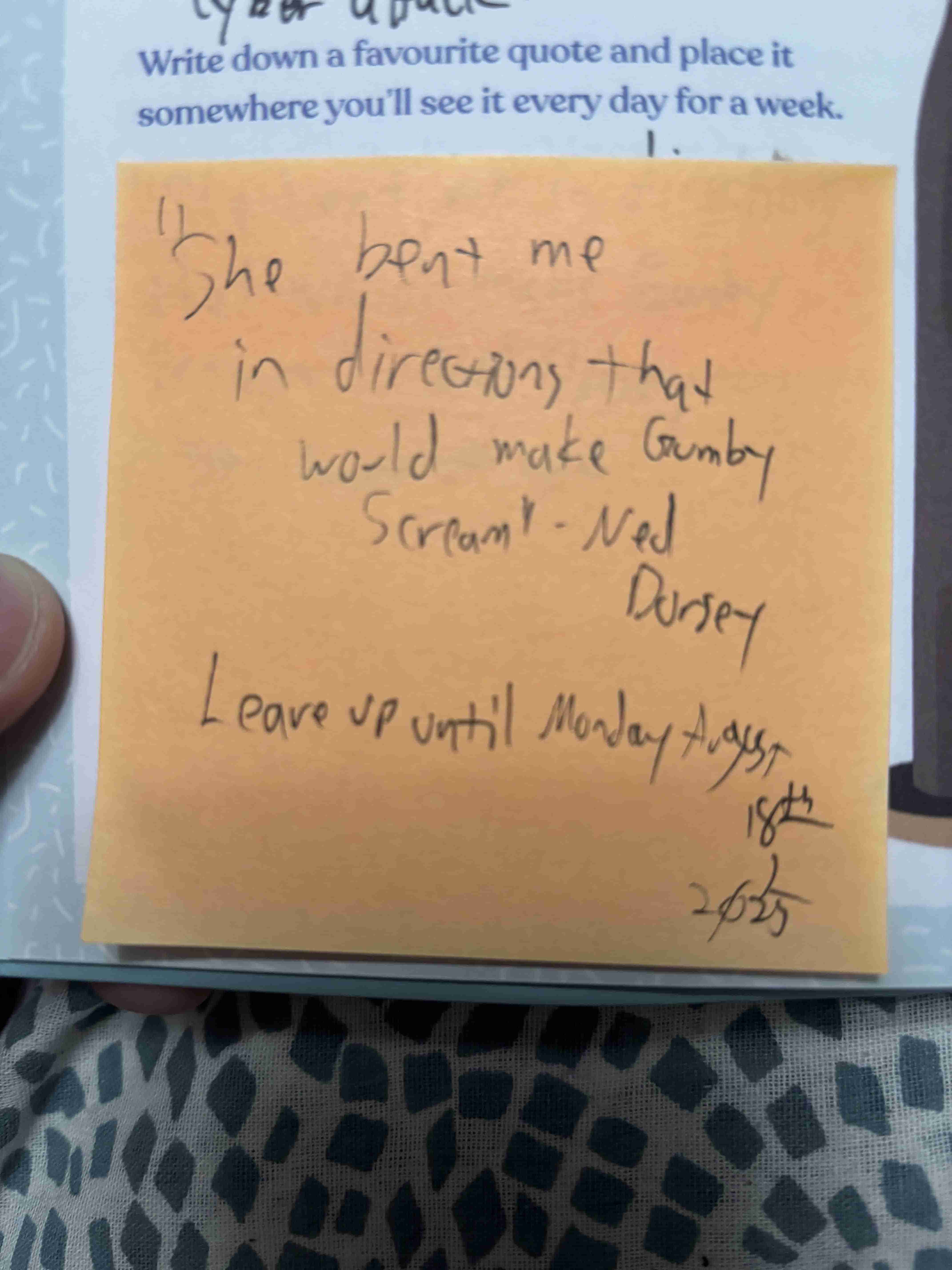 “Write down a favorite quote and place it somewhere you’ll see it every day for a week.”