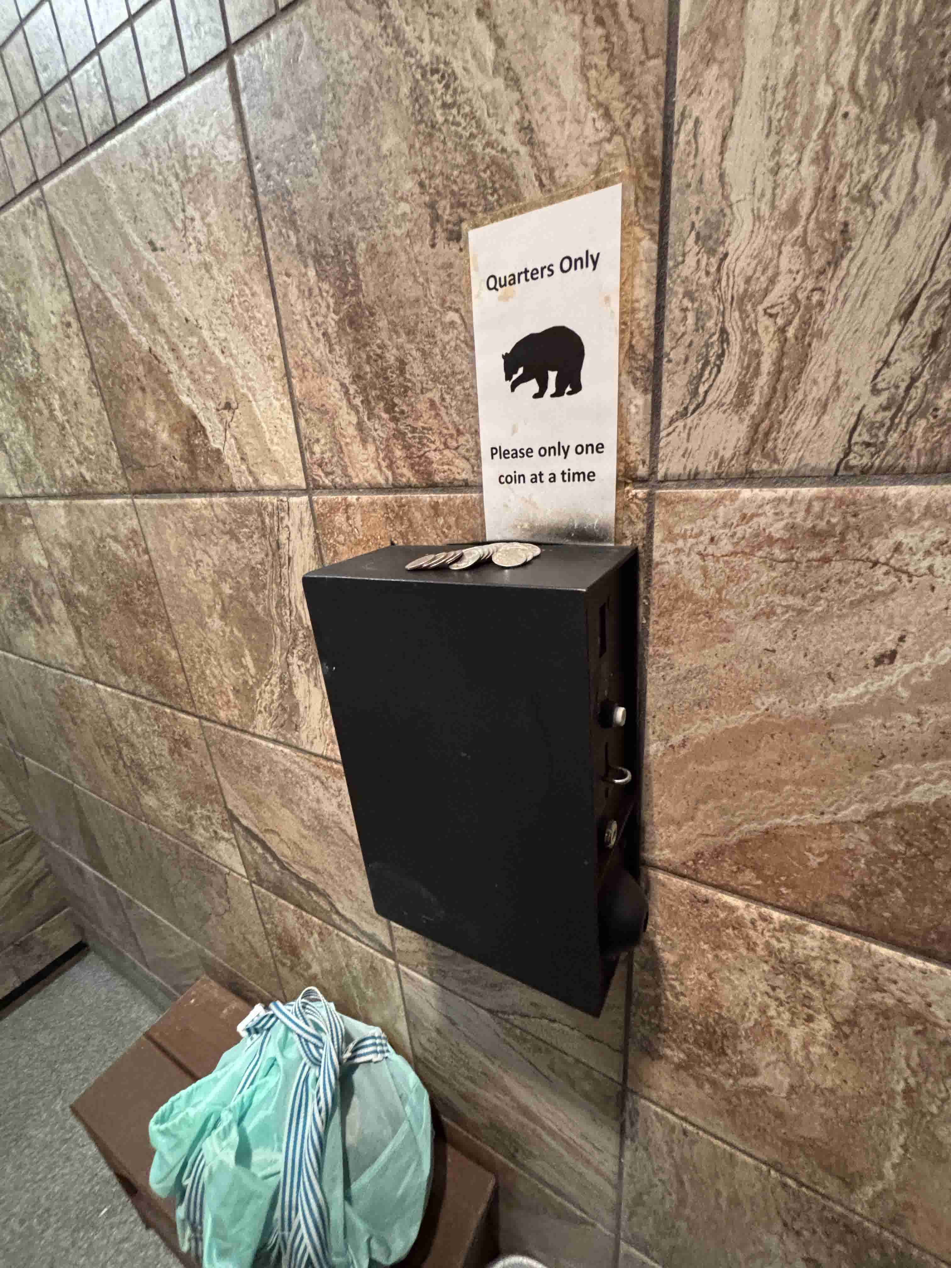 Look, I know that there are black bears in the area and that’s probably why it’s on there, but it looks like they’re trying to say that jamming up the machine by inserting multiple quarters at the same time is punishable by bear. Or that the bear is cautiously inserting the quarters.