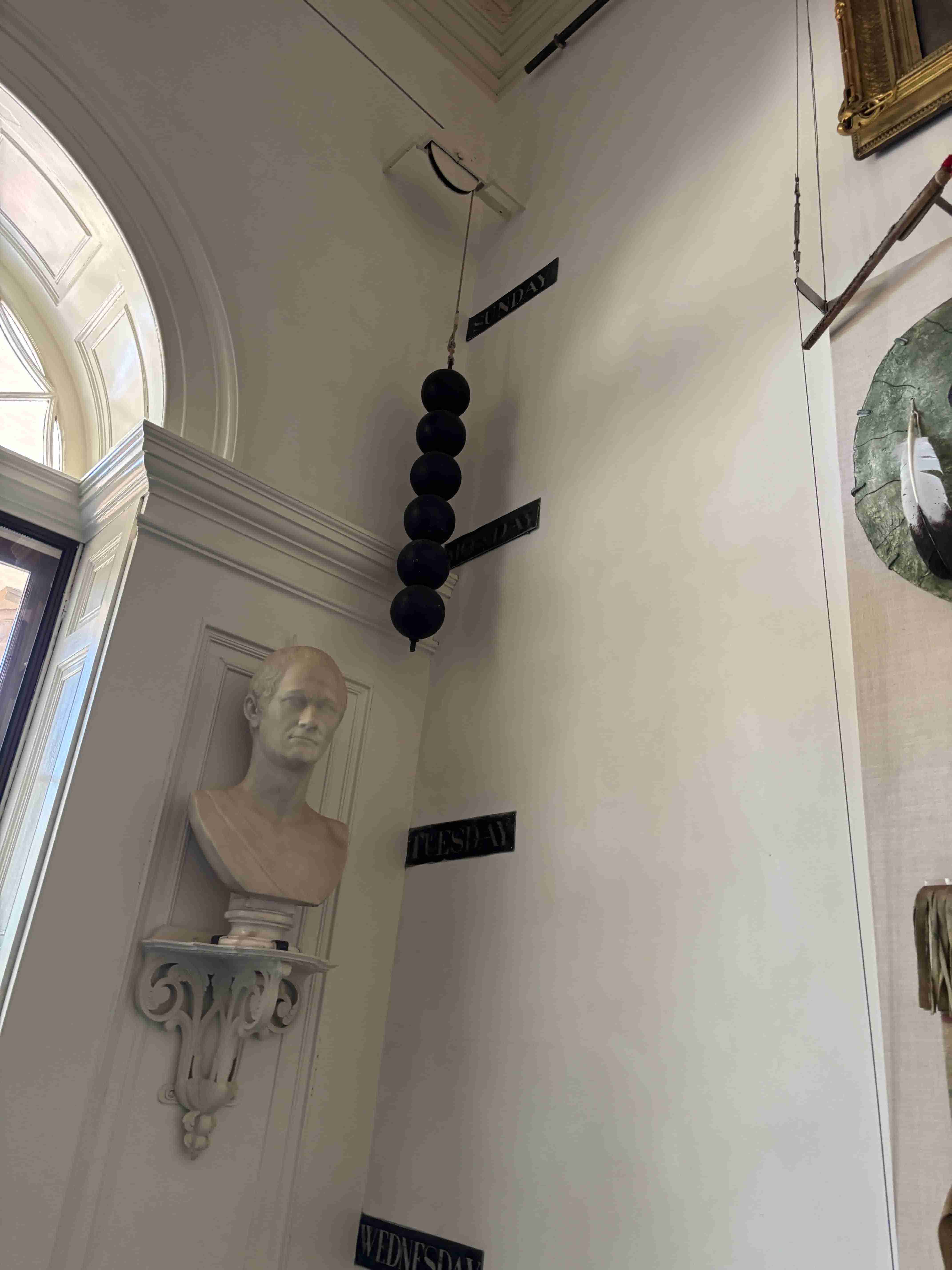 Ol’ TJ figured out how to make the weights work for 7 days so that he could mark the day of the week with the weights.