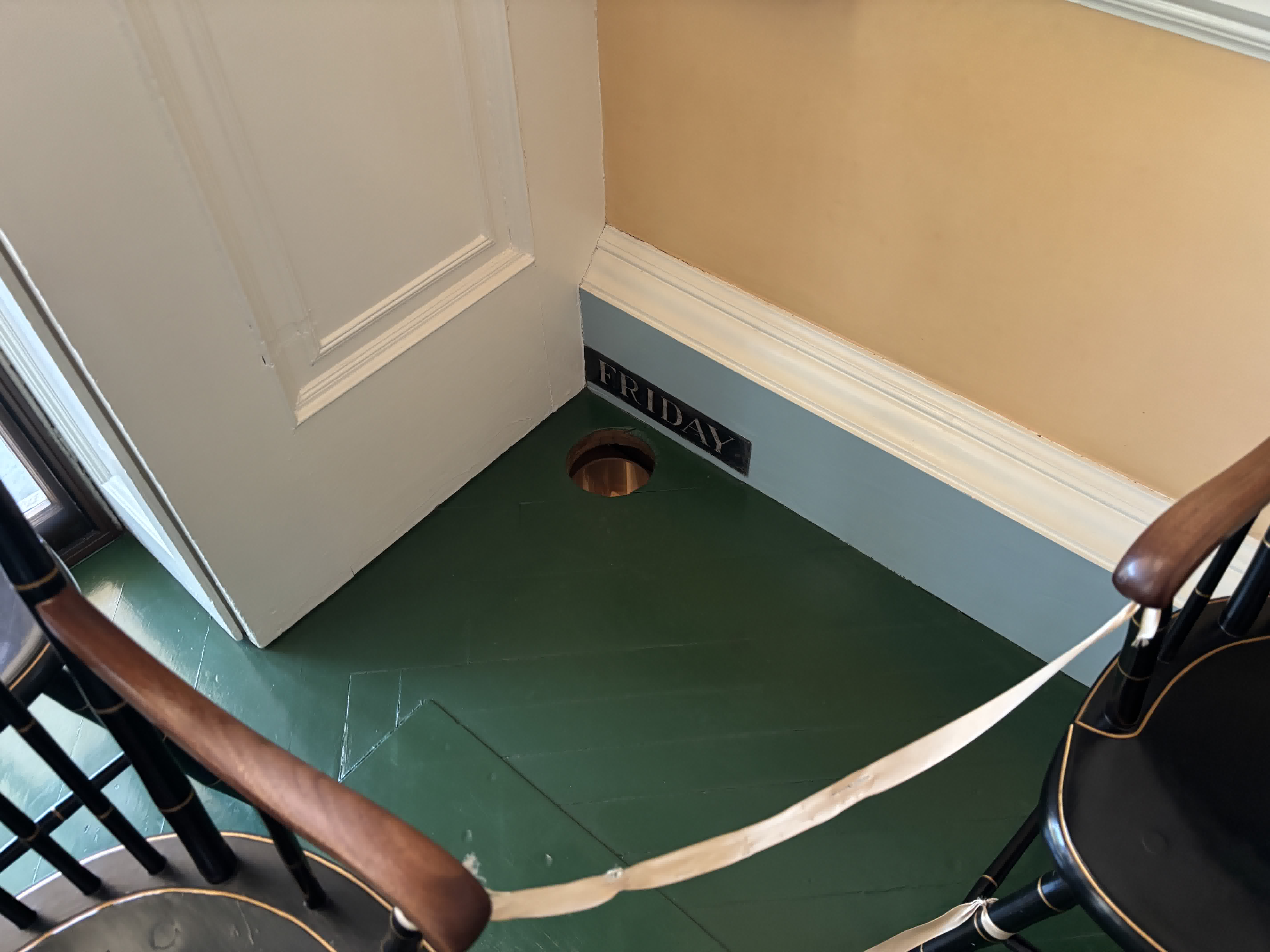 But his calculations were off by a little bit and so to fix the problem, he drilled two holes in the ground to let the weights continue to drop into the floors below.