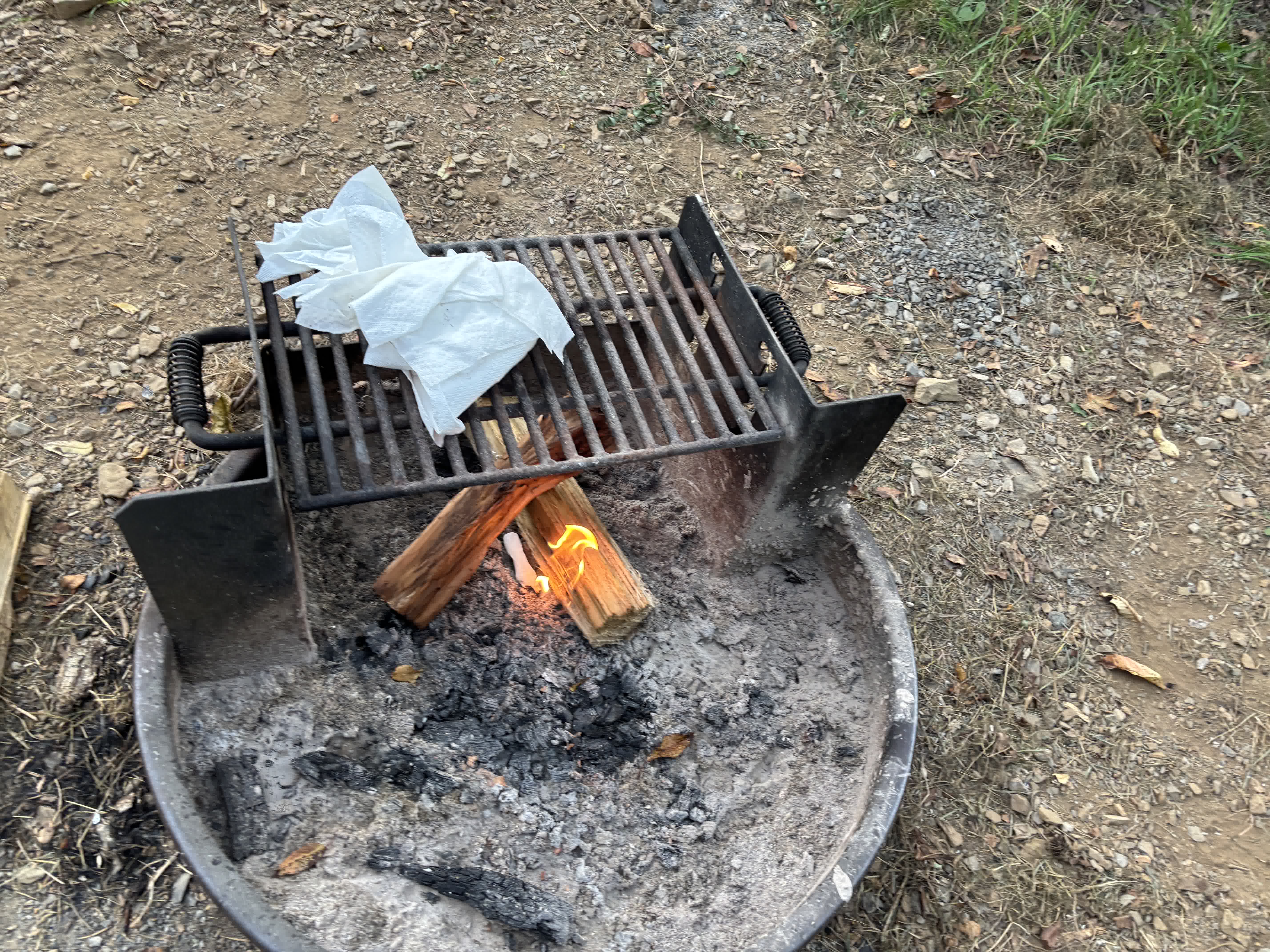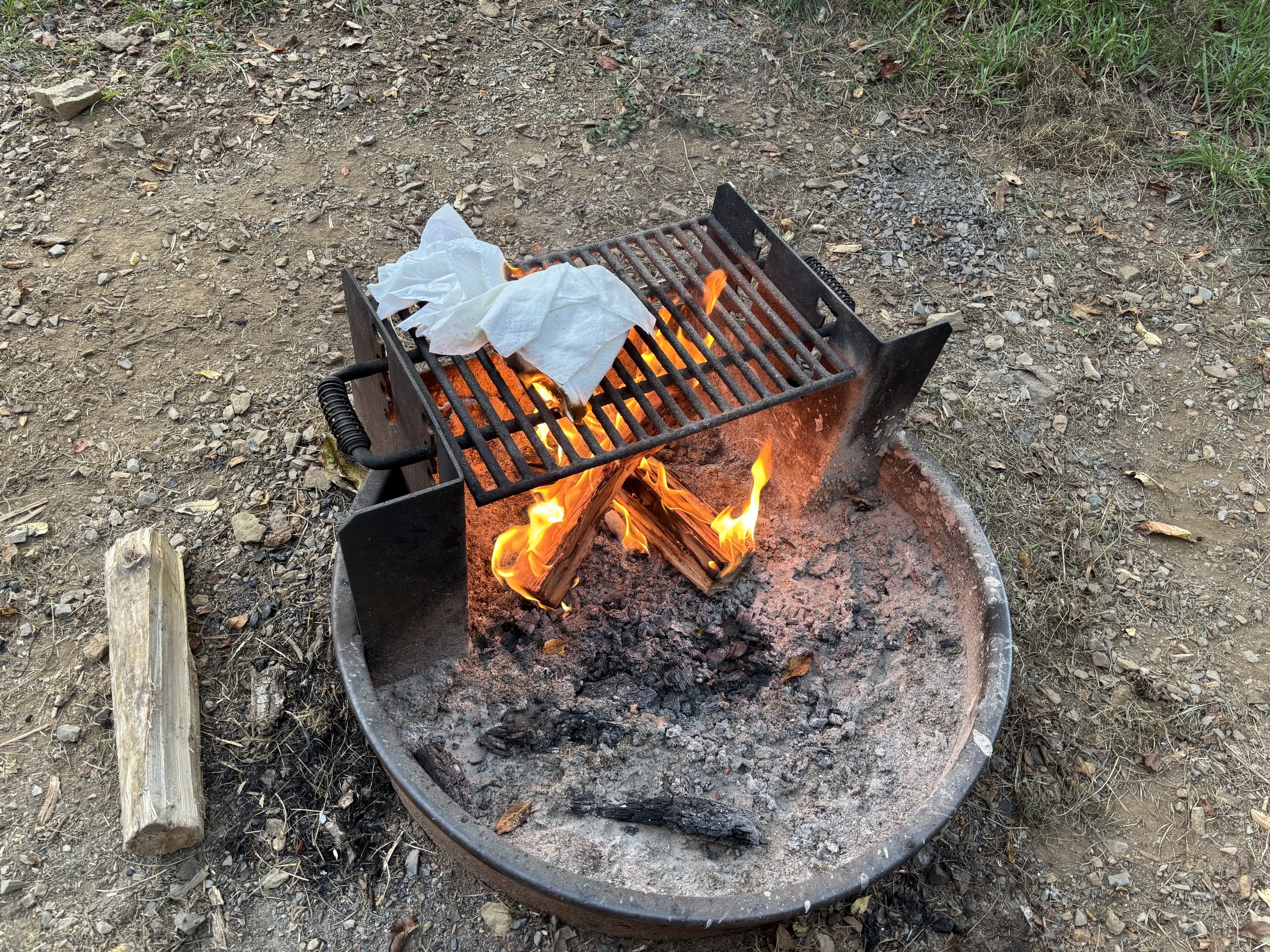 I’ll toss them into the fire when it’s big enough or when the paper towels are dry enough.