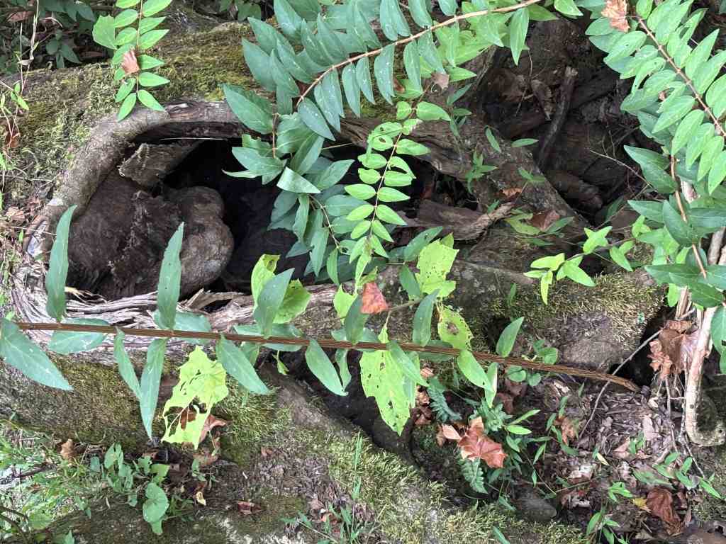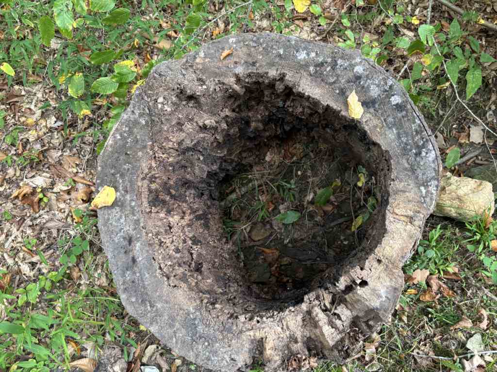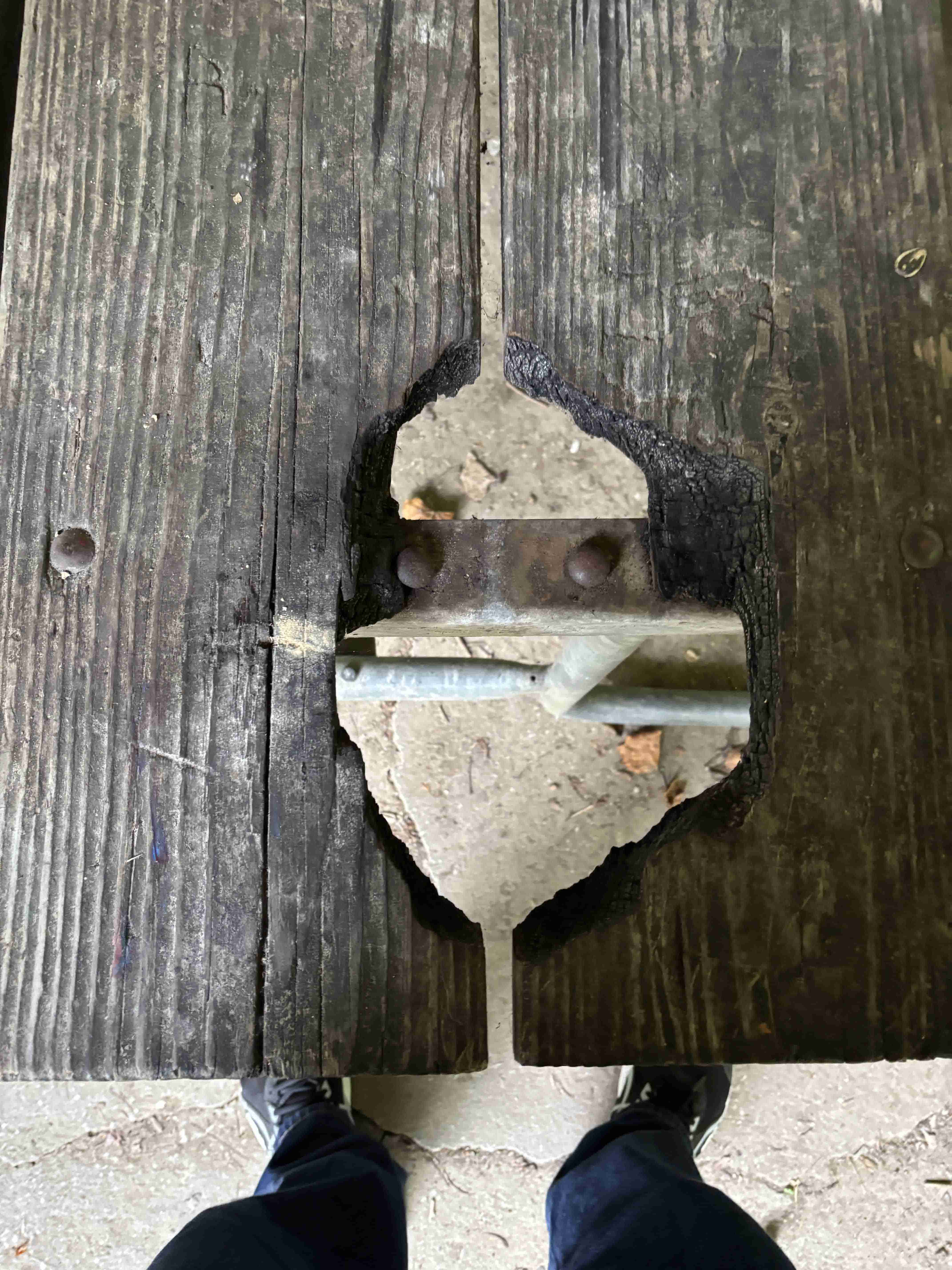 Oh, so back at this picnic area, someone at some point burned a giant hole through the table.