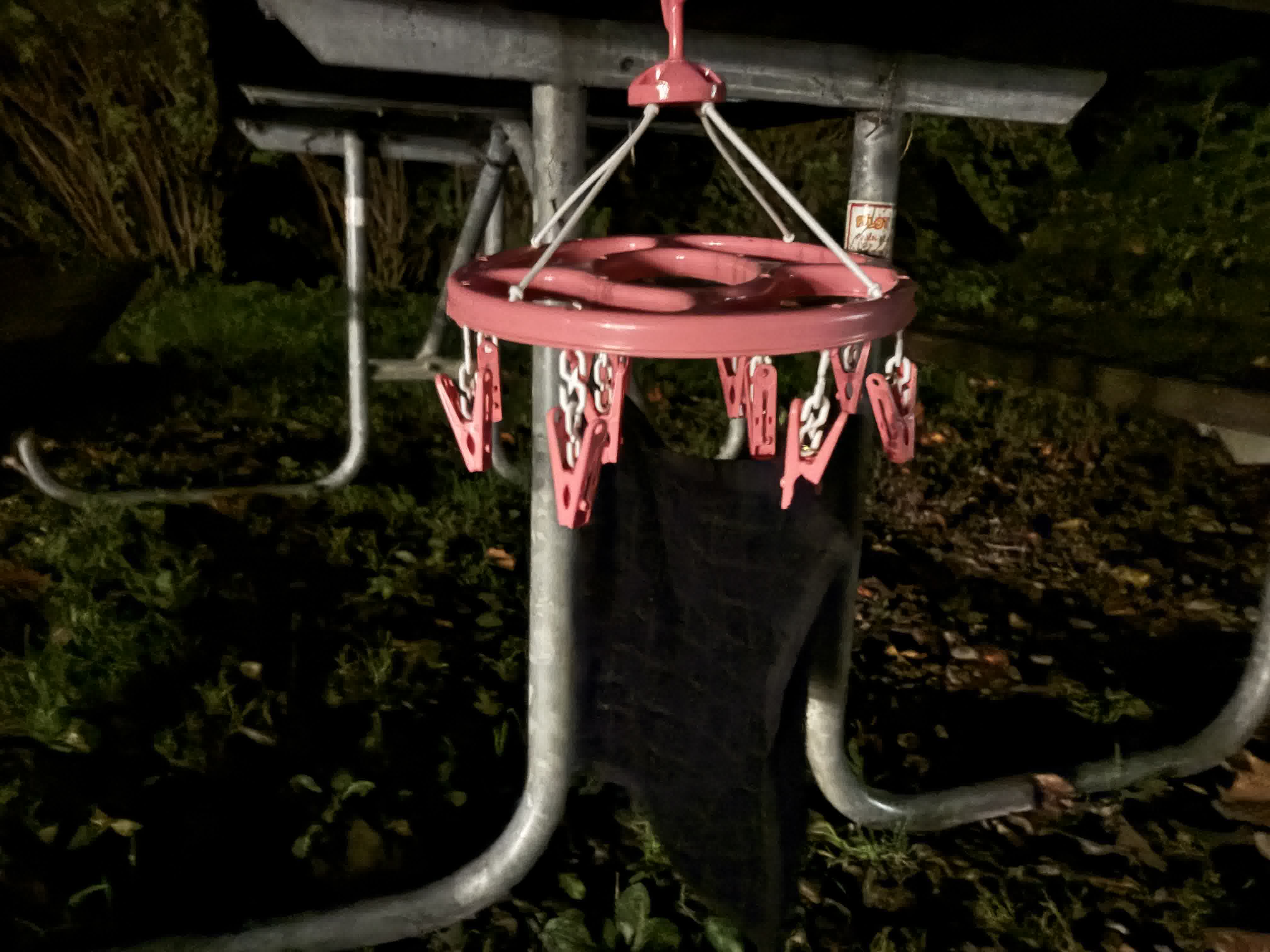 I’ll try again to hang dry the washcloth from the park bench at my campsite.