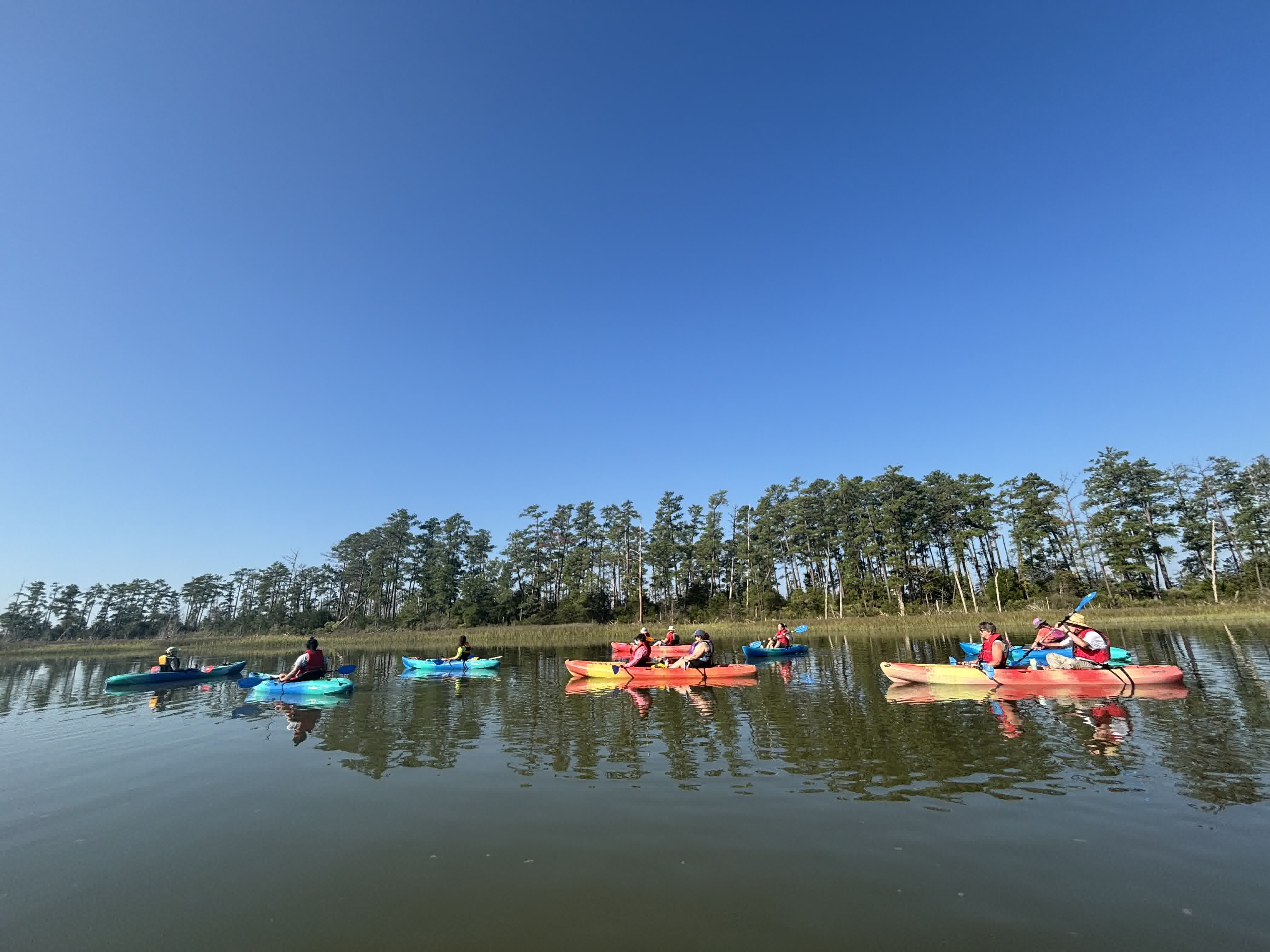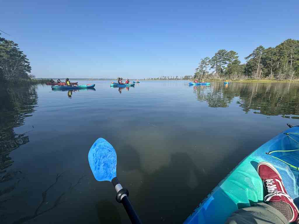 I’m near the back of the line because I spent most of my time helping folks haul their kayaks down first.