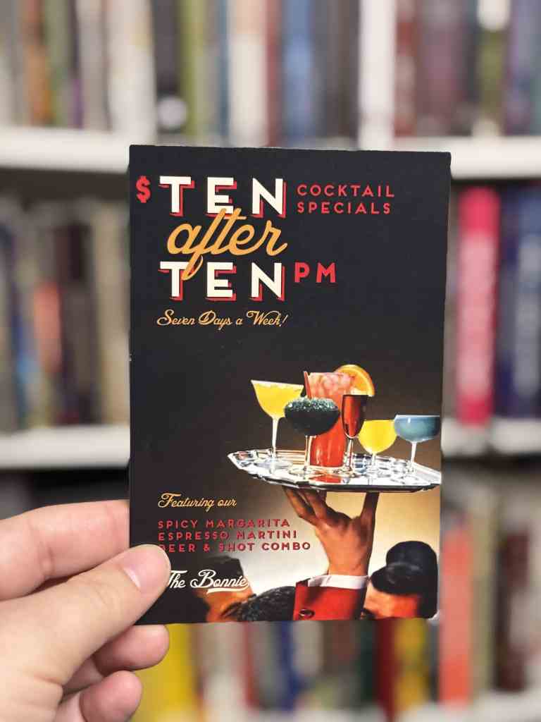 This next postcard is one that comes with the bill at a local bar and grill named The Bonnie where we play trivia.
