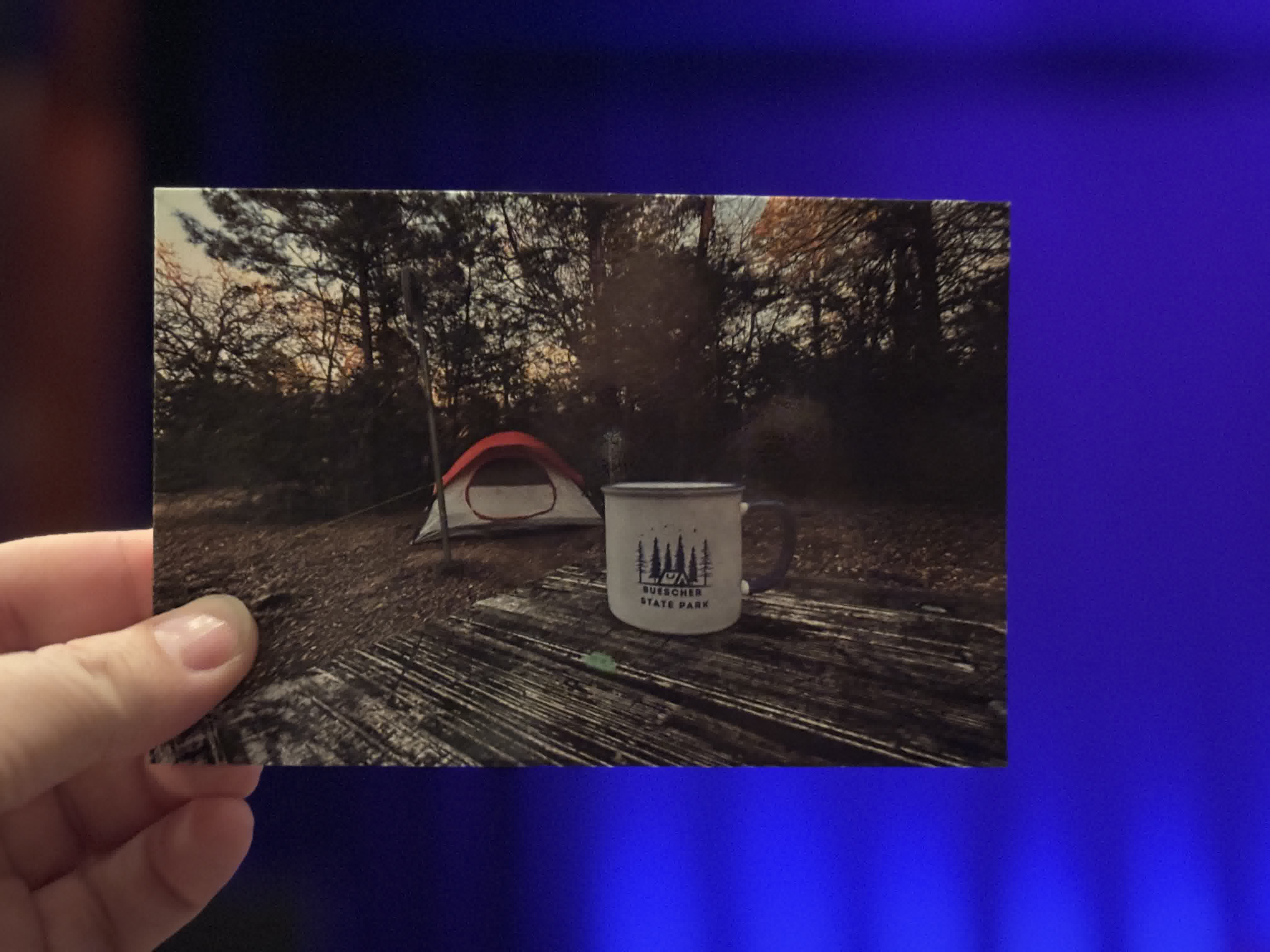 My notes say that I sent a Monticello postcard to India and chatted about Monticello being on the back of the nickel, but this is not a postcard from Monticello. This is a picture that Lauri took on one of the few trips she went camping with me.