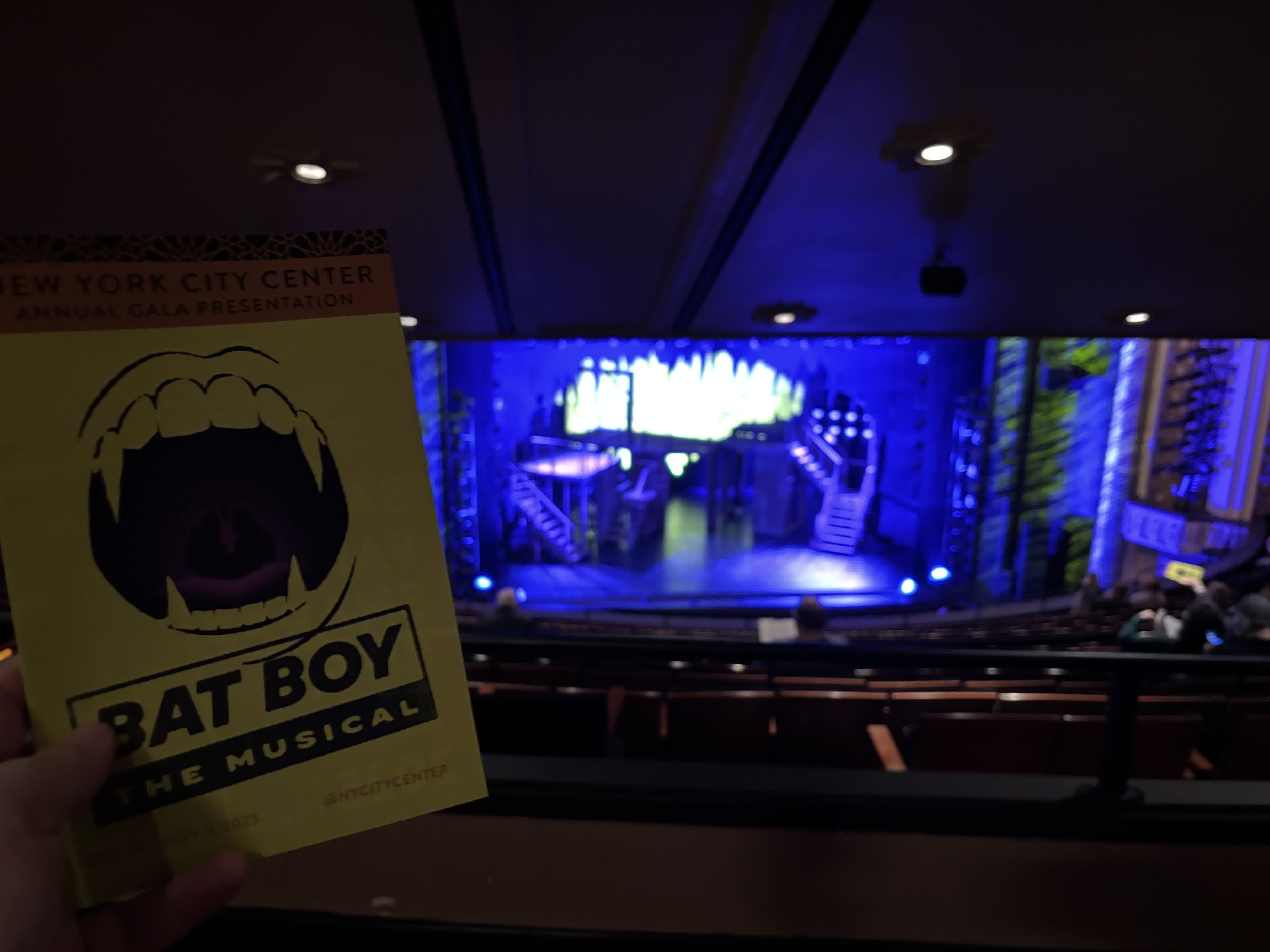 Wait, that’s the the right song for Bat Boy. Forget about it. Let’s send some postcards, have a nice dinner, and see a Broadway musical.